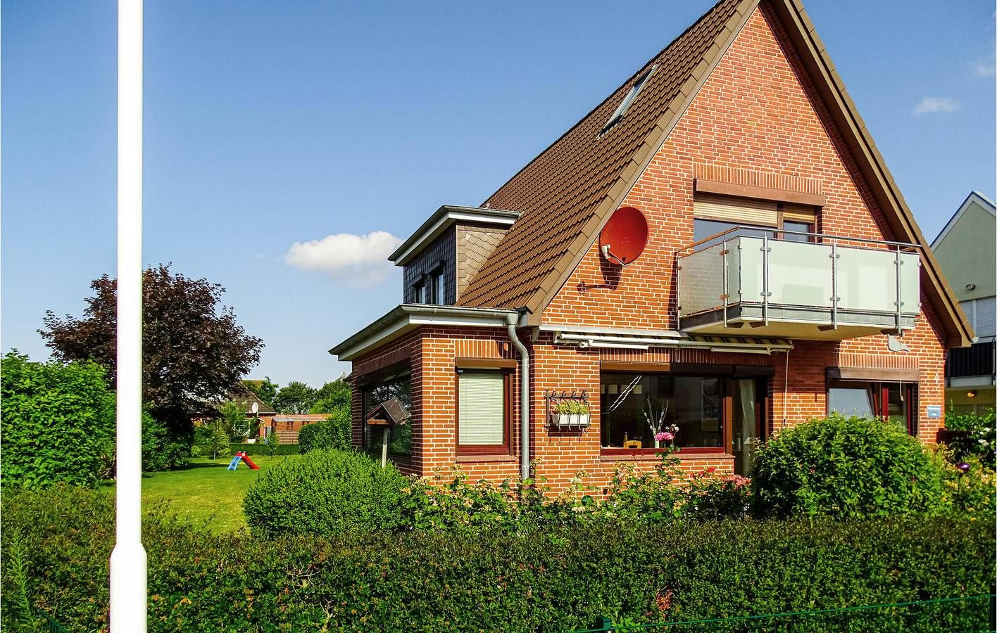 Die helle und freundliche Ferienwohnung "Kleiner Seehund" befindet sich im Obergeschoss eines geräumigen Einfamilienhauses im Kurviertel von Büsum mit Blick auf den Deich und den großen Garten. Sie betreten die Wohnung über einen kleinen Vorflur. Durch den Flur gelangen Sie in das großzügige Schlafzimmer, zu dem lichtdurchfluteten Bad und dem gemütlich eingerichteten Wohnraum mit Essplatz und angrenzender, offener Küche. Bei schönem Wetter sollten Sie den Tag unbedingt auf dem Balkon der Wohnung mit einer Tasse Kaffee beginnen. Die gemeinsame Waschmaschine befindet sich in einem separaten Raum abgehend vom Hausflur. Der Trockner steht im abgetrennten Teil der Garage. Hier können Sie auch Ihre Fahrräder sicher unterstellen und Ihre E-Bikes aufladen. Die Haus verfügt über Glasfaserkabel, sodass grundsätzlich schnelles Internet zur Verfügung steht. Der "Kleine Seehund“ liegt in direkter Nähe zur Familienlagune Watt´n Insel, dem Kite- Hotspot und zum Nordseedeich, an dem sich die Strandkörbe befinden. Den malerischen Krabbenkutterhafen und die lebendige Fußgängerzone mit den vielfältigen Restaurants erreichen Sie in wenigen Gehminuten. Außerdem bietet Büsum das Erlebnismuseum Phänomania. Bei rauem Wetter können Sie das Wellenbad „Meerzeit" mit seiner Wellness Oase genießen. Im gleichen Haus befindet sich die Ferienwohnung „Großer Seehund“ DSL011 Nur für Ferienaufenthalte