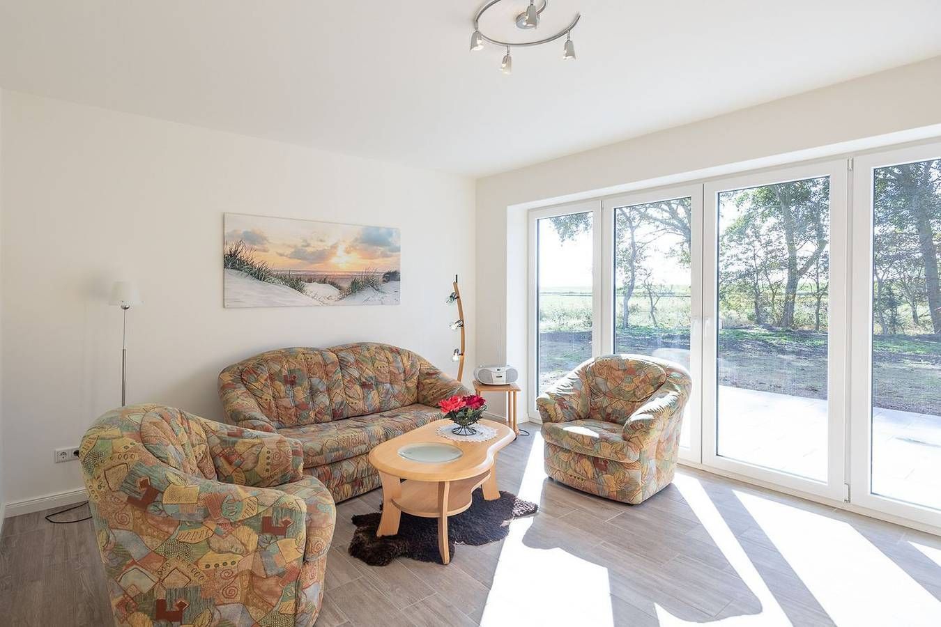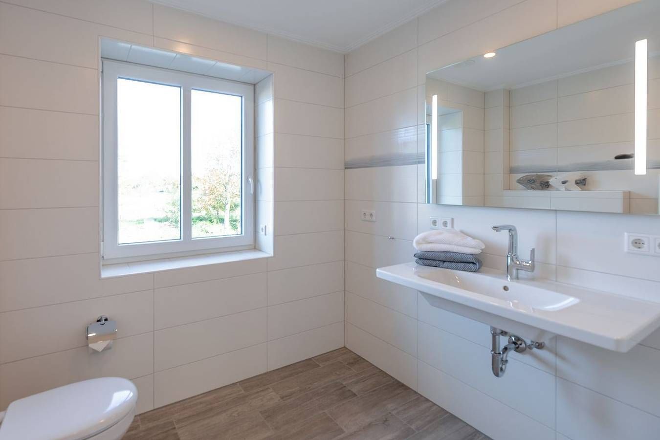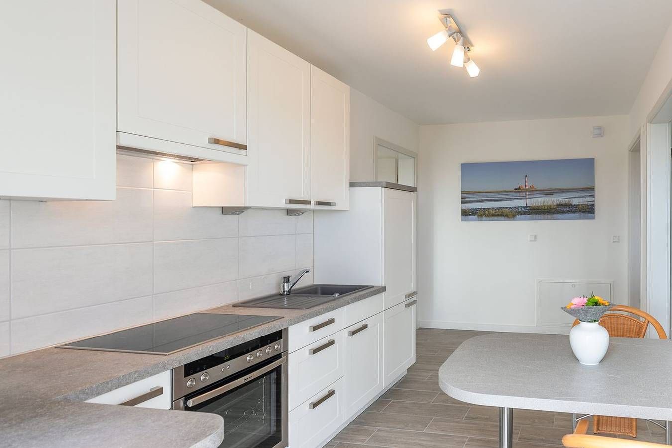 Nordseeurlaub direkt hinterm Deich: wir sagen "Moin Moin" und herzlich willkommen in Dagebüll. Genießen Sie in unserer schönen Ferienwohnung "Achtern Diek" Ihren Urlaub und lassen sich frischen Wind um die Nase pusten. Die Lage Das Apartment befindet sich im Erdgeschoss unseres neu erbauten Ferienhauses mit zwei Wohneinheiten im Ortsteil Dagebüll-Hafen, nur wenige Gehminuten von der Nordsee entfernt. Sie bieten einen optimalen Ausgangspunkt für faszinierende Spaziergänge, Radtouren, Ausflüge zu den Inseln, Dänemark und vieles mehr. Der Fähranleger Dagebüll-Mole ist nur wenige Gehminuten entfernt, die Bushaltestelle in unmittelbarer Hausnähe. Sie finden hier eine Ladenzeile mit Geschäften für den täglichen Bedarf (Café mit Frühstücksangebot, Fischrestaurant, Fahrradverleih, Kaufmann uvm.) Die Ausstattung Das 51 qm große Apartment ist modern eingerichtet. Die Küche ist komfortabel mit einem 4-Platten-Kochfeld, einen Kühlschrank mit Gefrierfach, Geschirrspülmaschine, Mikrowelle, eine Kaffeemaschine (Filtergröße 4), Toaster, Wasserkocher und Geschirr eingerichtet. Der Wohnbereich ist mit einem bequemen Sofa und Sessel ausgestattet. Der SAT-TV und WLAN bieten Ihnen Unterhaltung auch im Urlaub. Im Schlafzimmer bietet Ihnen das Doppelbett eine komfortable Größe von 180 × 200 cm. Auf der sonnigen Terrasse können Sie relaxed in den Tag starten. Die Besonderheiten In unserer Nichtraucher-Wohnung stellen wir Ihnen gerne kostenfreies WLAN zur Verfügung. Kostenlose PKW-Stellplätze sind am Haus vorhanden. E-Bikes können unter der Garage abgestellt werden. Eine Erstausstattung an Bettwäsche und Handtüchern wird bei dieser Unterkunft obligatorisch hinzugebucht und ist bereits im Endpreis enthalten. Zusätzliche Wäschepakete können in den optionalen Leistungen hinzugebucht werden.