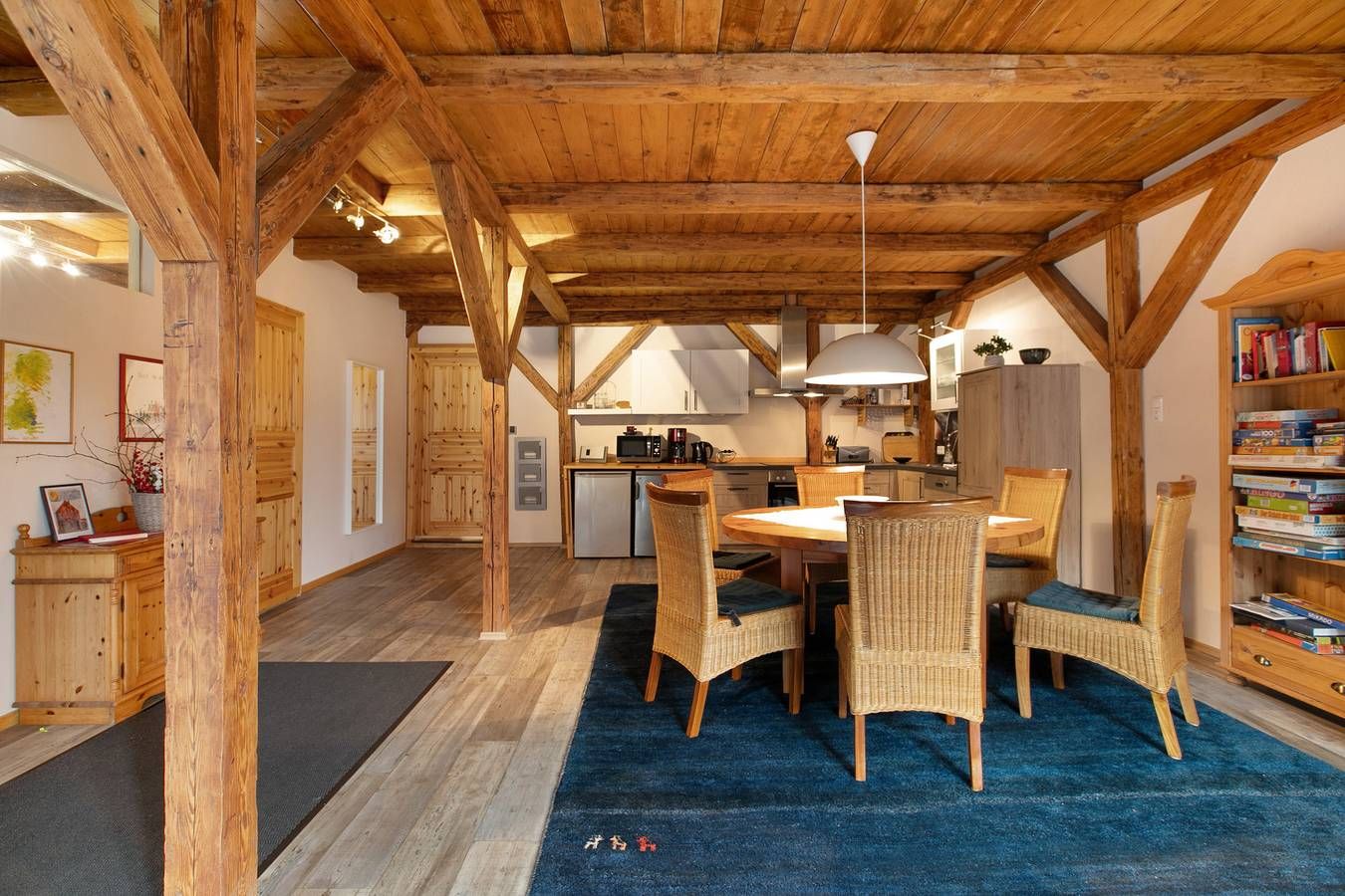 Die Ferienwohnung Alter Kornspeicher in Hemme befindet sich in Hemme und ist perfekt für einen unvergesslichen Urlaub mit Ihren Liebsten. Die 175 m² große Unterkunft besteht aus einem Wohnzimmer, einer gut ausgestatteten Küche, 4 Schlafzimmern und 2 Bädern und bietet somit Platz für 9 Personen. Zur Ausstattung gehören außerdem Wi-Fi, ein Smart TV mit Streaming-Diensten, eine Waschmaschine sowie Kinderbücher und Spielsachen. Ein Babybett ist ebenfalls vorhanden. Dieses Ferienhaus verfügt über einen privaten Balkon für Ihre abendliche Entspannung. Genießen Sie den gemeinsamen Außenbereich mit Garten, offener Terrasse, Grill und Spielplatz. Nahegelegene Städte: Wacken, Heide, Husum, Büsum, St. Peter Ording, Eider, Treene, Sorge Flusslandschaft. Hamburg ist von der Unterkunft aus leicht zu erreichen. Zu den Highlights gehören der belebte Hafen mit seinen malerischen Bootsfahrten, das Miniatur-Wunderland mit seinen aufwendigen Modelllandschaften und die lebendige Musikszene mit ihren Shows. Auf dem Grundstück sind 3 Parkplätze vorhanden. Das Mitbringen von Haustieren und Rauchen ist nicht erlaubt. 2 Fahrräder sind vorhanden. 2 E-Bikes sind vorhanden. 2 Fahrräder für Kinder. Die Unterkunft verfügt über einen Abstellraum für Motorrad und Fahrrad. Der Strom in der Unterkunft wird durch Windenergie erzeugt. Diese Unterkunft verfügt über licht- und wassersparende Einrichtungen. Der Strom in dieser Unterkunft wird zum Teil durch Photovoltaikanlagen erzeugt. Für die Isolierung in dieser Unterkunft wurden nachhaltige Materialien verwendet. Bitte füllen Sie nach der Buchung das Holidu-Kontaktformular, das Ihnen per E-Mail zugesandt wird, vollständig aus und geben Sie Ihre Adresse an. Dies wird dem Gastgeber helfen, Ihren Aufenthalt bestmöglich vorzubereiten. Bitte beachten Sie, dass diese Unterkunft nicht für Personen mit eingeschränkter Mobilität geeignet ist.