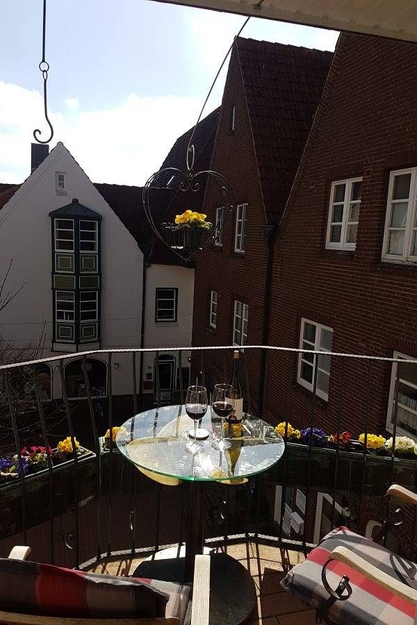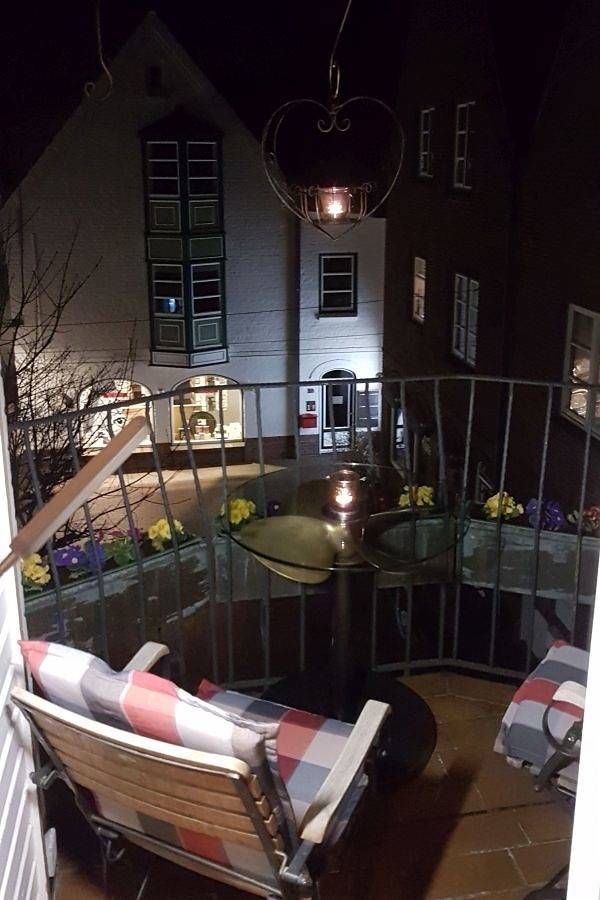 Vom Wohnbereich hast du Zugang zum kleinen Südbalkon mit Terrassenmöbeln und einem tollen Blick auf das Treiben im Schlossgang.