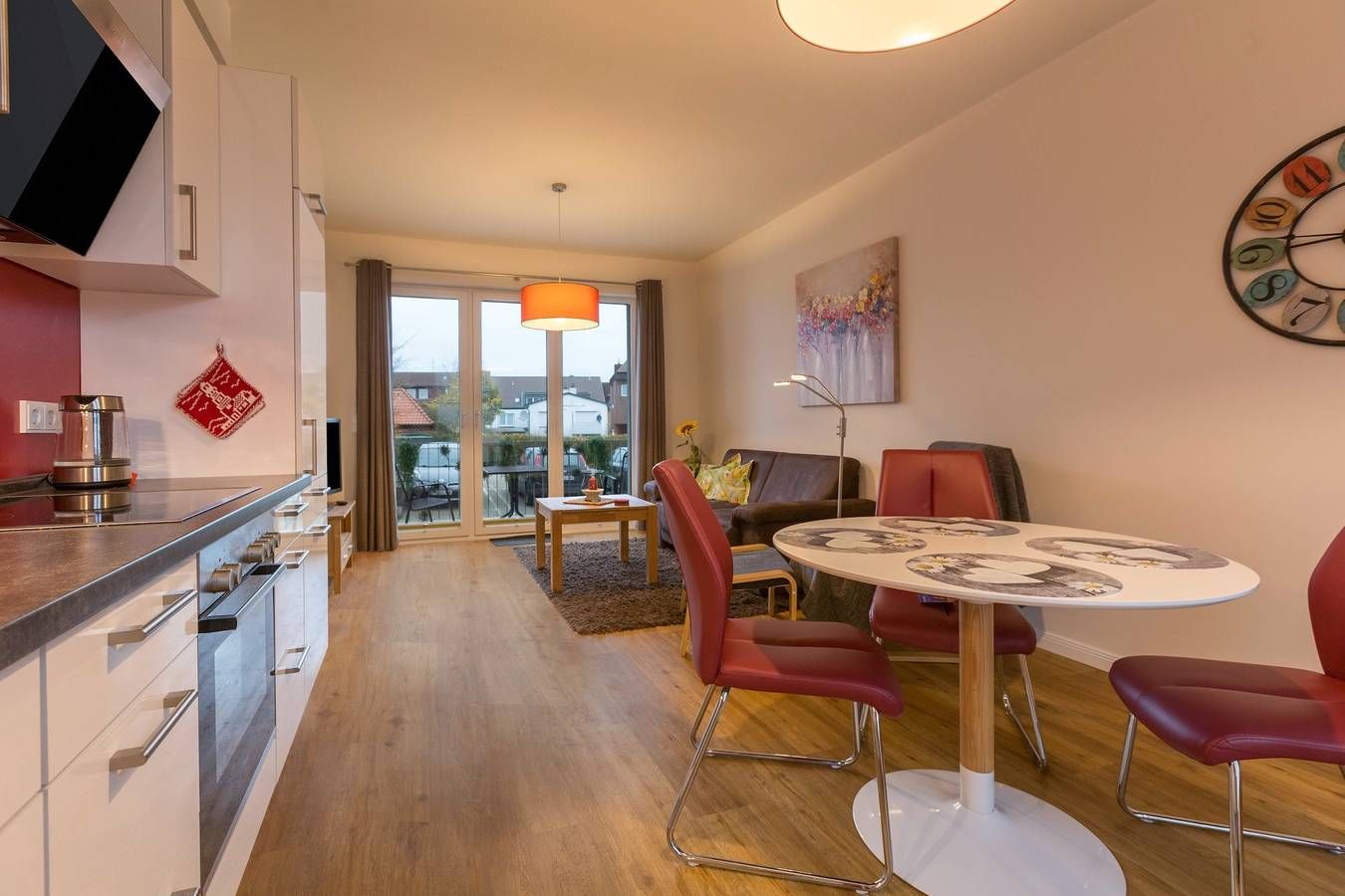 Die 52m² große Ferienwohnung ist Teil einer liebevoll gestalteten Wohnanlage in zentraler Lage in Büsum an der holsteinischen Nordseeküste. Die modern eingerichtete Ferienwohnung verfügt über ein Wohnzimmer mit gut ausgestatteter Küchenzeile, ein Schlafzimmer sowie ein Badezimmer und bietet Platz für 2 Personen. Zur Ausstattung gehören außerdem WLAN, ein Fernseher, ein Babybett und ein Hochstuhl für Kinder (beides auf Anfrage). Vom Wohnzimmer aus haben Sie Zugang zum Balkon, wo Sie die Nachmittagssonne bis zum Sonnenuntergang über Büsum genießen können. Die Ferienwohnung ist ein hervorragender Ausgangspunkt, um den vielseitigen Urlaubsort Büsum zu Fuß zu erkunden. Zahlreiche Restaurants, Bars, Cafés und Einkaufsmöglichkeiten sind fußläufig zu erreichen. Auch ein Supermarkt ist nur 190 m entfernt. Naturliebhaber können die Zeit für erholsame Strandspaziergänge, ausgedehnte Fahrradtouren auf dem Deichweg nach St. Peter oder lange Spaziergänge im Nationalpark Wattenmeer nutzen. Die Familienlagune ist ca. 2 km entfernt und bietet gezeitenunabhängigen Bade-, Paddel- und Surfspaß für Jung und Alt. Kulturbegeisterte erreichen den malerischen Museumshafen in ca. 8 Minuten zu Fuß. Vom nahe gelegenen Hafen (1,5 km) können Sie zu einem Tagesausflug nach Helgoland, Sylt oder Langeoog aufbrechen. Für Ihr Auto steht ein Tiefgaragenstellplatz zur Verfügung. Bettwäsche und Handtücher sind auf Anfrage und gegen eine zusätzliche Gebühr erhältlich. Bitte setzen Sie sich mindestens eine Woche vor Ihrer Anreise mit Ihrem Gastgeber in Verbindung, um die Schlüsselübergabe zu vereinbaren und ihm die genauen Namen, das Alter und die Adresse der Reisenden für die Gästekarte mitzuteilen. Im Gegenzug erhalten Sie die Gästekarte mit zahlreichen Gutscheinen und Ermäßigungen. Bitte beachten Sie, dass zusätzlich eine Kurtaxe zu entrichten ist. Die Höhe variiert je nach Saison. Unter 18 Jahren ist die Kurtaxe kostenlos. Falls Bettwäsche, Reinigung, etc. nicht online bezahlt wurden, bitten wir Sie, bei der Ankunft bar zu bezahlen.