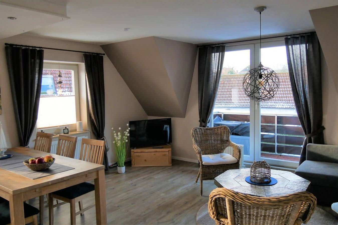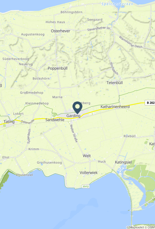 Ferienappartement, OG, ca. 83 qm, 5 Personen, Nichtraucher, WLAN Wohn-Essraum mit Sofagarnitur, Sessel. Offene Küche mit Geschirrspüler und Kaffeefiltermaschine. Essbereich für 5 Personen, Sat-TV, DVD-Player und Radio. Kleiner Balkon. Schlafzimmer mit Doppelbett (180 x 200 cm) und Kleiderschrank. Duschbad mit ebenerdiger Dusche, Waschbecken, WC und Waschmaschine. Wäscheständer, Bügelbrett und -eisen vorhanden. Dachgeschoss: über eine schmalere Treppe im Flur zu erreichen. Schlafzimmer mit zwei Einzelbetten (zum Doppelbett zusammengestellt) und Schlafsofa. Zum Appartement gehört ein reservierter Stellplatz. Abschließbare Fahrradbox für 2 Fahrräder. Fahrradständer vor dem Haus. Ferienwohnung mit Balkon im Herzen der Halbinsel Eiderstedt mit kurzen Wegen nach St. Peter-Ording, Tönning und Friedrichstadt. Das Appartement gehört zu einer Appartementanlage. Das Appartement verfügt über einen Wohn-Essraum, 2 separate Schlafzimmer, eine offene Küche mit Geschirrspülmaschine, ein renoviertes Duschbad mit Waschmaschine. Alle Räume sind mit Vinyl- bzw. Laminatbelag ausgestattet. Das Schlafzimmer im Dachgeschoss verfügt über einen neuen Teppichboden. Ein reservierter Parkplatz steht zu Ihrer Verfügung. Garding ist der zentrale Ausgangspunkt für wunderschöne Radtouren. Die weiten Sandstrände von St. Peter-Ording erreichen Sie nach ca. 10 Minuten Autofahrt (ca.11 km). Ein kleines Einkaufszentrum und die Innenstadt mit Restaurants und dem "Lütt Matten" (Musikantenkneipe) sind gut zu erreichen. Jeden Dienstag befindet sich ein Wochenmarkt mit regionalen Produkten an der Kirche und Marktplatz. In den Sommermonaten finden zahlreiche Veranstaltungen in Garding statt - z. B. Musikantenbörse mit Live-Musik.