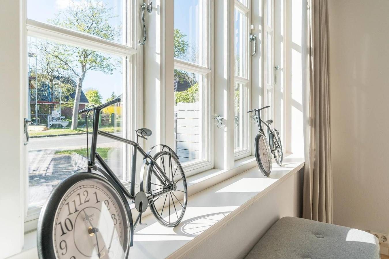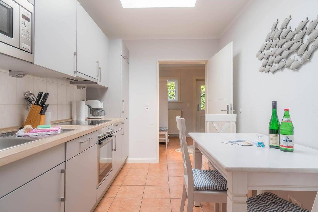 Das Haus in der Gartenstraße unterteilt sich in die drei Wohnungen Rose, Clematis und Hortensie, jede mit eigener Terrasse bzw. eigenem Balkon und gemeinschaftlich genutztem Garten. Im Souterrain befinden sich Waschmaschine und Trockner, die ebenfalls gemeinschaftlich genutzt werden. Das Haus ist nahe der Wyker Innenstadt gelegen und zu der Promenade mit den zahlreichen Restaurants, Cafés und netten Lädchen wie auch zum Wellenbad mit dem Kurmittelhaus ist es nicht weit. Das Friesenmuseum und die Post liegen Ihnen quasi zu Füßen und auch der große Einkaufsmarkt, Bäcker und Schlachter sind fußläufig zu erreichen. Aber auch der Waldspielplatz "Löwenhöhle" ist unweit des Hauses gelegen. Diese zentrale Lage ist ein super Ausgangspunkt für Ihren Urlaub. Die großzügige, ca. 65 m² große Wohnung "Clematis" befindet sich im Erdgeschoss und bietet Ihnen eine separate Küche, zwei Doppelbett-Schlafzimmer, ein Duschbad und ein Wohnzimmer mit Zugang zur eigenen Terrasse und dem gemeinschaftlich genutzten Garten. Gerne können Sie in diese Wohnung Ihren Hund mitbringen. Die Freizeitangebote befinden sich alle in unmittelbarer Umgebung des Objektes. Ein äußerst angenehmer Aufenthalt für unsere Gäste und somit die sorgfältige Reinigung der uns anvertrauten Ferienunterkünfte ist unser höchstes Gebot. Weitere Infos finden Sie auf unserer Homepage! Mind. 7 Übernachtungstage: April - Oktober, Weihnachten und Jahreswechsel Mind. 2 Übernachtungstage: November - März