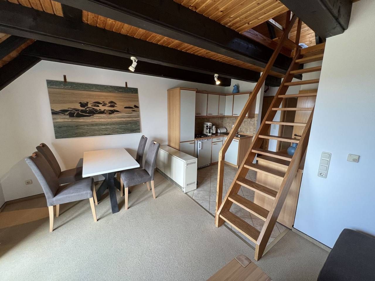 Gemütlich ausgestattete Maisonette Ferienwohnung für bis zu 4 Personen in 250m Entfernung zum Deich und Badestrand. Die Ferienwohnung befindet sich im 1. OG und hat 2 Schlafzimmer. Kombi. Wohn-/Esszimmer mit offener Küche....