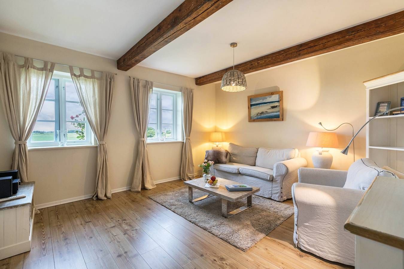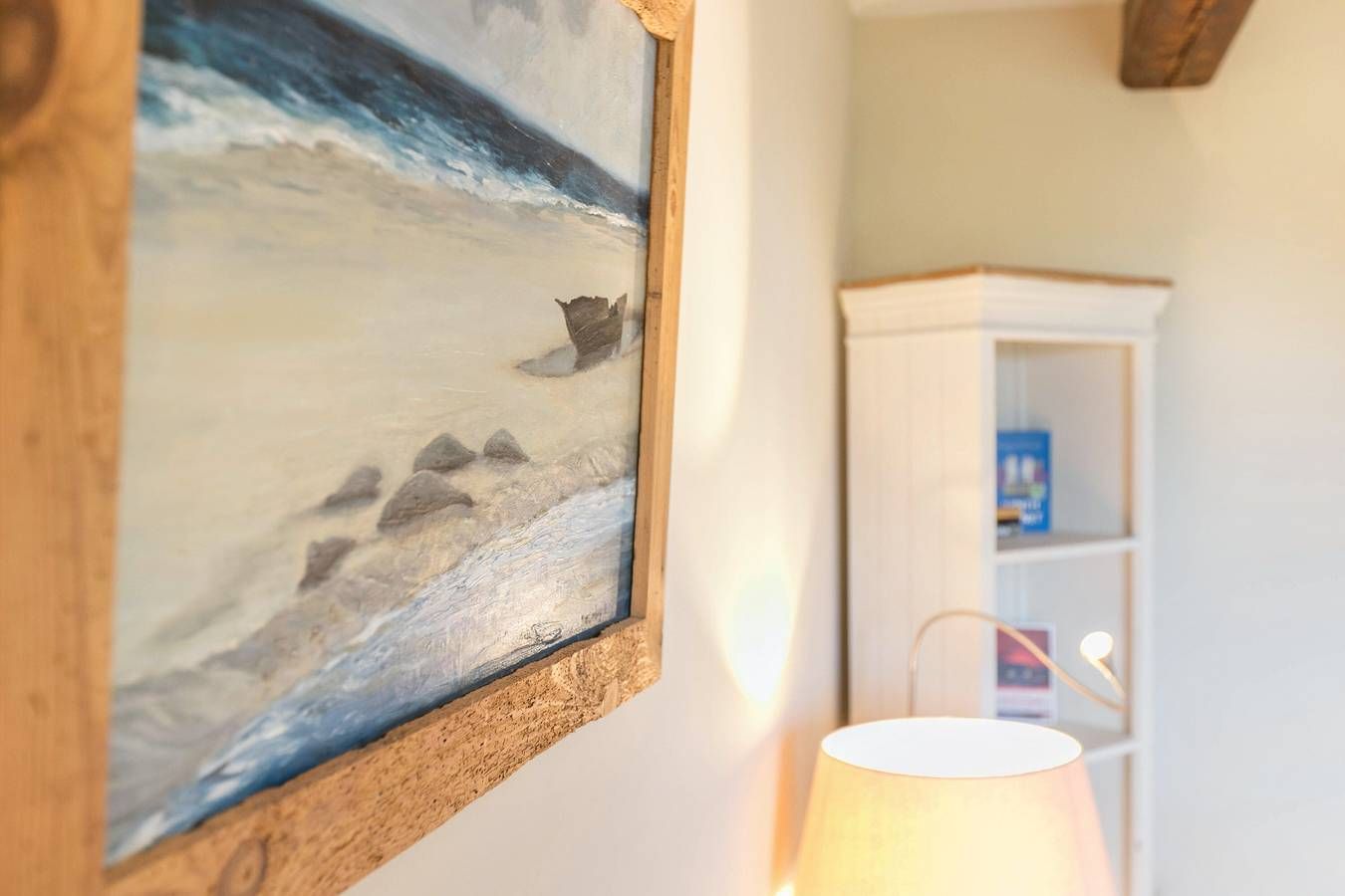 Herzlich willkommen in der Ferienwohnung "Siegfried Lenz" auf der malerischen Nordseeinsel Pellworm. Die stilvoll eingerichtete Ferienwohnung befindet sich auf dem historischen Silberhof, einem reetgedeckten, denkmalgeschützten Bauernhaus, das modernen Komfort mit traditionellem Charme verbindet. Die Ferienwohnung "Siegfried Lenz" bietet ein liebevoll gestaltetes Schlafzimmer, ein 20 Quadratmeter großes Wohnzimmer mit Leseecke und freiem Blick in die Landschaft. Eine voll ausgestattete Küche und ein Bad mit Dusche gehören ebenfalls dazu. Die gesamte Wohnung hat Fußbodenheizung und ist mit Dielenboden ausgelegt. Eine private Terrasse mit Strandkorb lädt zum Verweilen ein und bietet einen herrlichen Ausblick. Darüber hinaus können die weitläufigen Wiesen rund um den Hof genutzt werden. Die Lage der Ferienwohnung ist ideal für Naturliebhaber. Erkunden Sie die einzigartige Naturlandschaft der Nordsee und unternehmen Sie lange Fahrradtouren entlang der Deiche. Genießen Sie erholsame und inspirierende Tage im "Siegfried Lenz" und lassen Sie sich von der Schönheit und Ruhe der Nordseeinsel verzaubern. Unsere Gäste können die Sauna im Garten gegen eine Gebühr nutzen. Ein Hochstuhl und ein Babybett sind auf Anfrage erhältlich. Hunde sind nach Absprache und gegen eine Gebühr erlaubt. Bettwäsche und Handtücher sind im Preis inbegriffen, lediglich Strandtücher bitten wir Sie selbst mitzubringen. Eine Waschmaschine und ein Trockner können kostenlos genutzt werden. Die Entfernung zum Strand beträgt 500 m Luftlinie, mit dem Auto sind es 3 km bis zum Strand. Die Entfernung zum Hundestrand beträgt 6 km. Entfernung zum Supermarkt 1,6 km. Parkplätze für Autos sind vorhanden.