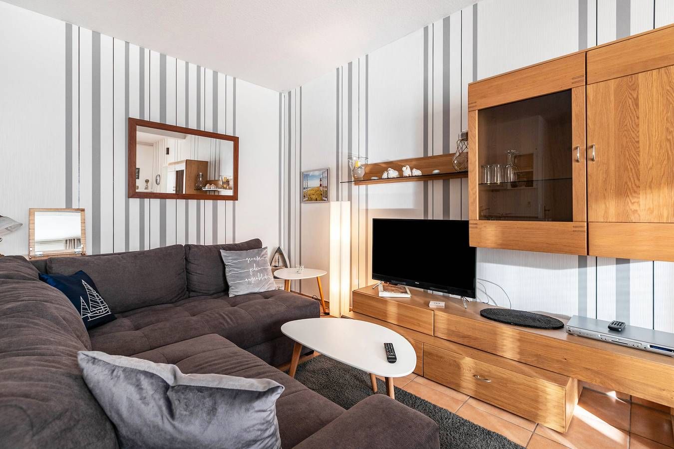 Die Ferienwohnung Deichperle Friedrichskoog Spitze in Friedrichskoog ist die ideale Unterkunft für einen entspannten Urlaub mit deinen Liebsten. Die 2-stöckige Unterkunft besteht aus einem Wohnzimmer mit Schlafcouch für 2 Personen, einem Schlafzimmer und einem Badezimmer und bietet Platz für insgesamt 4 Personen. Zur Ausstattung gehören WLAN mit eigenem Arbeitsplatz für das Homeoffice, ein TV sowie eine Waschmaschine. Ein Kinderreisebett ist ebenfalls vorhanden. Handtücher, Bettwäsche und eine Endreinigung sind im Angebot enthalten. Die Ferienwohnung verfügt über einen privaten Außenbereich mit überdachter Terrasse und Grill sowie eine umzäunte Terrasse, die direkt vom Wohnzimmer aus zugänglich ist.