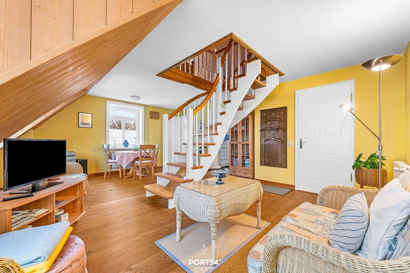 Ferienwohnung Friesenhus Fernsicht – Ihr Rückzugsort an der Nordsee Willkommen in der Ferienwohnung Friesenhus Fernsicht, einem gemütlichen Rückzugsort in ruhiger Lage von Büsumer Deichhausen, nur wenige Gehminuten vom Strand und der Nordsee entfernt. Hier genießen Sie entspannte Urlaubstage abseits des Trubels und dennoch in unmittelbarer Nähe zum Meer. Die rund 50 m² große Wohnung befindet sich im ersten Obergeschoss eines gepflegten Hauses in einer ruhigen Seitenstraße und bietet eine behagliche Atmosphäre für Paare und kleine Familien. Der offen gestaltete Wohn- und Essbereich ist lichtdurchflutet und lädt mit seinem gemütlichen Mobiliar zum Verweilen ein – ob bei einem gemeinsamen Frühstück oder einem entspannten Abend nach einem Strandspaziergang. Die integrierte Küche ist gut ausgestattet und ermöglicht es Ihnen, sich auch im Urlaub bequem selbst zu versorgen. Ein besonderes Highlight ist der sonnige Balkon mit Blick ins Grüne, auf dem Sie die frische Nordseeluft genießen und entspannte Stunden verbringen können. Der separate Schlafbereich auf der Galerie sorgt für eine ruhige Rückzugsmöglichkeit und rundet das wohnliche Gesamtbild der Ferienwohnung ab. Für Familien mit Kleinkind steht bei Bedarf ein Babybett zur Verfügung. Das moderne Badezimmer mit bodengleicher Dusche bietet Komfort und Funktionalität. Bettwäsche und Handtücher sind bereits für Sie vorbereitet, sodass Sie entspannt anreisen können. WLAN, Zentralheizung sowie weitere Annehmlichkeiten sorgen dafür, dass Sie sich zu jeder Jahreszeit wohlfühlen. Ein privater Parkplatz direkt am Haus macht die Anreise besonders unkompliziert. Waschmaschine und Trockner können nach Absprache genutzt werden, was die Wohnung auch für längere Aufenthalte attraktiv macht. Die Umgebung von Büsumer Deichhausen bietet zahlreiche Möglichkeiten zur aktiven Erholung: Spaziergänge am Deich, ausgedehnte Radtouren, Wassersport oder ein Besuch des nahegelegenen Golfplatzes. Restaurants, Einkaufsmöglichkeiten und kulturelle Angebote sind bequem erreichbar und machen Ihren Aufenthalt abwechslungsreich. Bitte beachten Sie, dass der Eigentümer des Hauses ebenfalls im Gebäude wohnt und in seinen privaten Räumen im Erdgeschoss raucht. Der Zugang zur Ferienwohnung erfolgt über einen gemeinsam genutzten Hausflur, in dem daher gelegentlich Rauchgeruch wahrnehmbar sein kann. Die Ferienwohnung selbst ist selbstverständlich eine Nichtraucherunterkunft. Die Ferienwohnung Friesenhus Fernsicht ist der ideale Ort für alle, die Ruhe, Komfort und die Nähe zum Meer schätzen. Gönnen Sie sich eine Auszeit an der Nordsee und genießen Sie entspannte Tage in persönlicher Atmosphäre.