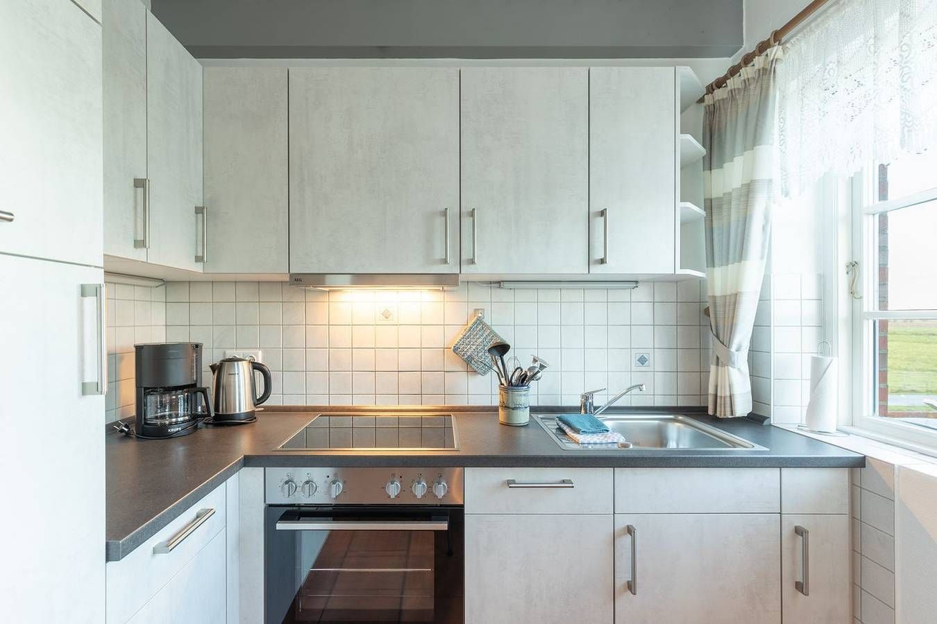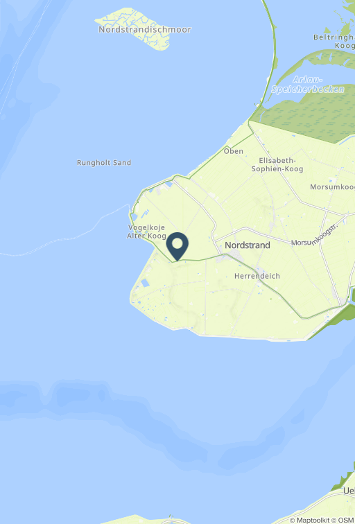Genießen Sie die Ruhe und Natur auf Nordstrand und lassen Sie sich eine steife Brise um die Nase wehen! In unserer Ferienwohnung Nummer 1 finden bis zu 3 Personen Platz. Die Lage Das Ferienhaus "Frisia" befindet sich in einer malerischen Lage auf dem Deich im Ortsteil Westen auf der Halbinsel Nordstrand. Es besteht aus drei separaten Wohnungen, die jeweils einen eigenen Eingang und eine Terrasse mit Strandkorb haben. Alle Wohnungen haben zwei Stockwerke und sind stilvoll aufeinander abgestimmt. Die nächstgelegenen Geschäfte und ein Bäcker sind etwa 1500 Meter entfernt. Der nächste Badestrand ist ungefähr 1000 Meter entfernt. Auf Nordstrand gibt es neben Kurmöglichkeiten auch zahlreiche Aktivitäten wie Wattwandern, Radfahren oder Ausflüge mit dem Schiff zu den Halligen und Inseln. Der Abfahrtshafen "Strucklahnungshörn" ist nur 3 Kilometer entfernt. Außerdem liegt die schöne Stadt Husum mit ihrem idyllischen Hafen und ihrem belebten Stadtkern nur etwa 20 Kilometer entfernt. Die Ausstattung Die Ferienwohnung verfügt über zwei Schlafzimmer im Obergeschoss, die jeweils mit einem Doppelbett (180 x 200) und einem Einzelbett (90 x 200) ausgestattet sind. Zusätzlich gibt es eine Gästetoilette. Im Erdgeschoss befinden sich die Küche, der Wohnraum und das Badezimmer. Die Küche ist umfangreich eingerichtet: Ceranfeld, Backofen, Geschirrspülmaschine, Kühlschrank mit Gefrierfach, Mikrowelle und Filterkaffeemaschine (Größe 4) sowie eine Tchibo Qbo Kapselmaschine. Das Badezimmer bietet eine Dusche, ein WC und eine Waschmaschine. Der Wohnraum ist gemütlich mit einem Sofa und einem Fernseher zum Entspannen gestaltet. Die Wohnung wird im Erdgeschoss zusätzlich über eine Fußbodenheizung erwärmt. Auf der Terrasse können Sie mit Blick aus dem Strandkorb (April - Oktober) über die Felder, den Tag ausklingen lassen. Mitgebrachte Fahrräder können im abschließbaren Schuppen untergebracht werden. Die Besonderheiten In Ferienwohnung 1 ist ein Vierbeiner herzlich willkommen. Gerne bieten wir Ihnen kostenloses WLAN an. Parkmöglichkeiten vor dem Ferienhaus sind vorhanden. Liege- und Gartenstühle stehen ebenfalls für Sie bereit. Eine Erstausstattung an Bettwäsche und Handtüchern wird bei dieser Unterkunft obligatorisch hinzugebucht und ist bereits im Endpreis enthalten. Zusätzliche Wäschepakete können in den optionalen Leistungen hinzugebucht werden.