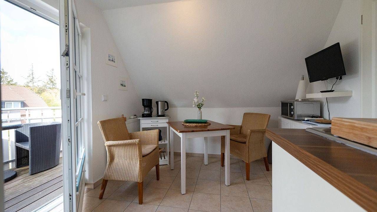 Beschreibung der Wohnung Die Ferienwohnung „Popenstuuv" (Friesisch: Puppenstube) im 1. Obergeschoss des Hauses „Waltraud" in Norddorf auf Amrum ist eine 2-Zimmer-Ferienwohnung mit Schlafmöglichkeiten für 1 bis 2 Personen. NICHTRAUCHERHAUS - Im gesamten Haus, auf den Balkons und Terrassen ist das Rauchen nicht erlaubt. Die Wohnung verfügt über 1 Wohnküche mit WLAN, Sat-TV, 1 Schlafzimmer, 1 Badezimmer mit Dusche und WC; 1 offener West-Balkon mit Möbeln (April bis Oktober). Ein PKW-Stellplatz ist am Haus. Lage Die Ferienwohnung "Popenstuuv" (Friesisch: Puppenstube)befindet sich im 1. Obergeschoss des Hauses Waltraud ganz im Süden von Norddorf. Besonders ruhig am Waldrand gelegen bietet das Haus seinen Gästen 4 modern eingerichtete Ferienwohnungen mit jeweils eigenem Balkon oder eigener Terrasse.