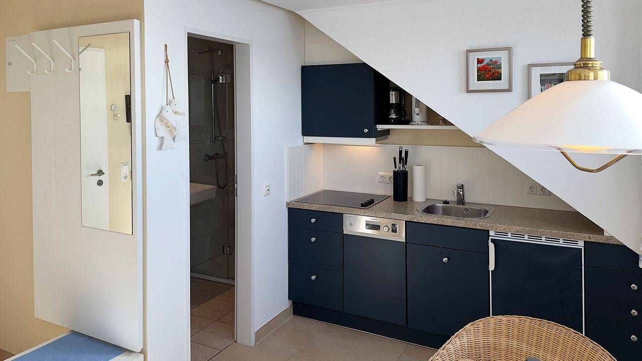 Beschreibung der Wohnung Die Ferienwohnung „Südspitze 34/26" im 1. Obergeschoss des Hauses in Wittdün auf Amrum ist eine 1-Zimmer-Ferienwohnung mit Schlafmöglichkeiten für 1 bis 2 Personen. Die Wohnung verfügt über 1 Wohn- /Schlafraum mit Meerblick, WLAN, Sat-TV und offener Küche, 1 Badezimmer mit Dusche und WC; PKW-Stellplatz. Anfahrt IHR PKW-STELLPLATZ befindet sich auf dem unteren Parkplatz in der Nähe von Inselstraße 3 gegenüber der Gaststätte Rialto. Dort befinden sich mehrere Plätze mit der Nummer 34. ----- IHRE FERIENWOHNUNG befindet sich als mittlere Wohnung im 1. Obergeschoss des Hauses 34 und hat die Nummer 26.