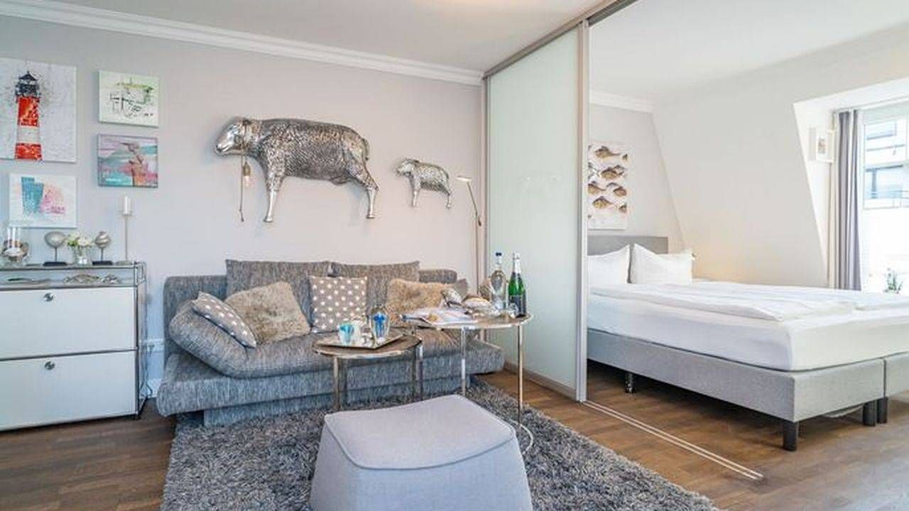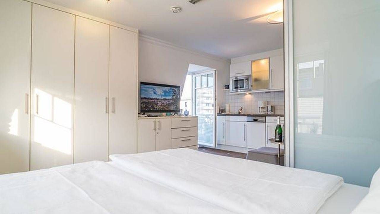 Sonstiges Großzügige City-Ferienwohnung in zentraler Lage und Strandnähe! Die exklusive, mit Designerboden ausgelegte 1-Zimmer-Nichtraucher-Ferienwohnung in der 3. Etage mit Nordwest-Balkon (mit Balkonmöbeln und Auflagen) ist...
