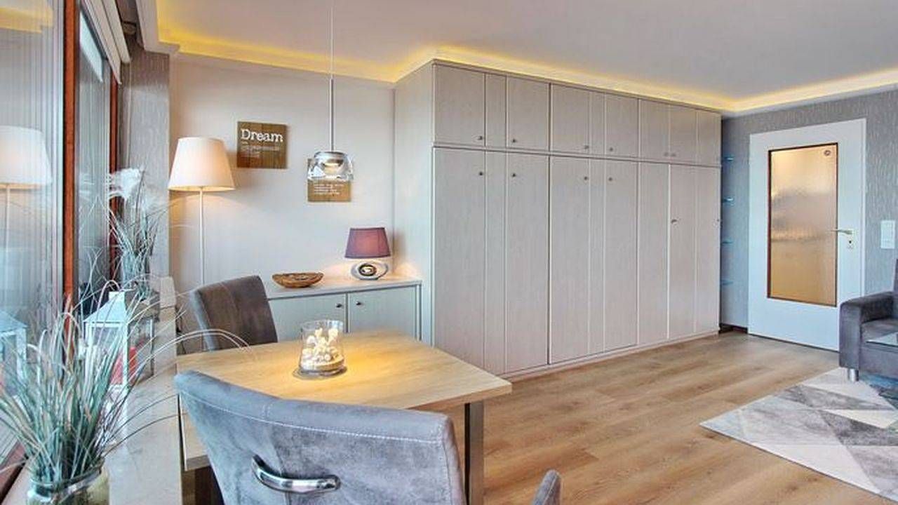 Beschreibung der Wohnung Diese Nichtraucherwohnung in der 3. Etage im Haus Metropol hat einen herrlichen Blick über den Strand und die Nordsee. Der hell und freundlich eingerichtete Wohn-/Schlafraum mit vorgelagertem Westbalkon verfügt über Einzelschrankbetten, einen Essplatz am Fenster mit 2 Stühlen, sowie eine bequemes Sofa. Im modernen Badezimmer gibt es eine Eckdusche, einen Handtuchtrockner, einen Duschhocker und einen Fön. Eine Einbauküche befindet sich im Flur. Stilvoll decken sie den Tisch mit Porzellan von Seltmann Weiden. Zur technischen Ausstattung gehört ein Flachbildfernseher von Panasonic mit integriertem Radio, eine Bluetooth Anlage mit Radio und CD Player von Sony und ein Telefonanschluss mit Flatrate ins dt. Festnetz ist ebenfalls vorhanden. Ein freies WLAN Netzwerk (WEG Haus Metropol - Passwortfrei - ohne Gewähr) und ein eigener Internetzugang des Eigentümers steht ihnen kostenfrei zur Verfügung. Haustiere sind herzlich willkommen. Wohnungsgröße: ca.34 m². Sonstiges Diese Nichtraucherwohnung in der 3. Etage im Haus Metropol hat einen herrlichen Blick über den Strand und die Nordsee. Der hell und freundlich eingerichtete Wohn-/Schlafraum mit vorgelagertem Westbalkon verfügt über Einzelschrankbetten, einen Essplatz am Fenster mit 2 Stühlen, sowie eine bequemes Sofa. Im modernen Badezimmer gibt es eine Eckdusche, einen Handtuchtrockner, einen Duschhocker und einen Fön. Eine Einbauküche befindet sich im Flur. Stilvoll decken sie den Tisch mit Porzellan von Seltmann Weiden. Zur technischen Ausstattung gehört ein Flachbildfernseher von Panasonic mit integriertem Radio, eine Bluetooth Anlage mit Radio und CD Player von Sony und ein Telefonanschluss mit Flatrate ins dt. Festnetz ist ebenfalls vorhanden. Ein freies WLAN Netzwerk (WEG Haus Metropol - Passwortfrei - ohne Gewähr) und ein eigener Internetzugang des Eigentümers steht ihnen kostenfrei zur Verfügung. Haustiere sind herzlich willkommen. Wohnungsgröße: ca.34 m².