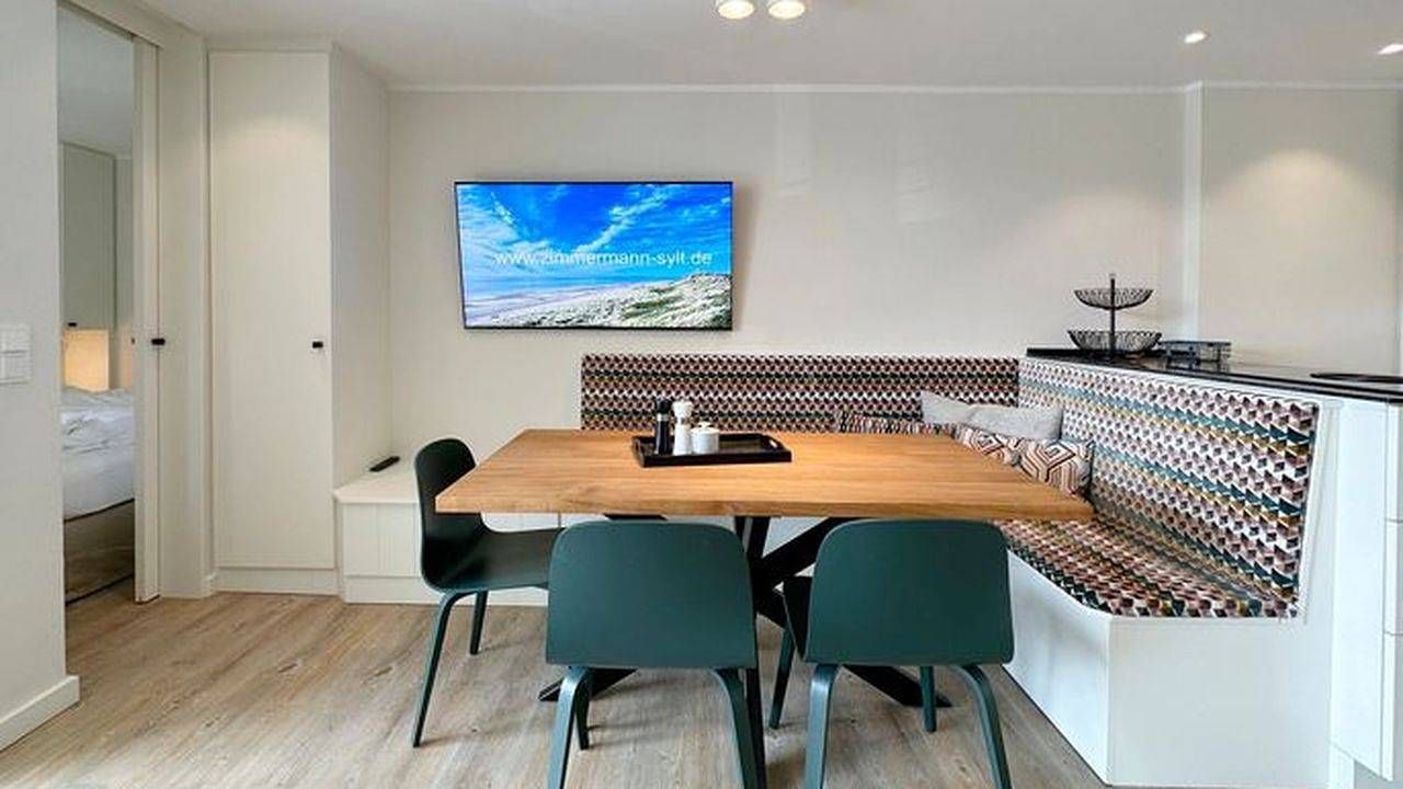Sonstiges Im Haus Käpt'n Christiansen bieten wir Ihnen ab sofort die Ferienwohnung Johanna in bester Lage an, nur wenige Meter vom Strandübergang und der Innenstadt entfernt. Wohnzimmer mit Loungeartiger Couch, maßgefertigte Essecke, Offene Küche ( mit Bora-Kochfeld, Backofen, Geschirrspüler, Kühlschrank mit Gefrierfach ). Von hier aus betreten Sie den Balkon in südlicher Ausrichtung. Modernes Duschbad, mit WC und Waschbecken Schlafzimmer mit Boxspring-Bett und zweitem TV Hochwertige Tischlereinbauten in der Wohnung runden das positive Gesamtbild ab. Ein PKW-Stellplatz gehört leider nicht zur Wohnung, aber Sie können gebührenpflichtig quasi vor der Tür ( ab EUR 8,- / Tag ) Ihr Fahrzeug abstellen. [nbsp] Beschreibung der Wohnung Im Haus Käpt'n Christiansen bieten wir Ihnen ab sofort die Ferienwohnung Johanna in bester Lage an, nur wenige Meter vom Strandübergang und der Innenstadt entfernt. Wohnzimmer mit Loungeartiger Couch, maßgefertigte Essecke, Offene Küche ( mit Bora-Kochfeld, Backofen, Geschirrspüler, Kühlschrank mit Gefrierfach ). Von hier aus betreten Sie den Balkon in südlicher Ausrichtung. Modernes Duschbad, mit WC und Waschbecken Schlafzimmer mit Boxspring-Bett und zweitem TV Hochwertige Tischlereinbauten in der Wohnung runden das positive Gesamtbild ab. Ein PKW-Stellplatz gehört leider nicht zur Wohnung, aber Sie können gebührenpflichtig quasi vor der Tür ( ab EUR 8,- / Tag ) Ihr Fahrzeug abstellen. [nbsp]