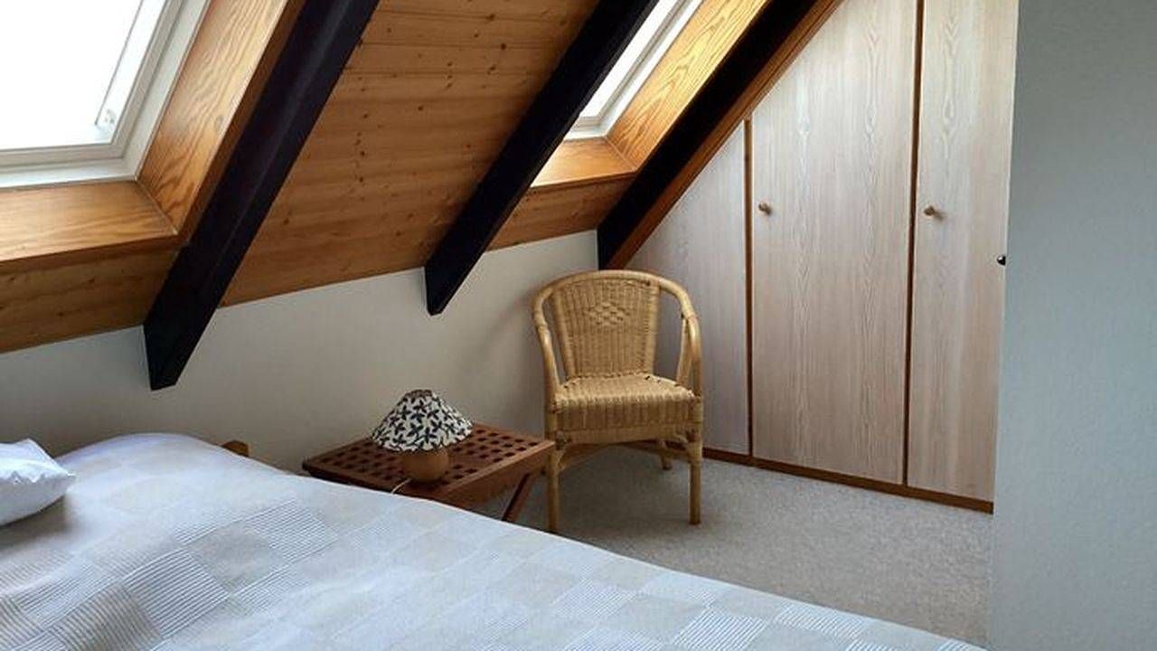 Beschreibung der Wohnung • Ferienwohnung ca. 40 qm im 1. OG • Max. für 4 Personen • Wohnraum mit Einbachküche (ohne Backofen, aber mit Mikrowelle) • Dusche und WC • 1 Schlafzimmer mit Doppelbett (180x200cm) • 1...