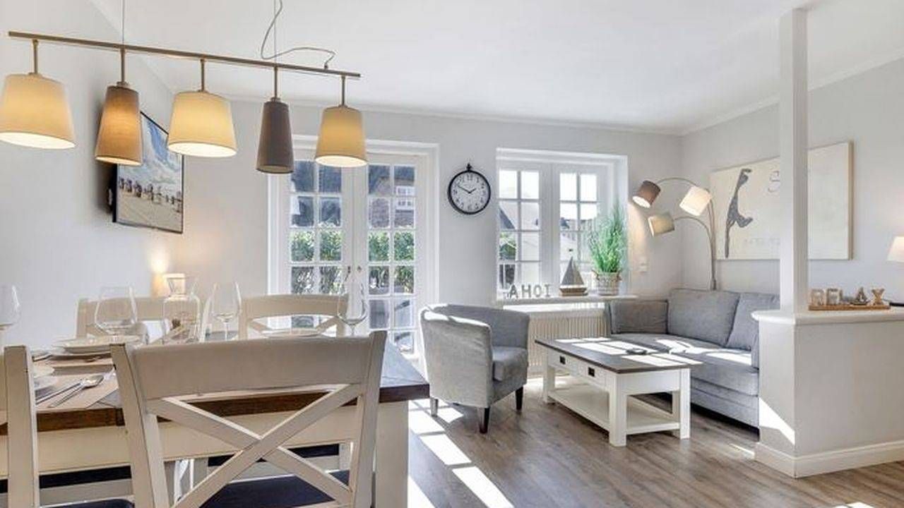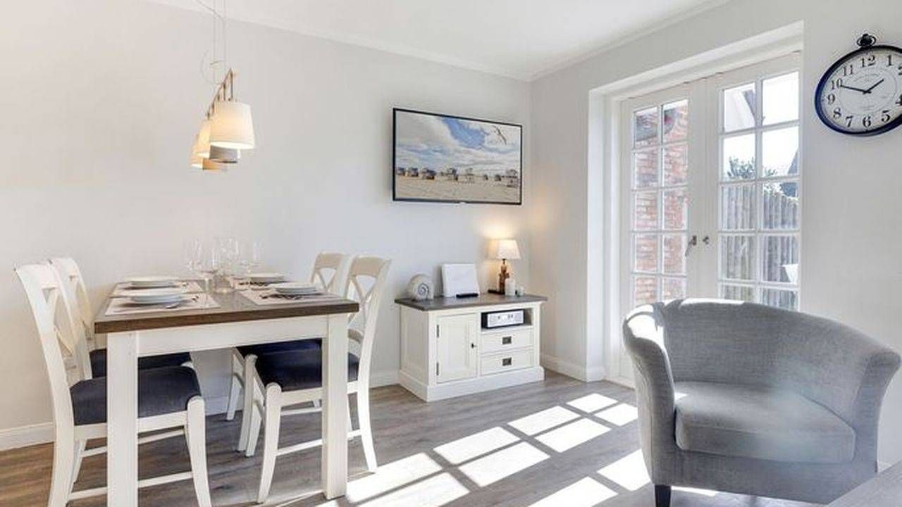 Sonstiges Unweit des Wenningstedter Dorfteichs wartet auf Sie dieses geschmackvoll eingerichtete Appartement für bis zu vier Personen. Der Urlaubsort Wenningstedt eignet sich perfekt für Familien mit Kindern. Von der Rutsche hinunter zum Strand an der Promenade über Minigolf bis hin zum Mitmachzirkus im Sommer werden hier zahlreiche tolle Kinderaktivitäten geboten. Der Wohnraum des Appartements bietet Ihnen eine gemütliche Couchecke mit Sessel zum Entspannen, einen Essbereich für vier Personen und eine offene Küchenzeile, die mit Ceranfeld, Backofen, Geschirrspülmaschine und Nespresso-Maschine ausgestattet ist. Bereiten Sie sich Ihr Urlaubsfrühstück zu und genießen Sie es auf Ihrer privaten Terrasse, die von April bis Oktober möbliert ist. Durch die ruhige Lage des Hauses können Sie hier ungestört die Sylter Nordseeluft genießen. Auf gleicher Ebene zum Wohnraum befindet sich ein Gäste-WC. Im Untergeschoss des Hauses finden Sie einen Raum mit Doppelbett und Flatscreen-TV sowie einen weiteren Raum mit zwei Einzelbetten und Flatscreen-TV. Auf dieser Etage finden Sie außerdem ein Badezimmer mit Dusche und WC. Ausstattung: 3-Raum Appartement im EG und UG mit ca. 50 m² Nutzfläche für bis zu vier Personen EG: Wohnraum mit Flatscreen-TV, Sonos-Box, W-Lan, offene Küche mit Backofen, Ceranfeld, Geschirrspülmaschine, Nespressomaschine, Gäste-WC, Terrasse mit Terrassenmöbeln und Strandkorb (April - Okt.) UG: Ein Raum mit Doppelbett und Flatscreen-TV, ein Raum mit zwei Einzelbetten und Flatscreen-TV, Duschbad Einen Parkplatz finden Sie direkt am Haus. Es handelt sich um ein Nichtraucherdomizil in dem Haustiere herzlich willkommen sind. Beschreibung der Wohnung Unweit des Wenningstedter Dorfteichs wartet auf Sie dieses geschmackvoll eingerichtete Appartement für bis zu vier Personen. Der Urlaubsort Wenningstedt eignet sich perfekt für Familien mit Kindern. Von der Rutsche hinunter zum Strand an der Promenade über Minigolf bis hin zum Mitmachzirkus im Sommer werden hier zahlreiche tolle Kinderaktivitäten geboten. Der Wohnraum des Appartements bietet Ihnen eine gemütliche Couchecke mit Sessel zum Entspannen, einen Essbereich für vier Personen und eine offene Küchenzeile, die mit Ceranfeld, Backofen, Geschirrspülmaschine und Nespresso-Maschine ausgestattet ist. Bereiten Sie sich Ihr Urlaubsfrühstück zu und genießen Sie es auf Ihrer privaten Terrasse, die von April bis Oktober möbliert ist. Durch die ruhige Lage des Hauses können Sie hier ungestört die Sylter Nordseeluft genießen. Auf gleicher Ebene zum Wohnraum befindet sich ein Gäste-WC. Im Untergeschoss des Hauses finden Sie einen Raum mit Doppelbett und Flatscreen-TV sowie einen weiteren Raum mit zwei Einzelbetten und Flatscreen-TV. Auf dieser Etage finden Sie außerdem ein Badezimmer mit Dusche und WC. Ausstattung: 3-Raum Appartement im EG und UG mit ca. 50 m² Nutzfläche für bis zu vier Personen EG: Wohnraum mit Flatscreen-TV, Sonos-Box, W-Lan, offene Küche mit Backofen, Ceranfeld, Geschirrspülmaschine, Nespressomaschine, Gäste-WC, Terrasse mit Terrassenmöbeln und Strandkorb (April - Okt.) UG: Ein Raum mit Doppelbett und Flatscreen-TV, ein Raum mit zwei Einzelbetten und Flatscreen-TV, Duschbad Einen Parkplatz finden Sie direkt am Haus. Es handelt sich um ein Nichtraucherdomizil in dem Haustiere herzlich willkommen sind.
