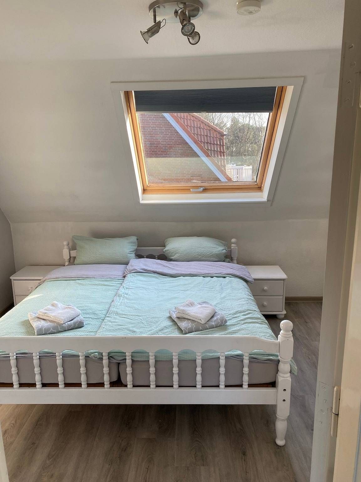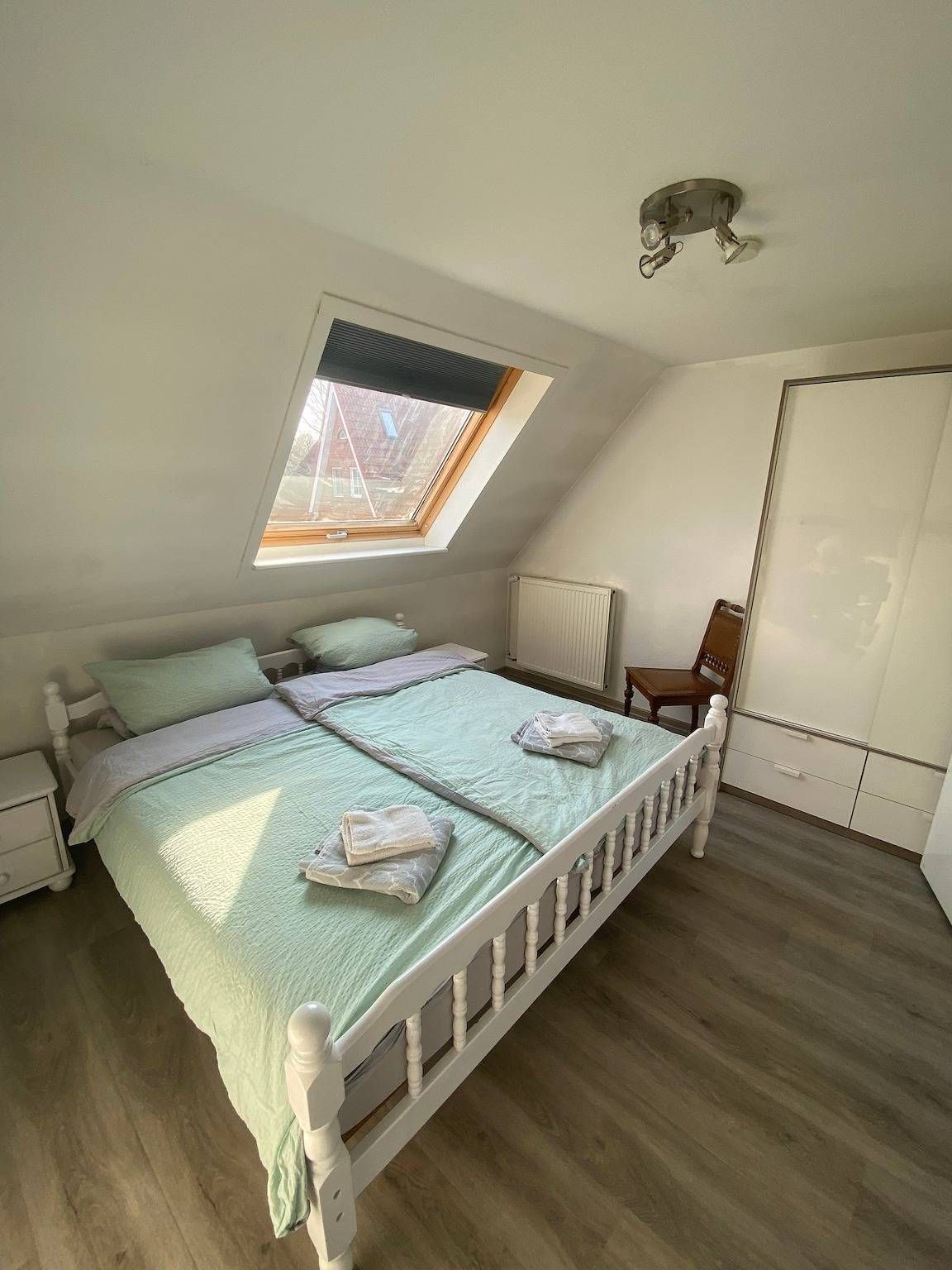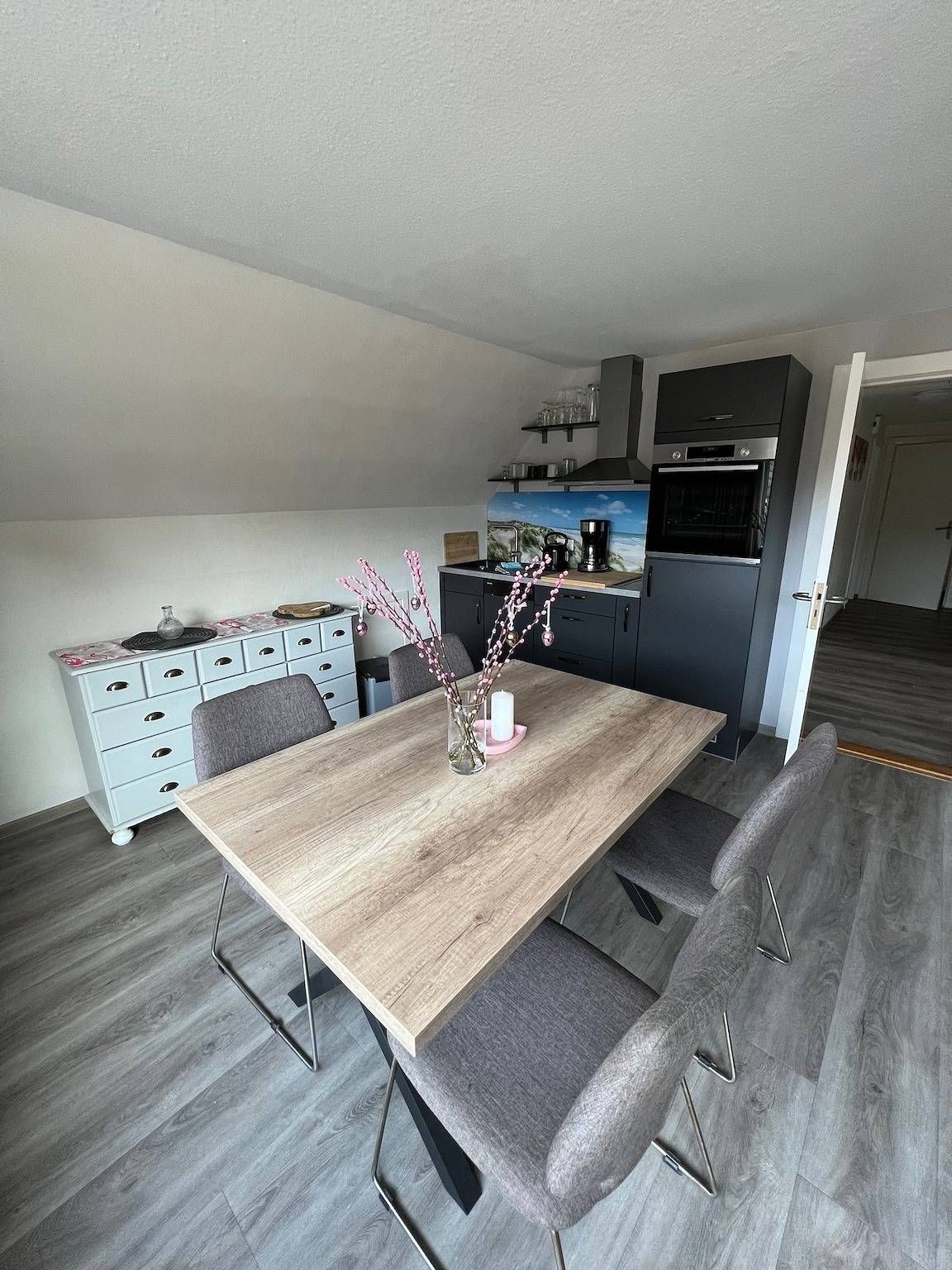 Nur 300m vom Strand entfernt liegt "Glück" diese wunderschöne helle Wohnung mit 20qm SüdWest Terrasse zentral und ruhig zwischen den Ortstielen direkt an der Bushaltestelle. Nur 300m vom Strand entfernt liegt diese wunderschöne helle Wohnung "Glück" mit 20 qm SüdWest Terrasse. Die ruhige und sehr zentrale Lage wird von unseren Gästen sehr geschätzt. Die Wohnung verfügt über 2 Schlafzimmer. In einem Schlafzimmer haben Sie ein Bett mit 180x200m und das andere Bett ist 120x200m. Der offene Wohn-Essbereich ist mit einer Schlafcouch einem Flachbildschirmfernseher, Küchenzeile mit Induktionskochfeld, Backofen, Spülmaschine, Kühlschrank, Wasserkocher und Kaffeemaschine ausgestattet. Vom offenen Wohnbereich mit Panoramafenster und Blick in die Bäume gelangen Sie auf die große 20qm Terrasse, die nach SüdWest ausgerichtet ist und von Morgens bis zum Sonnenuntergang einen fantastischen Blick ins Grüne bietet! Das Bad ist mit einer Dusche ausgestattet. Ein Fön ist vorhanden. Fragen Sie uns gern auch für unser Ferienhaus "Ruhe" oder unsere kleine Wohnung "Freunde" an. 20qm SüdWest Terrasse mit Blick ins Gründe und Sonne von Morgens bis zum Sonnenuntergang. Perfekte Lage zwischen zwei Ortsteilen und dennoch ruhig und nach hinten gelegen. Direkt vor dem Haus ist die Bushaltestelle
