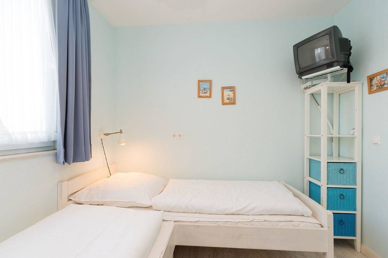 Kurzbeschreibung: Ihr Urlaubsdomizil im Herzen von Westerland – Gemütliche Ferienwohnung mit Balkon! Lagebeschreibung: Westerland ist die lebendige Seite von Sylt. Shopping und Sonnenbaden, ein bunter Veranstaltungskalender und ein ausgeprägtes Nachtleben, Promenadenbummel und Kurkonzert, relaxen im Freizeitbad und neue Kräfte tanken im Kurmittelhaus; das ist Westerland - eine Stadt mit vielen Gesichtern, die zu jeder Jahreszeit einen kurzweiligen Urlaub verspricht. Geschmackvoll eingerichtete Wohnung für bis zu 4 Personen im 2. Obergeschoss eines zentral gelegenen Appartementhauses im Zentrum von Westerland. Die Wohnung besitzt einen Ostbalkon mit Blick auf den Stadtpark. Ausstattungen: Willkommen in Ihrer charmanten Ferienwohnung, perfekt gelegen im Zentrum von Westerland auf Sylt! Diese frisch renovierte Wohnung im 2. Obergeschoss eines gepflegten Appartementhauses bietet auf 57 m² ein stilvolles und komfortables Zuhause für bis zu 4 Personen. Genießen Sie die ideale Kombination aus zentraler Lage und ruhigem Wohnkomfort! Die geschmackvoll eingerichtete Wohnung verfügt über ein lichtdurchflutetes Wohnzimmer mit einer gut ausgestatteten Küchenzeile, die alle Annehmlichkeiten für die Selbstversorgung bietet, inklusive Geschirrspüler und Backofen. Der gemütliche Essbereich bietet einen wunderbaren Blick auf den Stadtpark und das Rathaus – hier schmeckt der erste Kaffee am Morgen besonders gut! Für erholsame Nächte stehen Ihnen zwei Schlafzimmer zur Verfügung: Ein Schlafzimmer mit einem komfortablen Doppelbett (180x200 cm, getrennte Matratzen) und ein zweites Schlafzimmer mit zwei Einzelbetten (90x200 cm) – perfekt für Familien oder Freunde, die gemeinsam einen entspannten Urlaub verbringen möchten. Das moderne Badezimmer ist mit einer Badewanne und einer separaten Dusche ausgestattet, ideal für eine entspannende Auszeit nach einem ereignisreichen Tag am Strand. Außenbereich: Genießen Sie die Sonne auf dem einladenden Ostbalkon mit Blick auf den Stadtpark – der perfekte Ort, um den Tag bei einem Frühstück im Freien zu beginnen oder abends bei einem Glas Wein zu entspannen und die frische Nordseeluft zu atmen. Eigener PKW-Stellplatz Nr. 41 Besonderes: Die Ferienwohnung bietet Ihnen alles, was Sie für einen erholsamen und zugleich spannenden Urlaub benötigen – zentral gelegen, nur wenige Schritte von Westerlands Geschäften, Restaurants und dem Strand entfernt. Tauchen Sie ein in das Inselleben und genießen Sie Ihre Auszeit in vollen Zügen! Wir freuen uns darauf, Sie bald auf Sylt willkommen zu heißen! Allgemeine Informationen: Anreise ab 16:00 Uhr Abreise bis 10:00 Uhr Zusätzliche Preisinfos: Bei Buchung bitten wir um Ihre Anschrift, Handynummer, Email-Adresse. Sowie die Namen/Geburtsdaten Ihrer Mitreisenden. Nach der Buchung stehen Ihnen zusätzlich die Zahlungsmöglichkeiten Banküberweisung, Kreditkarte, Sofortüberweisung und Google/Apple Pay zur Verfügung. Weitere Informationen entnehmen Sie bitte Ihrer Buchungsbestätigung. ---------------------------------------- Bei Buchung bitten wir um Ihre Anschrift, Handynummer, Email-Adresse. Sowie die Namen/Geburtsdaten Ihrer Mitreisenden.