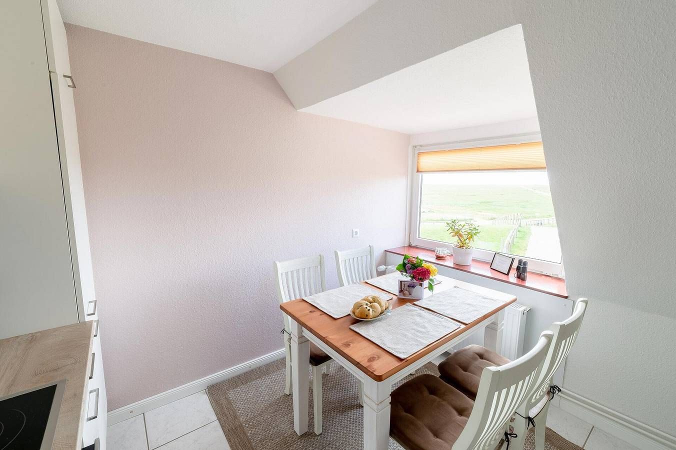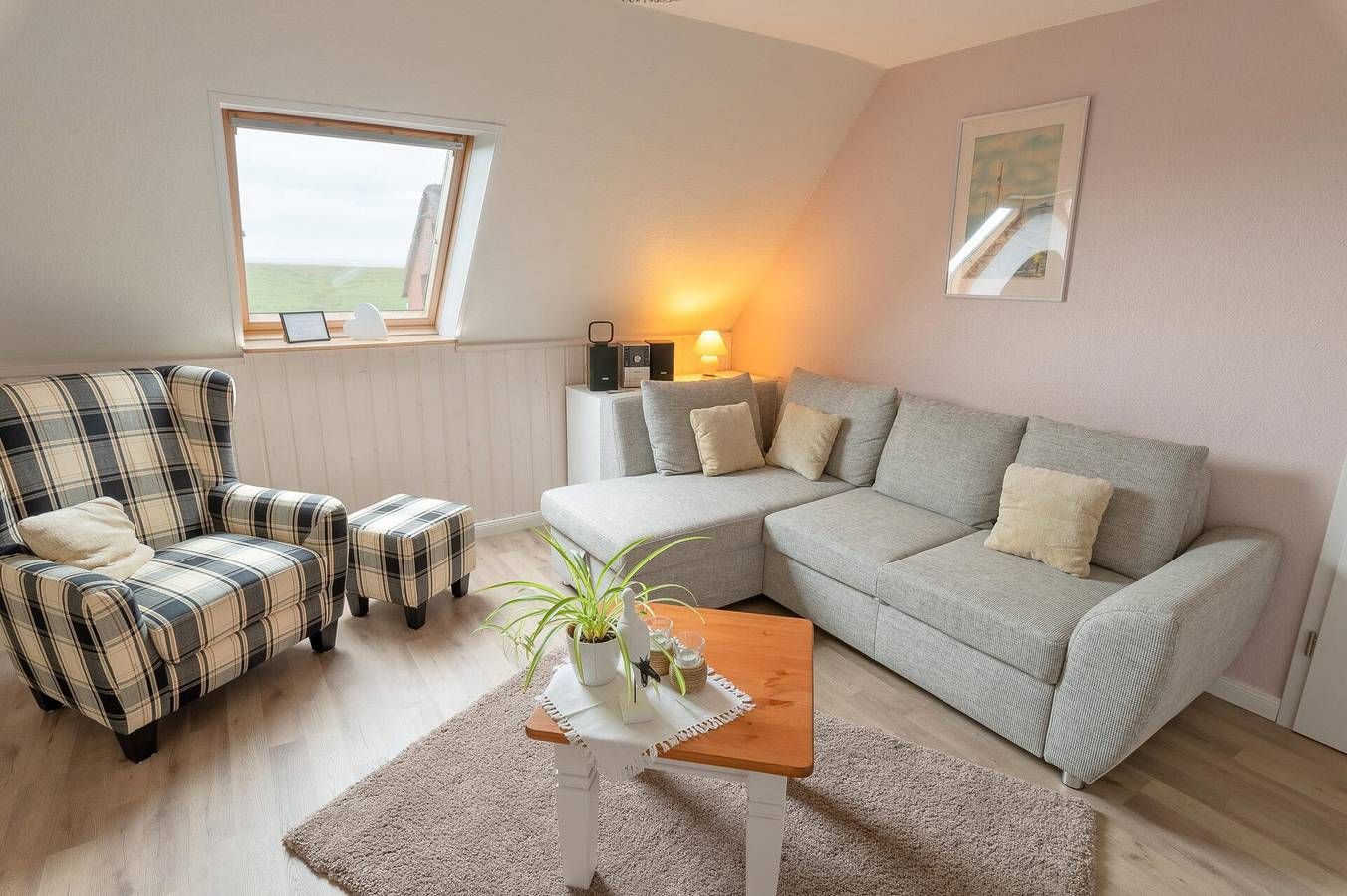 Die Ferienwohnung Haus Süderkamp befindet sich in Langeneß und beeindruckt Gäste durch den Seeblick.