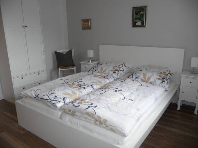 Informationen zum Gastgeber Die Ferienwohnung Wolter-Petersen liegt über einem ehemaligen Werkstattgebäude zentral in der Innenstadt. Der Marktplatz und der Hafen sind in wenigen Gehminuten erreichbar. Die Nordsee und den Badestrand erreichen Sie nach ca. 3,0 km. Die nächste Einkaufsmöglichkeit ist ca. 800 m entfernt. Die Entfernung zum Husumer Bahnhof beträgt ca. 1 km. Für kleine Gäste gibt es einen Kinderhochstuhl und ein Kinderreisebett. Weitere Angaben: 1 PKW-Stellplatz, Fahrradabstellplatz, Nichtraucher, keine Haustiere, W-LAN. DTV-Klassifizierung nicht teilgenommen. Anreisebeschreibung Die Ferienwohnung Wolter-Petersen erreichen Sie mit dem HusumBus - Linie 1 ab dem zentralen Busbahnhof (ZOB). Die nächste Bushaltestelle "Fischergang" ist ca. 220 m von der Ferienwohnung entfernt. Beschreibung. Die frisch renovierte, hell im Vintage Look eingerichtete Ferienwohnung "Hein" ist ca. 80 m2 groß, liegt im Obergeschoss eines ehemaligen Werkstatt-Gebäudes und bietet Platz für 4 Personen. Die Ferienwohnung ist aufgeteilt in einen Wohn-/Essbereich, 2 Schlafzimmer, eine Küche und ein Badezimmer. Der Wohn-/Essbereich ist mit einer großen Sofalandschaft, einem TV-Gerät, DVD-Player und Stereo-Anlage eingerichtet. Ein Esstisch lädt zu gemeinsamen Mahlzeiten ein. Die separate Küche ist mit einem Herd mit Cerankochfeld und Backofen, Kühlschrank, Mikrowelle, Kaffeemaschine, Wasserkocher, Toaster und einem kleinen Esstisch ausgestattet. Die zwei Schlafzimmer sind wie folgt aufgeteilt und eingerichtet: ein Schlafraum mit einem Doppelbett (1,60 m x 2,00 m - ohne Fußende) und Kleiderschrank und ein Schlafraum mit zwei Einzelbetten (0,90 m x 2,00 m - mit Fußteil) und Kommoden. Das große Badezimmer ist mit einer Badewanne, Dusche, WC und Haarföhn ausgestattet. W-LAN, Bettwäsche, Handtücher und Endreinigung sind im Preis inklusive.