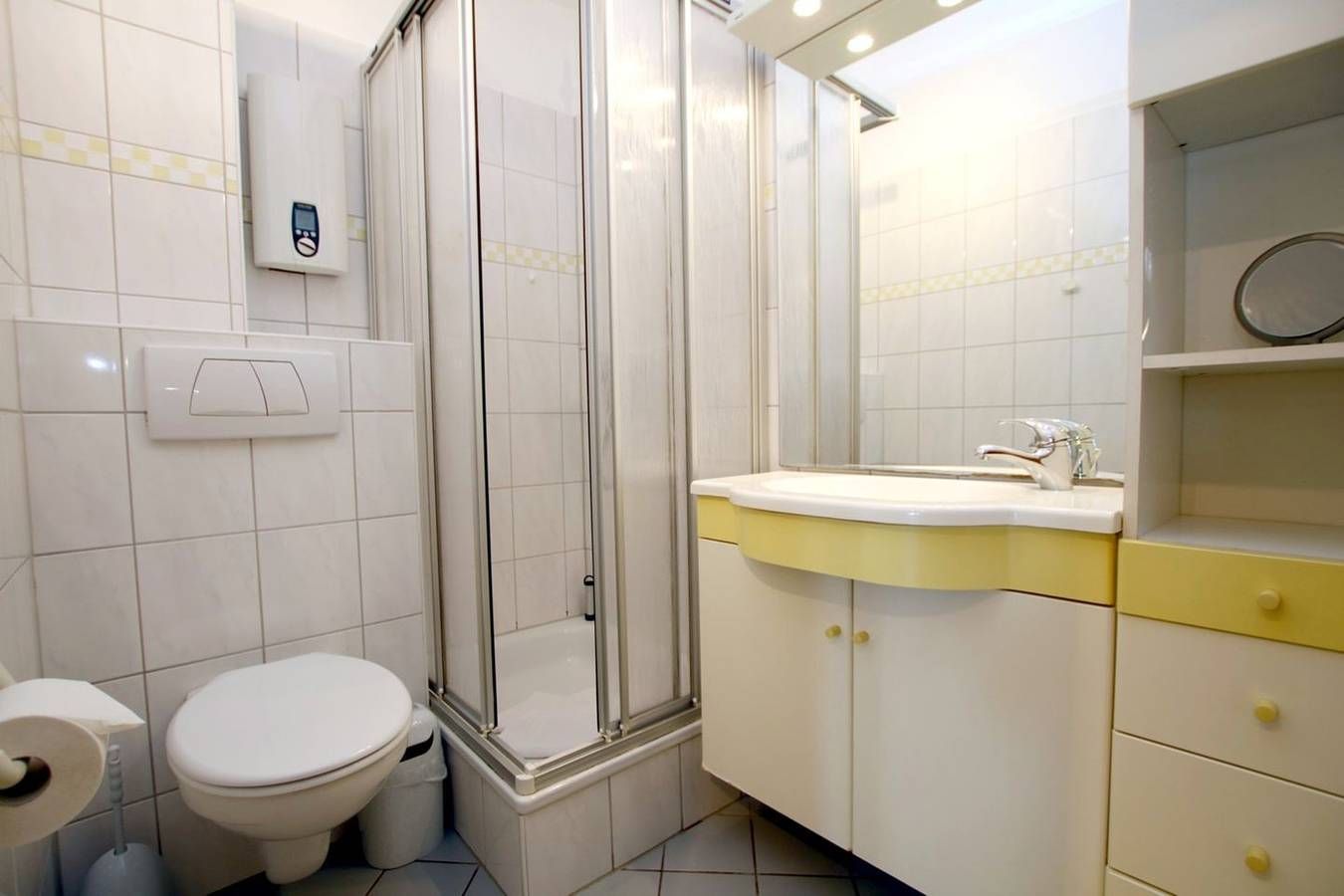Herzlich Willkommen in der Badestraße 80, Wohnung 1 in Wyk auf Föhr Die Nichtraucher- Ferienwohnung in Wyk auf Föhr im "GOTING HUS" verfügt über ca. 40 m² Wohnfläche und einen Ostbalkon. Die 2- Zimmer der Wohnung liegen in der Hochparterre. Das kleine Schlafzimmer ist mit 2 Einzelbetten (90 x 200 cm) und einem Kleiderschrank ausgestattet. Im WOHNZIMMER steht eine Sitzgarnitur mit Couchtisch. Das Sofa lässt sich als Schlafcouch ausziehen. Ebenfalls finden Sie hier einen Esstisch mit 3 Stühlen und eine KÜCHENZEILE mit Herd, Backofen und Kühlschrank mit kl. Gefrierfach. Hier haben Sie auch direkten Zugang zum Balkon mit Stühlen und Tisch. Die Wohnung verfügt über einen W-LAN Internetanschluss. Das Badezimmer ist ausgestattet mit Dusche/WC und einer Waschmaschine. Die ganze Wohnung ist mit Fliesen ausgelegt. Ihre Fahrräder können Sie direkt vor dem Haus abstellen (Fahrradständer). Parkmöglichkeiten sind an der Straße. Zum Zentrum, Strand, Kurmittelhaus und Wellenbad sind es ca. 10 Minuten Fußweg.