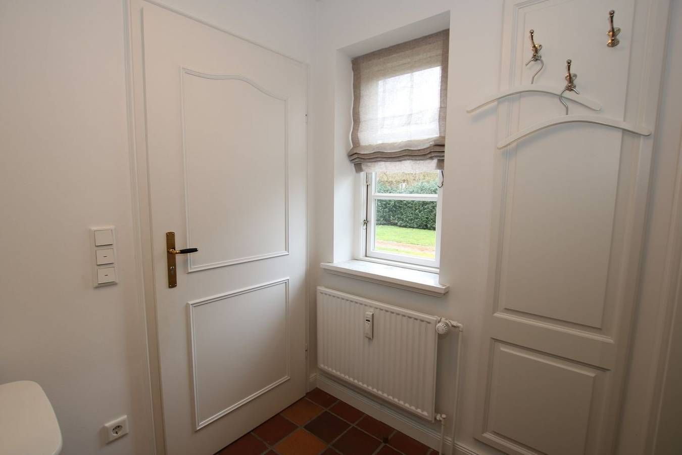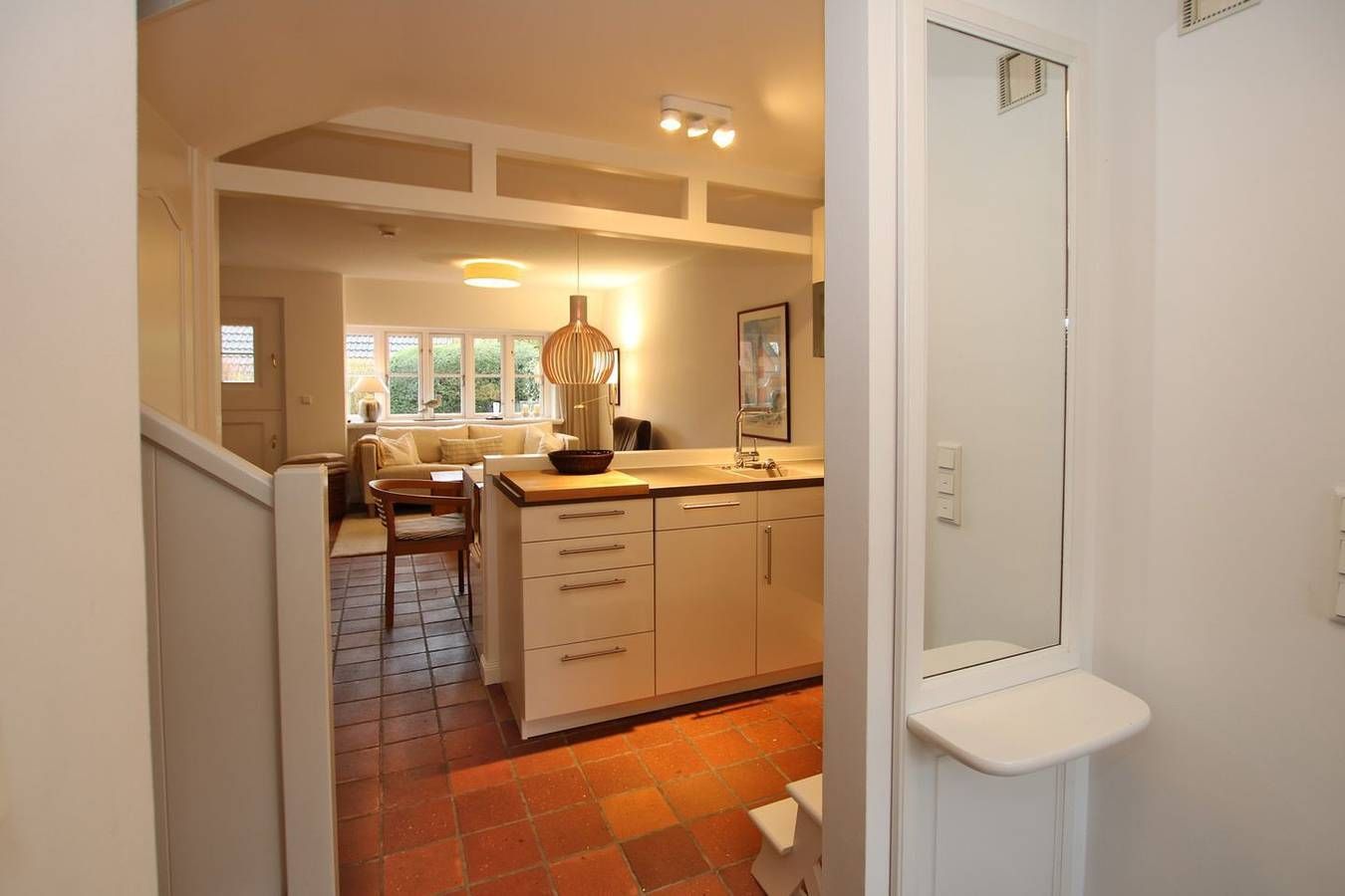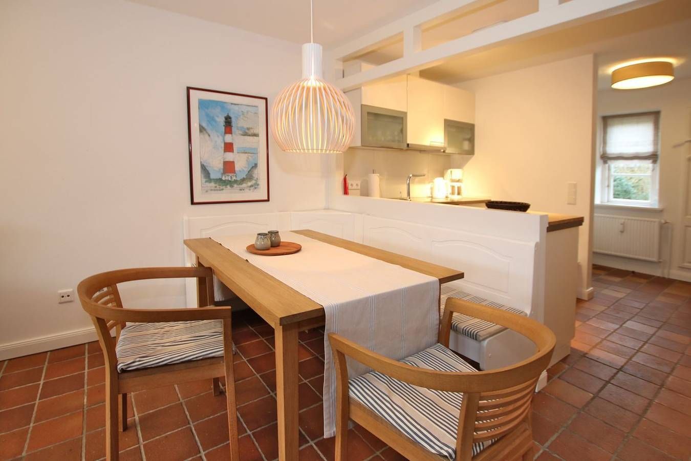 Ferienwohnung in Wrixum auf Föhr, Ohl Dörp 22 Pastoratshof, Haus 7: Gemütliche 3-Zimmer-Nichtraucher -Wohnung in einem Reetdachhaus. WOHNZIMMER: mit 3er Couch und 1 Sessel, Kachelofen. KÜCHENBEREICH: Komplett ausgestattet mit Essplatz. Gäste WC im EG. Im 1 OG befindet sich das BAD 2 mit Dusche/WC mit Zugang nur durch das SCHLAFZIMMER 1: Doppelbett (1,60 x 2m) und Einbauschränke. SCHLAFZIMMER 2 mit 1 Einzelbett und kleinem Einbauschrank. Im EG liegen Fliesen und im OG Sisalteppich. Das Zentrum vom Wyk erreichen Sie in ca. 20 - 30 Min. Fußweg. Zum Strand sind es mit dem Fahrrad ca. 10 - 15 Minuten. Ein Bäcker ist in der Nachbarschaft. Parkplatz am Haus. Eine E-Ladestation für 2 Autos befindet sich in ca. 100 m entfernt an der Marsch. Die Wohnung wurde mit sehr viel Liebe zum Detail und hochwertig ausgestattet und bietet mit der Terrasse und dem Garten viel Platz zum Wohlfühlen und Entspannen. Waschmaschine und Trockner zur gemeinschaftlichen Nutzung auf Münzbasis.