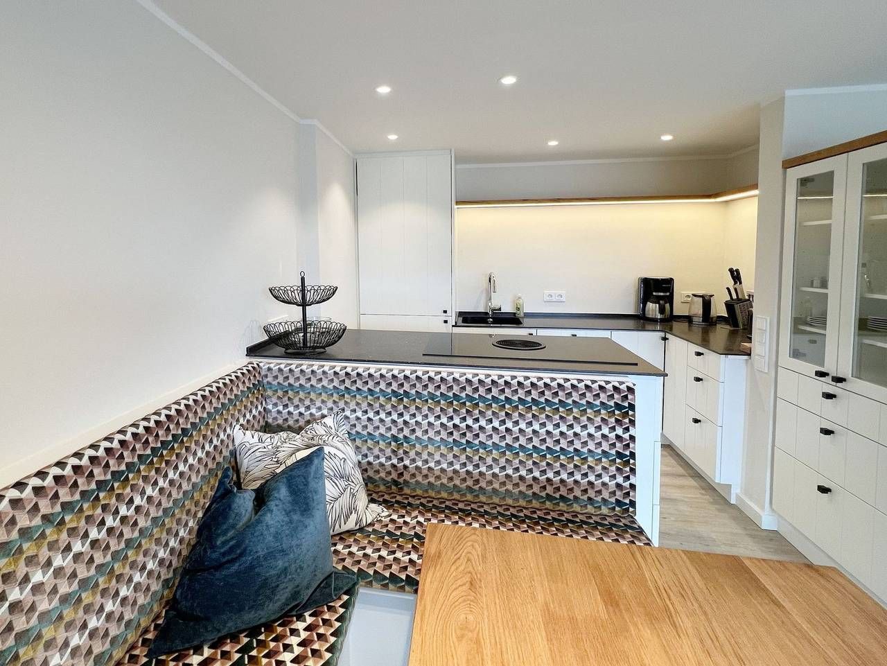 Im Haus Käpt'n Christiansen bieten wir Ihnen ab sofort die Ferienwohnung Johanna in bester Lage an, nur wenige Meter vom Strandübergang und der Innenstadt entfernt. Wohnzimmer mit Loungeartiger Couch, maßgefertigte Essecke, Offene Küche ( mit Bora-Kochfeld, Backofen, Geschirrspüler, Kühlschrank mit Gefrierfach ). Von hier aus betreten Sie den Balkon in südlicher Ausrichtung. Modernes Duschbad, mit WC und Waschbecken Schlafzimmer mit Boxspring-Bett ( 180x200 cm ) und zweitem TV Hochwertige Tischlereinbauten in der Wohnung runden das positive Gesamtbild ab. Ein PKW-Stellplatz gehört leider nicht zur Wohnung, aber Sie können gebührenpflichtig quasi vor der Tür ( ab EUR 8,- / Tag ) Ihr Fahrzeug abstellen. [nbsp]