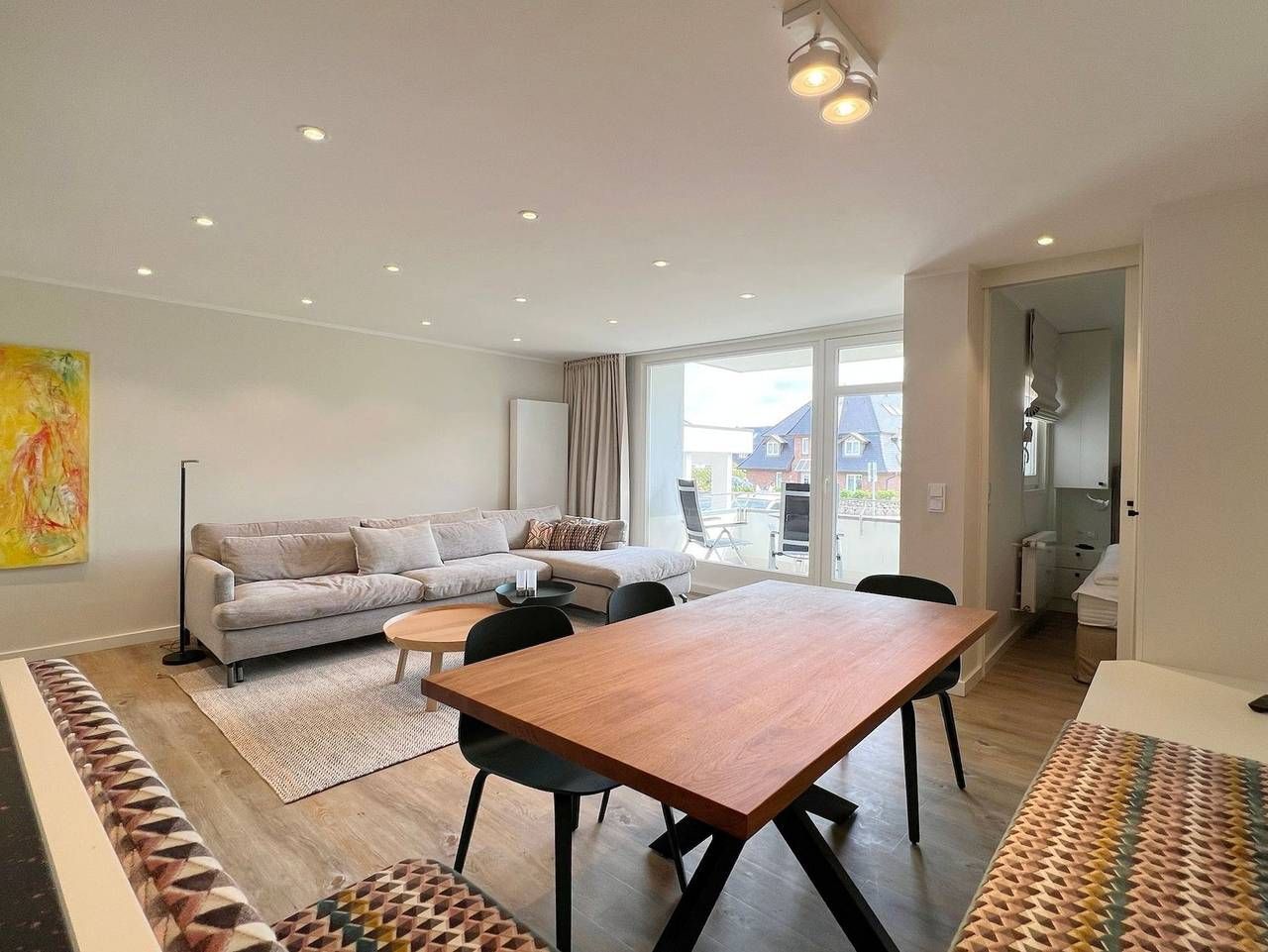 Im Haus Käpt'n Christiansen bieten wir Ihnen ab sofort die Ferienwohnung Johanna in bester Lage an, nur wenige Meter vom Strandübergang und der Innenstadt entfernt. Wohnzimmer mit Loungeartiger Couch, maßgefertigte Essecke,...