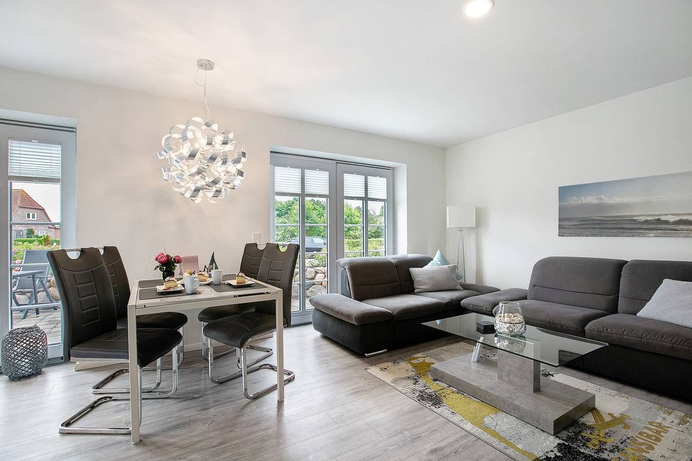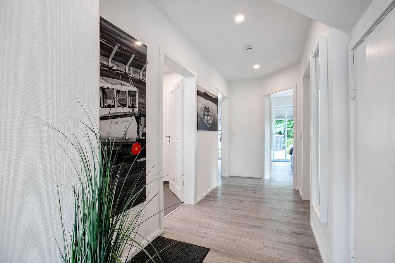 Die Käptn´s Suite befindet sich im Erdgeschoss und bietet auf ca. 83 qm Wohnfläche eine luxuriös - gemütliche Atmosphäre mit Kamin-Ofen und Infrarotsauna. Schlafen und Wohnen direkt unter Reet mit einem unmittelbaren Ausgang in einen kleinen Garten mit Friesenwallumzäunung und mit Sonnenoption bis in die Abendstunden. Zur Ausstattung gehören daher neben einem Stranddkorb und Liegen auch Sitzgelegenheiten für vier Personen, sowie ein Elektrogrill. Außerdem findet sich neben dem Haus ein abschließbarer Fahrradschuppen, sowie eine Wallbox für E-Autos. Die Gäste dieses Ferienhauses haben kostenlosen Zugang zu einer Infrarotsauna. Die Unterkunft verfügt über einen Abstellraum für Motorrad und Fahrrad in einem abschließbaren Schuppen. Der erste Vorrat an Brennholz für den Kamin wird auf der Unterkunft kostenlos zur Verfügung gestellt. Ein Parkplatz ist auf dem Grundstück vorhanden, und ein zusätzlicher kostenloser Parkplatz ist in der Gegend vorhanden.