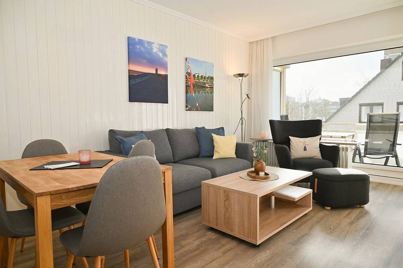 Herzlich Willkommen in Ihrem neuen Urlaubsdomizil "Knütt"! Verbringen Sie erholsame Tage in unserer gemütlichen 2-Raum-Ferienwohnung „Knütt“ im 1. Obergeschoss. Die Wohnung bietet einen offenen Wohn-, Küchen- und Essbereich, der eine helle und freundliche Atmosphäre schafft. Im Schlafzimmer steht ein bequemes Doppelbett zur Verfügung, und das Schlafsofa im Wohnbereich bietet Platz für eine weitere Person – ideal für kleine Familien oder Paare mit Begleitung. Genießen Sie sonnige Stunden auf dem großen Südbalkon – dank Markise auch angenehm im Schatten. Alle Fenster sind mit Außenjalousien ausgestattet, die zusätzlichen Komfort und Privatsphäre bieten. Das modern eingerichtete Badezimmer verfügt über eine Handtuchheizung und sorgt für ein angenehmes Wohlfühlambiente. Zur Wohnung gehören ein eigener PKW-Stellplatz sowie eine Fahrradabstellmöglichkeit (nicht abgeschlossen). Wir freuen uns darauf, Sie als unsere Gäste in der Ferienwohnung „Knütt“ begrüßen zu dürfen!