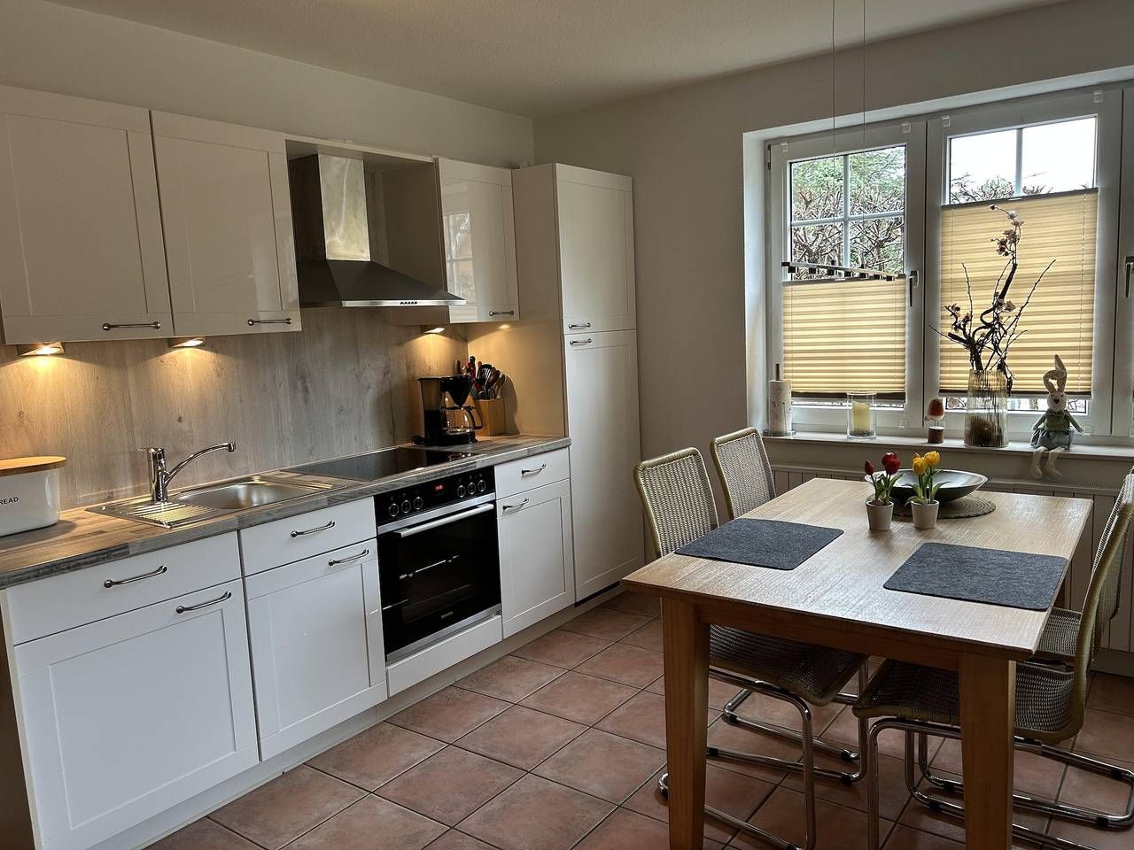 Wohnraum/Schlafraum: Schrankwand mit Schrankdoppelbett (1,40x2,00 m), Lederecksofa, Stereoanlage, Farb-TV m. Empfang der digitalen Sender u. 1 USB Anschluss. Küchenzeile mit Geschirrspüler, Mikrowelle, Herd mit Backofen, Toaster, Kaffeemaschine, Kaffeepadmaschine u. Kaffeekapselmaschine(Tchibo). Esstisch mit 4 Stühlen. Boden gefliest! Schlafraum: Doppelbett mit sehr guten Matratzen und verstellbaren Lattenrosten. Sideboard mit 4 Schubladen. Kleiderstange. Nachtischlampen mit Touchfunktion und USB Anschluss. Bodenbelag: Designer Bohlen Bad: Dusche m. Glastrennwand, WC, Spiegelschrank Haartrockner, Außenfenster. Terrasse mit Strandkorb und Gartenmöbeln. Alle Räume sind gefliest bis auf den Schlafraum(Designer Bohlen). WLAN, Bügelbrett u. Bügeleisen, Hochstuhl u. Babybett sind vorhanden. Allergikerfreundlich. Keine Haustiere!! Nichtraucherwohnung!! Bettwäsche kann gegen eine Gebühr gebucht werden. Gemütliche Ferienwohnung in einer kleinen Friesenanlage mit 10 Wohneinheiten im Ortsteil Ording, nah am Deich (ca. 2 Gehminuten) und in der Nähe des Kurzentrums St. Peter-Bad. Sie erreichen das Zentrum über ein Wald-Dünengebiet. Die Lage ist optimal, ruhig und doch zentral. Im Strandkorb auf unserer schönen südwest Terrasse können Sie auch bei Wind die Sonne genießen.Selbstverständlich stehen Ihnen auch Gartenmöbel sowie Auflagen zur Verfügung. Am Haus befinden sich ein PKW-Stellplatz und ein Fahrradunterstand. Unsere Spiel- und Liegewiese lädt zum Sonnen und zum Ballspielen der Kinder ein. Besonderheiten: Alle Räume sind gefliest oder mit Designer Bohlen ausgelegt. Die Ferienwohnung ist hell, freundlich und modern eingerichtet. Wohnzimmer: - Schrankwand mit Doppelbett 140x200cm, Glasvitrine, Bücherregal, 2 Kleiderschränke . Das Bett kann ohne ein Verrücken von Möbeln ausgeklappt werdem, da genug Platz! - Ledersitzrundecke - Smart TV - Stereoanlage m. CD-Player, Bluetooth, USB-Anschluss, Aufladung eines USB-Gerätes . eines IPhone/IPad usw.möglich - WLAN kostenlos - Telefon kostenlos für alle Gespräche ins deutsche Festnetz - Esstisch mit 4 Stühlen - Küchenzeile mit: . Geschirrspüler . Mikrowelle . Wasserkocher . Kaffeemaschine normal, u. Tchibo Kaffeekapselmaschine . Toaster . Vollherd . reichlich Geschirr Schlafzimmer weiß: - Doppelbett mit verstellbaren Lattenrosten - Sideboard mit 4 Schubladen - Kleiderstange - Nachtischlampen mit Touchfunktion mit USB Anschluß Badezimmer mit Außenfenster: - Dusche mit Glasduschkabine - WC - Spiegelschrank - Regal Sonstige Ausstattung: - Babybett (Hauk) - Kinderhochstuhl - Haartrockner - Bügeleisen - Bügelbrett Wäsche ist buchbar: Bettwäche 14€/P. und 2Handtücher 1groß+1normal 4€/P. leihbar (Wäschepaket 2 Handtücher + 1x Bettwäsche = 18€/Person)! Wenn Wäsche gebucht wird, gehören immer Geschirrtücher und 1 Duschmatte automatisch dazu. Zum Übernachtungspreis berechnen wir zusätzlich eine Energiezulage von 10€ pro Nacht, da wir mit Strom heizen (sauberste und teuerste Art zu heizen) und die Preise sich verdoppelt haben. Wir hoffen, dass wir mit dieser Erhöhung die Energiekosten auffangen können. Weiterhin können Sie ein Wäschepaket (1xBettwäsche, 2 Handtücher normal, 1 großes Duschhandtuch) für 20€ pro Person buchen oder Sie wählen nur Bettwäsche 14€ oder nur Handtücher 2€ je Handtuch. Anreise ab 15:00 Uhr und Abreise bis 10:00 Uhr