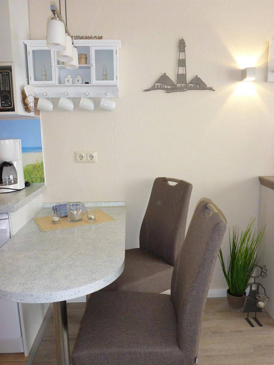 Ferienwohnung Leuchtturm: Die modern und gemütlich eingerichtete Wohnung (WLAN inklusive) befindet sich in der 8.Etage der Fritz-Wischer-Straße 7. Sie ist 26m² groß und hat ein kombiniertes Wohn-/Schlafzimmer mit Kochnische, Dusche+WC, Flur und einen Abstellraum. Als Ferienwohnung ist sie für zwei 2 Personen bestens geeignet. Das Haus hat einen Aufzug und einen Waschkeller der für Sie mit €-Münzen zu bedienende Waschmaschinen und Trockner bereithält. Die Wohnung ist eine Nichtraucherwohnung, Tiere sind nicht gestattet. Ihre mitgebrachten Fahrräder können im eigenen Keller abgestellt werden. Bettwäsche und Handtücher sind eigenständig mitzubringen. Die Wohnung ist wie folgt ausgestattet: Küche Geschirrspüler, E-Herd, Kühlschrank, Minibackofen, Kaffeemaschine, Wasserkocher, Toaster, Eierkocher, Geschirr, Gläser, Töpfe Wohnzimmer WLAN & Kabelfernsehen Bad WC, Waschbecken, Dusche, Fön Abstellraum Für Schuhe, Koffer, Regenjacken, ... Heizung Die Wohnung wird elektrisch beheizt, kein Nachtstrom. Weiterhin ist die Nutzung einer Münz-Waschmaschine/Trockner innerhalb des Gebäudes möglich. Ferienwohnung Leuchtturm, Meerblick und WLAN inklusive!!! Die Wohnung liegt in einer Sackgasse im Ortsteil Bad und ist daher sehr ruhig gelegen. Die modern und gemütlich eingerichtete Wohnung befindet sich in der 8.Etage der Fritz-Wischer-Straße 7. Sie ist 26m² groß und hat ein kombiniertes Wohn-/Schlafzimmer mit Kochnische, Dusche+WC, Flur und einen Abstellraum. Mit einer traumhaften Aussicht über die Salzwiesen, das Meer und den Strand mit den für St. Peter Ording typischen Pfahlbauten kann man es sich hier gut gehen lassen. Nur in wenige Gehminuten erreichen Sie den Kern des Ortsteil Bad und die Seebrücke. Zur Wohnung gehört ein fester PKW Stellplatz. Das Haus hat einen Aufzug und einen Waschkeller der für Sie mit €-Münzen zu bedienende Waschmaschinen und Trockner bereithält.