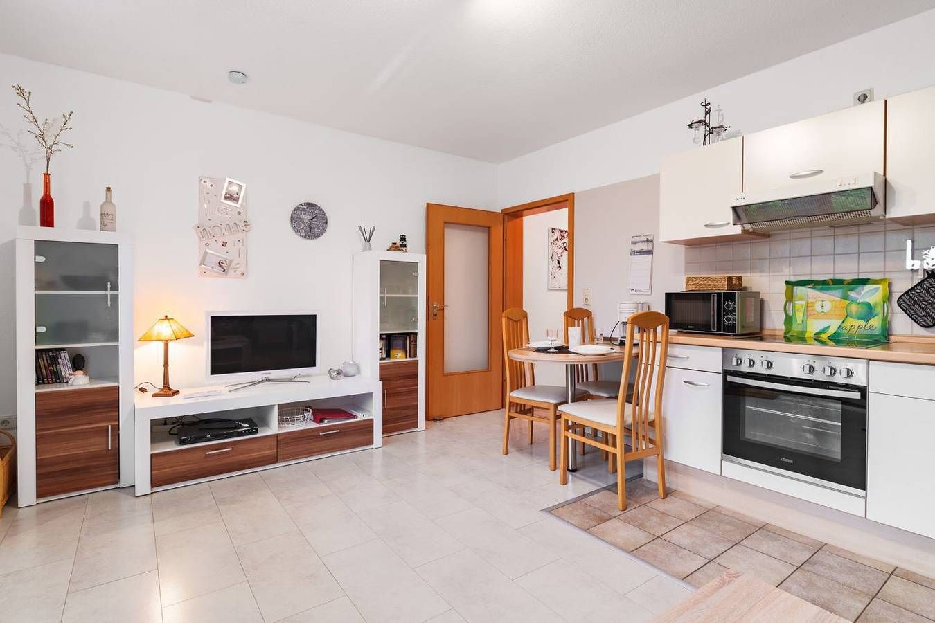 Zentrumsnahe Ferienwohnung im Erdgeschoss Möchten Sie Büsum erleben, den Pulsschlag dieses kleinen Ortes fühlen? Wo könnten Sie das besser, als mitten im Herzen von Büsum. Diese gemütliche Fewo mit 2 Räumen befindet sich am Anfang der Fußgängerzone und ist dennoch ruhig gelegen. Sie besitzt einen Parkplatz fast vor der Tür. Restaurants, Supermarkt, Bäcker, Apotheke, Bank usw. sind um die Ecke und nur wenige Meter entfernt. Zum Hafen, Wattlaufen und Baden am Hauptstrand und auch ins Wellenbad sind es nur wenige Gehminuten. Und wenn Sie mal genug vom Treiben am Strand und dem Leben in der Fußgängerzone haben, können Sie sich an Ihren Ruhepohl zurückziehen. Denn Ihre große in südöstlicher Lage gelegene Terrasse lädt Sie dazu ein, die Sonne in vollen Zügen zu genießen. Das Appartement bietet Ihnen Ruhe und Komfort, den Sie sich verdient haben. Hier finden Sie alles, was Sie zu einem entspannten Urlaub benötigen. Nichtraucher, bitte keine Haustiere! Wohnzimmer: Sofa, Couchtisch, Ruhesessel mit Hocker, Kabel-TV (Flachbild), DVD-Player, Stereoanlage mit CD-Player, Esstisch mit 4 Stühlen, Spiele, Bücher, möblierte Südterrasse Küche: Küchenzeile im Wohnzimmer, Kühlschrank mit Gefrierfach, Mikrowelle, Ceranfeld, Backofen, Abluft, Kaffeemaschine, Wasserkocher, Toaster, Eierkocher Schlafzimmer: Doppelbett, Nachtkonsolen, 2 Lampen, Kleiderschrank, Spiegel, Radiowecker, TV, Außenjalousie Bad: Duschbad, WC, Fußbodenerwärmung, Spiegelschrank, Fenster, Außenjalousie, Föhn Haus & Service: Außenjalousien, 1 kostenfreier Parkplatz, Bügeleisen, Wäscheständer, Münzwaschmaschine und -trockner im Hause, Fahrradraum im Keller, W-LAN, Wäsche optional dazu buchbar Für einen last Minute Urlaub in dieser Unterkunft melden Sie sich bitte telefonisch bei uns.