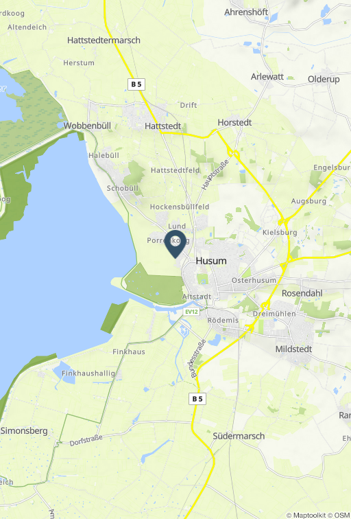 Herzlich willkommen auf dem Maashof: gönnen Sie sich Ihre Auszeit am Stadtrand von Husum mit Blick über die Felder bis zum Husumer Dockkoog. Lage Die traumhafte Lage in einer ruhigen Wohngegend mit direktem Blick über Felder bis zum nahe gelegenen Deich lässt Sie bereits bei der Ankunft tief durchatmen. Die Husumer Innenstadt mit ihren vielfältigen Einkaufsmöglichkeiten und Restaurants erreichen Sie in nur 2 km. Ausstattung Die Studiowohnung liegt im 2. Obergeschoss des Apartmenthauses "Maashof" und eignet sich besonders für Einzelreisende oder Paare. Der gemütliche Wohnraum bietet Ihnen eine Sitzecke mit TV und eine Pantryküche mit Glaskeramikherd (zwei Kochfelder), Kühlschrank, Kaffeemaschine und Wasserkocher. Im Schlafbereich steht Ihnen ein Doppelbett (180 x 200) für Ihren erholsamen Schlaf zur Verfügung. Ein weiteres Einzelbett und das Duschbad rundet das Bild ab. Genießen Sie den hervorragenden Blick aus dem Fenster über die Felder bis zum Meer. Ihre mitgebrachten Fahrräder können Sie sicher und geschützt in einer Scheune unterstellen. In einem Gemeinschaftsraum stehen Ihnen Waschmaschine und Trockner gegen Gebühr zur Verfügung. Auch für die Kleinen ist gesorgt: in einer kleinen Scheune können sie sich mit den Großen an der Tischtennisplatte oder aber am Kicker messen. Ansonsten laden die großen Grünflächen die Kleinen und Großen zum Toben und Fußballspielen ein. Die Besonderheiten In der Nichtraucher-Ferienwohnung stellen wir Ihnen gerne kostenfreies WLAN zur Verfügung. Direkt am Haus steht Ihnen ein Parkplatz zur Verfügung. Der Maashof mit seinen sechs Ferienwohnungen und -zimmern eignet sich auch hervorragend für Gruppenreisen oder für die große Familie. Eine Erstausstattung an Bettwäsche und Handtüchern wird bei dieser Unterkunft obligatorisch hinzugebucht und ist bereits im Endpreis enthalten. Zusätzliche Wäschepakete können in den optionalen Leistungen hinzugebucht werden.