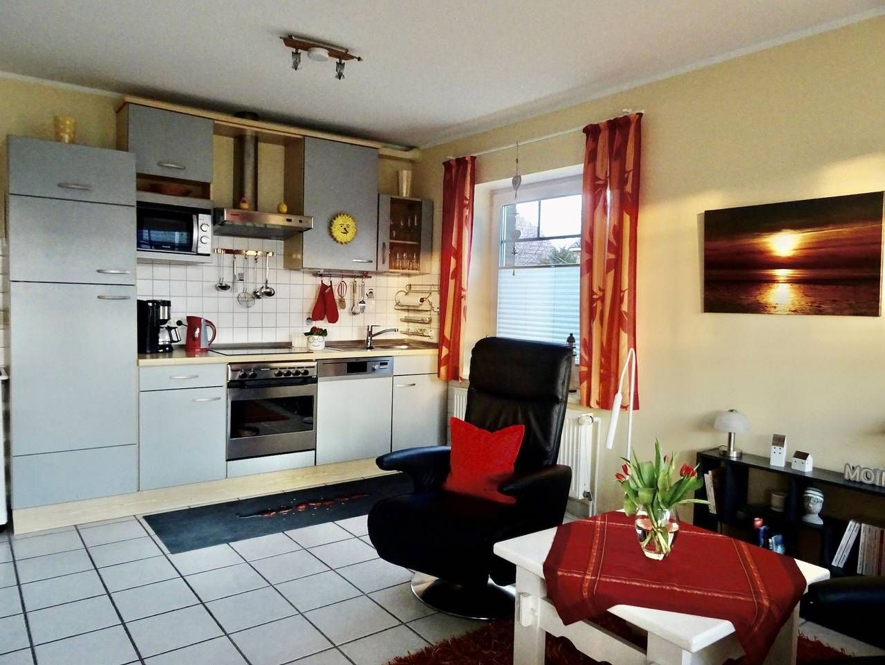 Wichtige Information für Urlauber Friedrichskoog steht für naturnahen Urlaub direkt an der Nordsee. Damit Einheimische und Gäste auch in Zukunft sicher sind, wird der Deich verstärkt. In dem Zusammenhang wird zur Zeit der Badestrand bis Herbst 2025 umfassend modernisiert. Leider ist der Badestrand und auch der Deich in Friedrichskoog-Spitze voraussichtlich bis April 2026 nicht nutzbar. Bitte informieren Sie sich auf der Website von Friedrichskoog, dort werden Sie zur Baustellen-Seite weitergeleitet oder direkt beim Tourismus-Service Friedrichskoog. Die Baumaßnahmen im Trischendiek Park (ehemals Kurpark) ist bereits abgeschlossen und der neu gestaltete Trischendiek Park kann von Jung und Alt wieder genutzt werden. Komfortable, gemütliche und sehr gepflegte 55 qm-Ferienwohnung mit niveauvoller Ausstattung für 2 Personen. Die Wohnung wurde frisch renoviert. 2 Zimmer, komfortable Küchenzeile u.a. mit Geschirrspüler, Mikrowelle und Kaffeemaschine, SAT-Flachbild-TV, Sereoanlage mit CD-Player, USB- und I-phone-Anschluss, WLan-Anschluss. Gemütliche Terrasse in S/W-Lage mit Strandkorb. Kostenfreies WLan Zentrale Ortslage in Friedrichskoog-Spitze. Restaurants sind in wenigen Minuten zu erreichen. Die Klinik Nordseedeich befindet sich in unmittelbarer Nähe. Circa 150 m und Sie stehen auf dem Deich und das Wattenmeer liegt vor Ihnen! • Gemütliche und komfortable Ferienwohnung in bester Lage in Friedrichskoog-Spitze, nur wenige Gehminuten von der Nordsee entfernt. • Erdgeschoßwohnung mit Terrasse, separater Eingang • komb. Wohnzimmer mit integrierter Einbauküche, komplett mit Kühl- Gefrierkombination, Geschirrspüler, Mikrowelle, Kaffeemaschine, Ceran-Kochfeld und Backofen • Wohnzimmer mit neuen Sitzmöbeln und schöner Essecke • Schlafraum mit Doppelbett (180 x 200 cm) • Dusche/WC (mit Föhn) • SAT-Flachbild-TV, Sereoanlage mit CD-Player, USB- und i-phone-Anschluss • Fußbodenheizung in allen Räumen • Süd-Terrasse mit Strandkorb und Holz-Gartenmöbel, Grillen nicht gestattet • eigener PKW-Stellplatz • Außenrollläden • Gas-Zentralheizung • inklusive Bettwäsche und Handtücher als Erstausstattung. Zusätzliche Wäsche- und Handtücherpakete sind beim Tourismusservice Friedrichskoog gegen eine geringe Gebühr verfügbar. • Nichtraucherwohnung • Haustiere nicht erlaubt Inklusive der Verbrauchskosten.