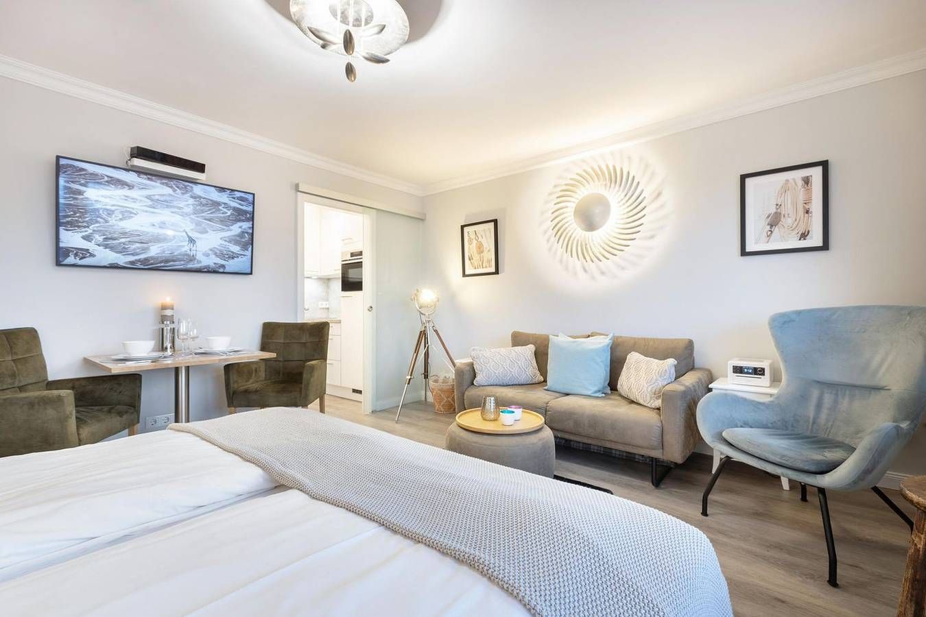 Ihr Urlaub mit Meerblick – stilvoll und entspannt Ideal für zwei Personen bietet diese moderne Ferienwohnung traumhafte Ausblicke auf die Nordsee – ganz bequem vom Sofa oder dem sonnigen Südbalkon aus. Freuen Sie sich auf erholsame Tage mit Meeresrauschen und Panorama inklusive! Wohlfühlatmosphäre trifft auf stilvolles Design Die Wohnung überzeugt durch ihre hochwertige, neue Einrichtung und moderne Ausstattung – hier fühlen Sie sich vom ersten Moment an wie zu Hause. Und das alles in unmittelbarer Strandnähe! Näher am Meer können Sie kaum wohnen – Meerblick garantiert. Erleben Sie unvergessliche Urlaubstage auf Sylt – die Wohnung Meerblick II lässt keine Wünsche offen. Ihr Feriendomizil im Detail: Der helle, offene Wohn- und Schlafbereich verfügt über ein gemütliches Sofa, einen stilvollen Essplatz sowie ein komfortables französisches Doppelbett (1,60 x 2,00 m). Das Highlight: der Südbalkon mit direktem Blick aufs Meer – den Sie sogar vom Sofa aus genießen können. Angrenzend befindet sich die separate, modern gestaltete Küche, ausgestattet mit allem, was Sie für einen entspannten Urlaub brauchen: ✔️Filterkaffeemaschine & Nespresso-Maschine ✔️Toaster, Wasserkocher, Eierkocher ✔️Cerankochfeld (4 Platten), Backofen mit Mikrowellenfunktion ✔️Geschirrspüler Im Badezimmer erwartet Sie eine komfortable Dusche sowie ein praktischer Schrank mit ausreichend Stauraum. Ein eigener PKW-Stellplatz befindet sich direkt hinter dem Haus.