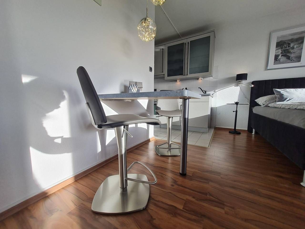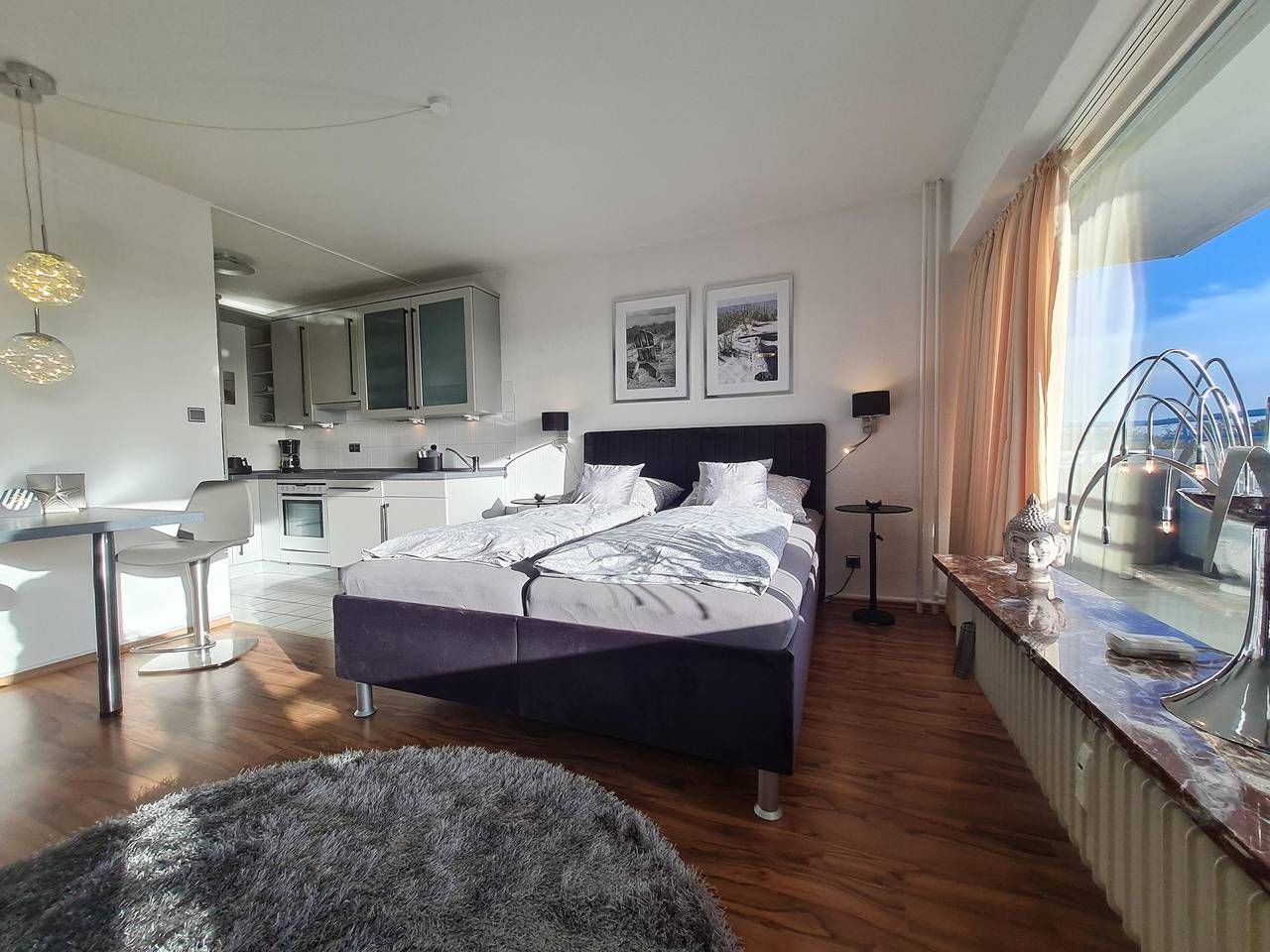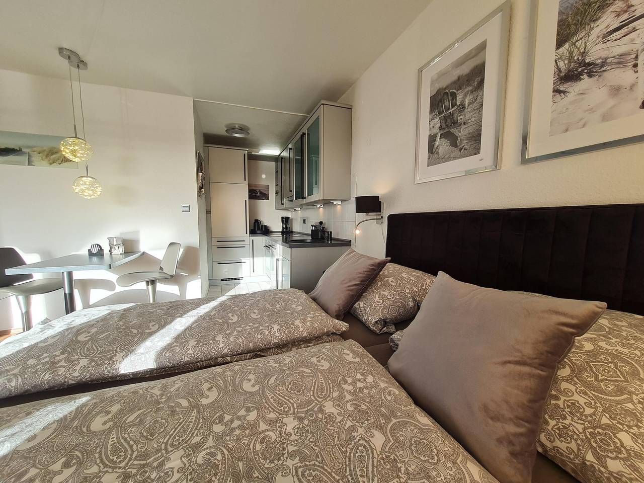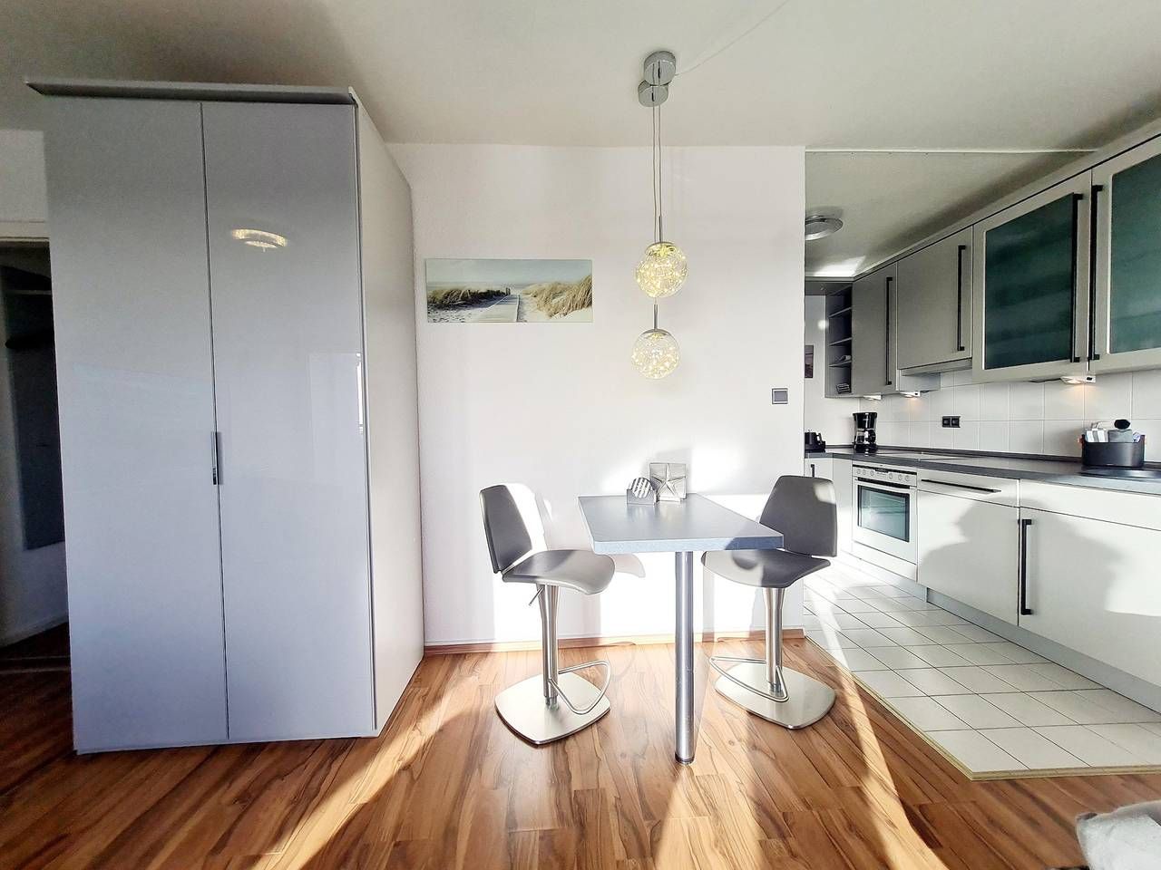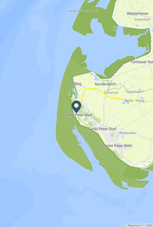 Das Appartement ist ca. 35 m2 gross, ideal für 1-2 Personen, und wurde zur Saison 2011 komplett renoviert und neu ausgestattet. Erleben Sie den Komfort eines schön ausgestatteten Appartements mit Wohnschlafraum und einem großen Balkon. Ein Handtuchpaket und Bettwäsche kann dazu gebucht werden. Der Blick vom vierten Stock auf die Nordsee und über das Nordseebad St. Peter-Ording ist wunderschön. Was ist schöner als ein Frühstück in der Morgensonne zu genießen - entweder auf dem eigenen Balkon oder in einem der umliegenden Cafes? Wenn Sie sich selbst verpflegen möchten, haben Sie dafür eine moderne Küchenzeile im Appartement, aber da Sie mitten im Zentrum von Bad St. Peter-Ording wohnen, ist die Auswahl an Restaurants und Cafes rundherum sehr vielfältig. Nur wenige Schritte entfernt ist die grosse Seebrücke mit der malerischen Promenade, die abends von Fackeln erleuchtet wird. Der Wald mit seinen Spazierwegen beginnt direkt hinterm Haus. Gegenüber vom Haus "Luv und Lee", also nur ein paar Meter entfernt, ist das Wellness-Zentrum von St. Peter-Ording und die Dünentherme mit der einmaligen Saunalandschaft. Zu meinem Kosmetik-Studio "Cordy" gehen Sie ebenfalls nur ein paar Schritte. Bei mir erhalten Sie Schönheit und Erholung! Herzlich Willkommen in der Ferienwohnung Meeresbrise. Es erwartet sie ein in 2022 komplett umgestaltetes Riviera Maison Appartement (vielen Dank an Claudia Ulmer). Das Haus Luv und Lee ist nur wenige Schritte von der grossen Seebrücke entfernt. Mit der malerischen Promenade, die abends von Fackeln erleuchtet wird. Der Wald mit seinen Spazierwegen beginnt direkt hinterm Haus. Gegenüber vom Haus "Luv und Lee", also nur ein paar Meter entfernt, ist das Wellness-Zentrum von St. Peter-Ording und die Dünen-Therme mit der einmaligen Saunalandschaft.