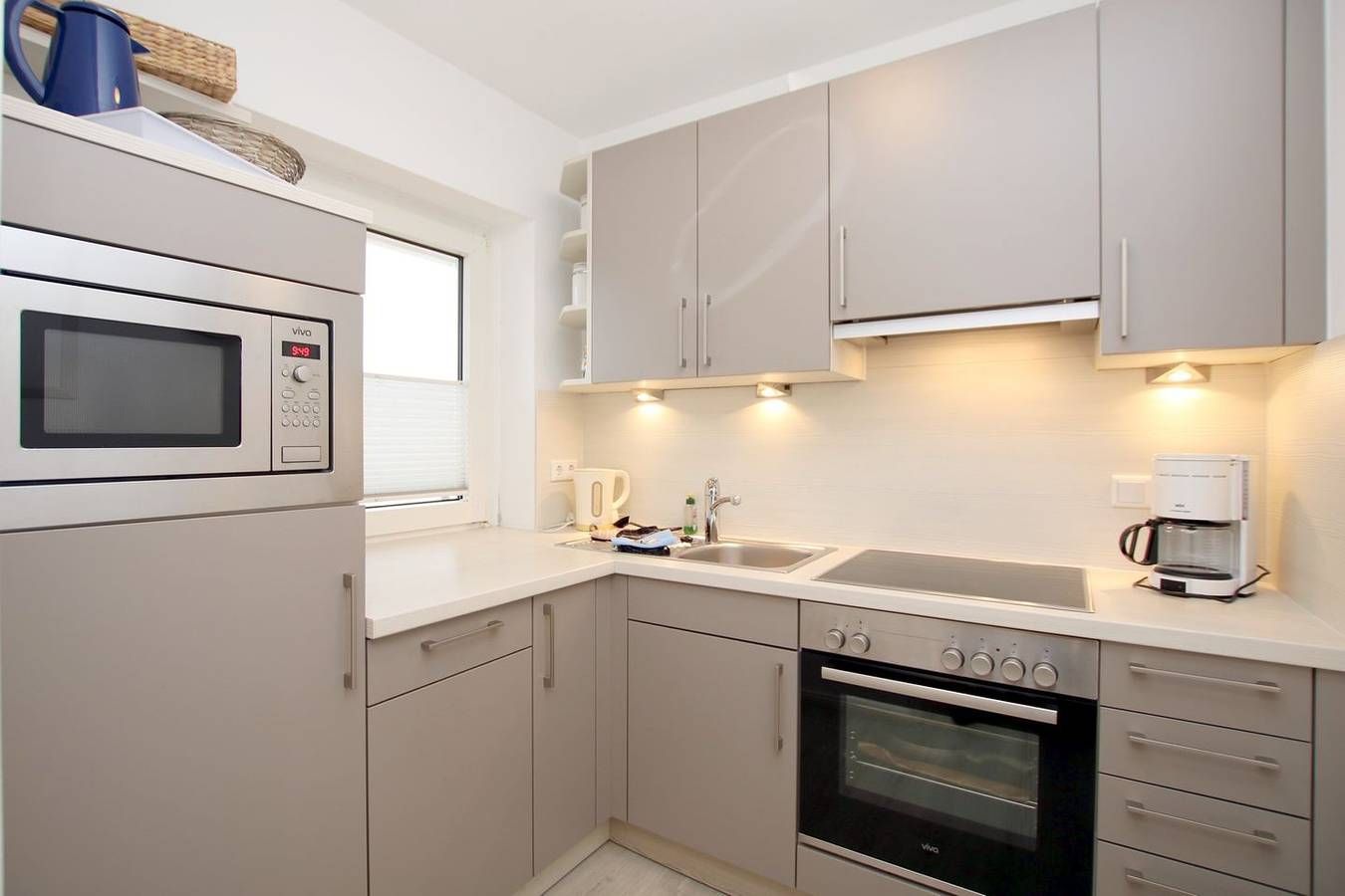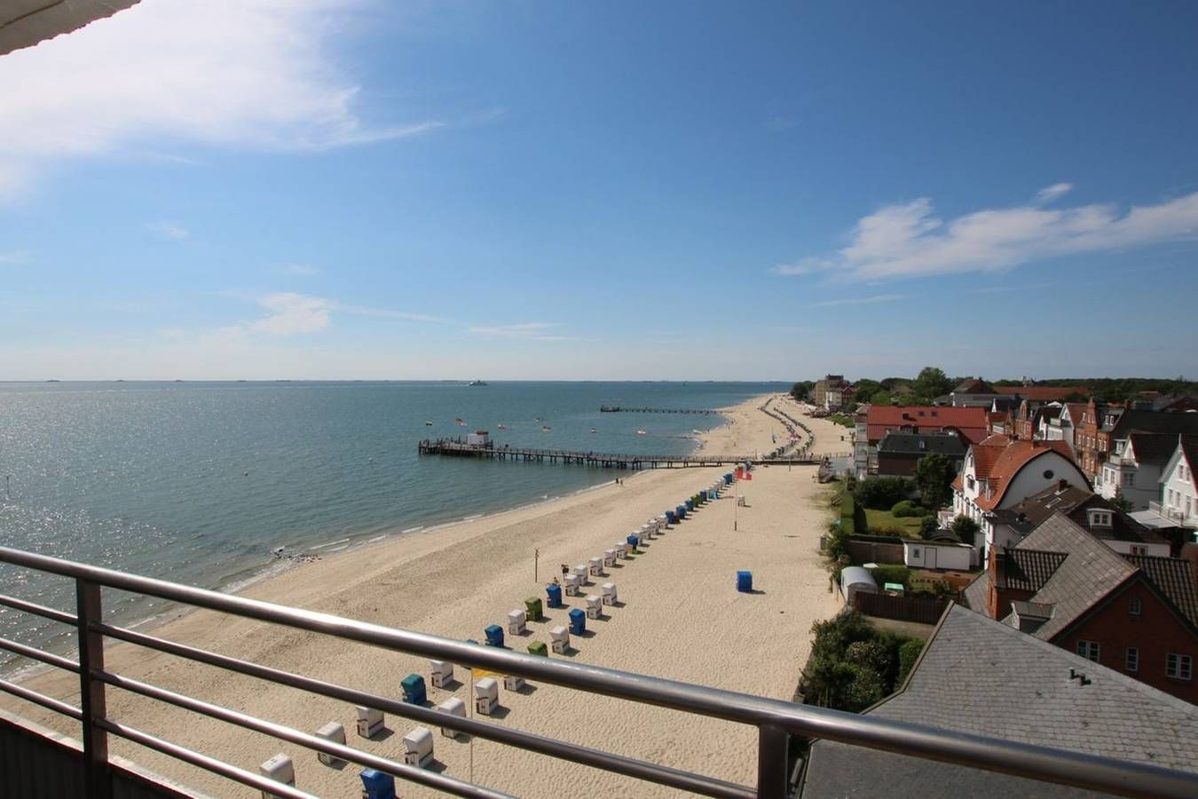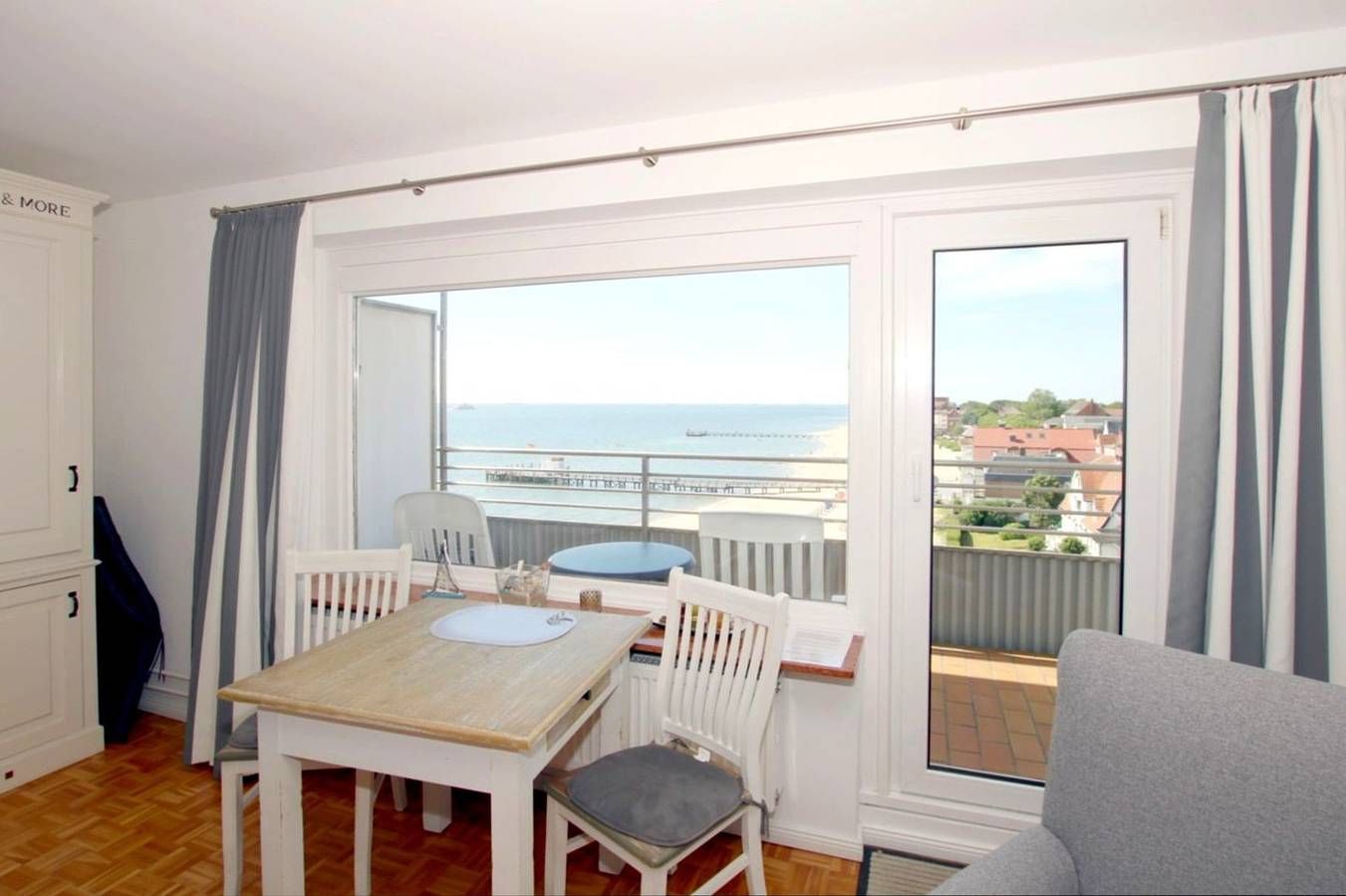 Moderne 1-Zimmer-Nichtraucherwohnung in der 6 Etage mit Meerblick und Südbalkon. Die Wohnung ist komplett renoviert und sehr geschmackvoll und modern eingerichtet. WOHNZIMMER: 2 Einzelbetten (0,90x2m) die auch zusammen stehen können, Couch und 1 Sessel, Esstisch mit 3 Stühlen. Separate Küche mit Vollausstattung BAD: Dusche/WC. Im Flur ist sehr viel Schrankplatz vorhanden. Ein Parkplatz steht nur zur Verfügung, wenn ein Platz frei ist, es gibt fürs Haus 6 Parkplätze. Fahrstuhl geht nur bis zur 5 Etage, 1 Etage muss übers Treppenhaus gegangen werden. Die Wohnung liegt in direkter Strandlage und hat einen sagenhaften Blick aufs Wasser und auf den Strand. Zum Wellenbad sind es ca. 10 bis 15 Minuten Fußweg. Im Keller des Hauses ist ein Fahrradabstellraum vorhanden. Sofern Platz ist, dürfen Sie dort Ihre Fahrräder unter stellen! Direkt gegenüber wird ein neues Gebäude errichtet. In diesem Zusammenhang kann es während der Bauphase zu Baulärm kommen. Mit der Fertigstellung wird bis Ende 2025 gerechnet.