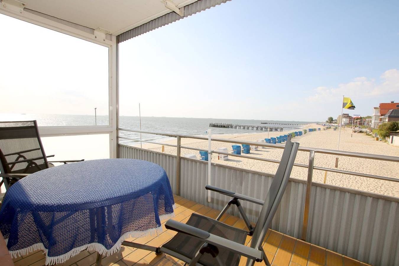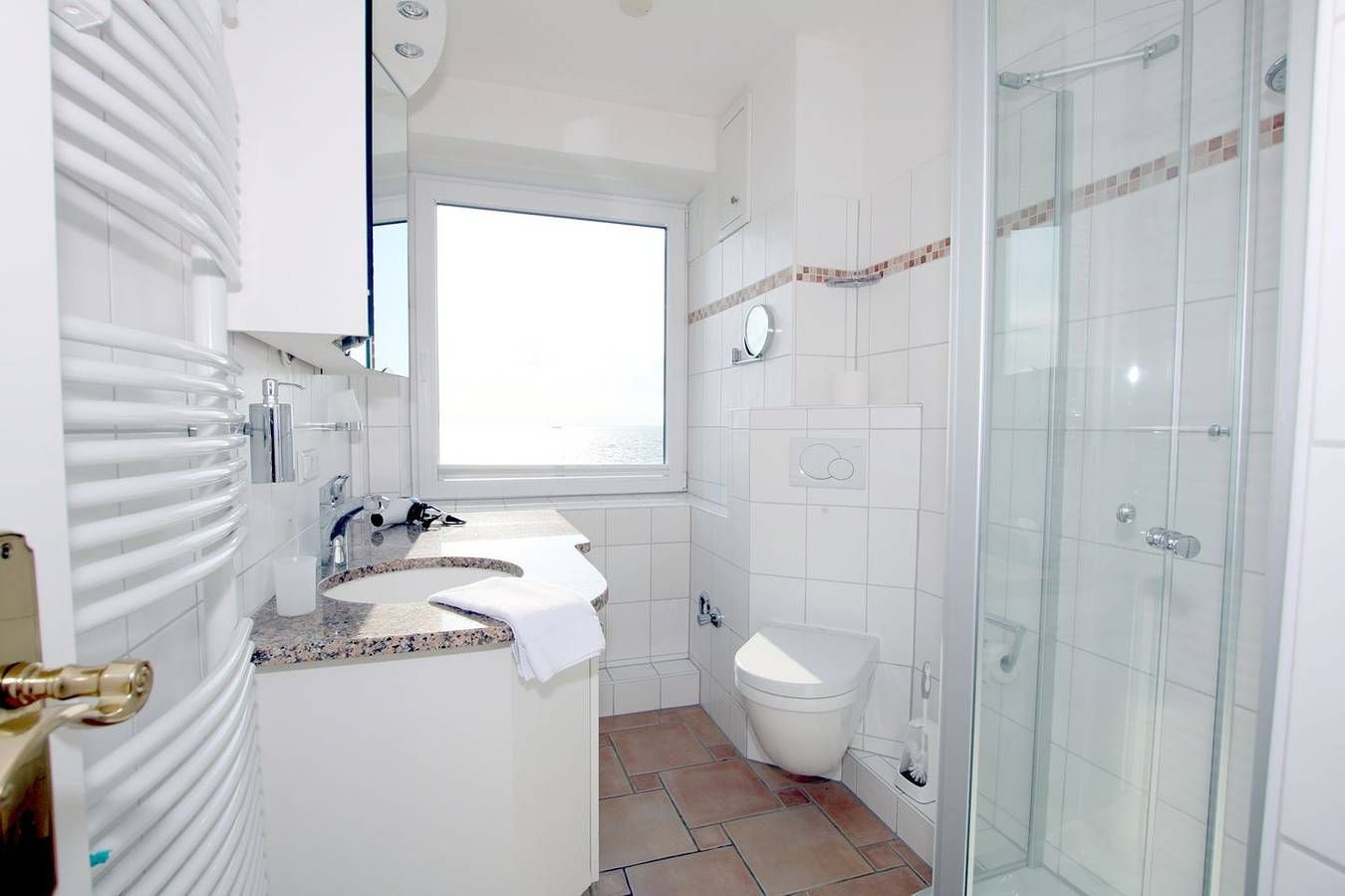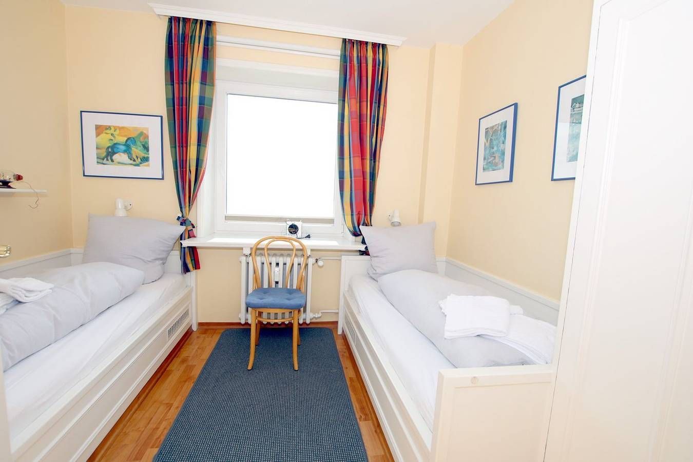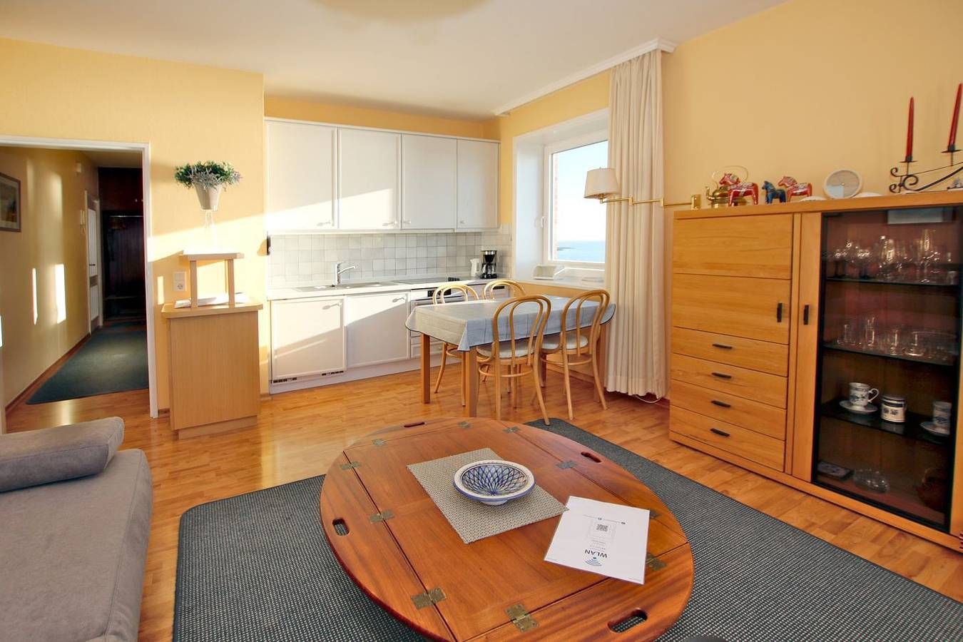 Ferienwohnung in Wyk auf Föhr, Königstraße 5, Wohnung 9, ca. 45 qm, 2-Zimmer-Nichtraucherwohnung in der 1. Etage mit herrlichem Meerblick aus 2 Zimmern. WOHNZIMMER: Doppelschlafcouch (1,60x2m) und 1 Sessel, Esstisch mit 4 Stühlen, Smart TV und Küchenzeile. SCHLAFZIMMER: 2 Einzelbetten und eingebaute Schränke. BAD: Dusche/WC/Waschmaschine und Trockner. Das Haus verfügt über einen Fahrstuhl. Ein Parkplatz steht nur zur Verfügung, wenn ein Platz frei ist, es gibt fürs Haus 6 Parkplätze. Die Wohnung liegt zentral in der Fußgängerzone und hat einen sagenhaften Blick aufs Wasser und auf den Strand. Zum Wellenbad sind es ca. 10 bis 15 Minuten Fußweg. Im Keller des Hauses ist ein Fahrradabstellraum vorhanden. Sofern Platz ist, dürfen Sie dort Ihre Fahrräder unter stellen!