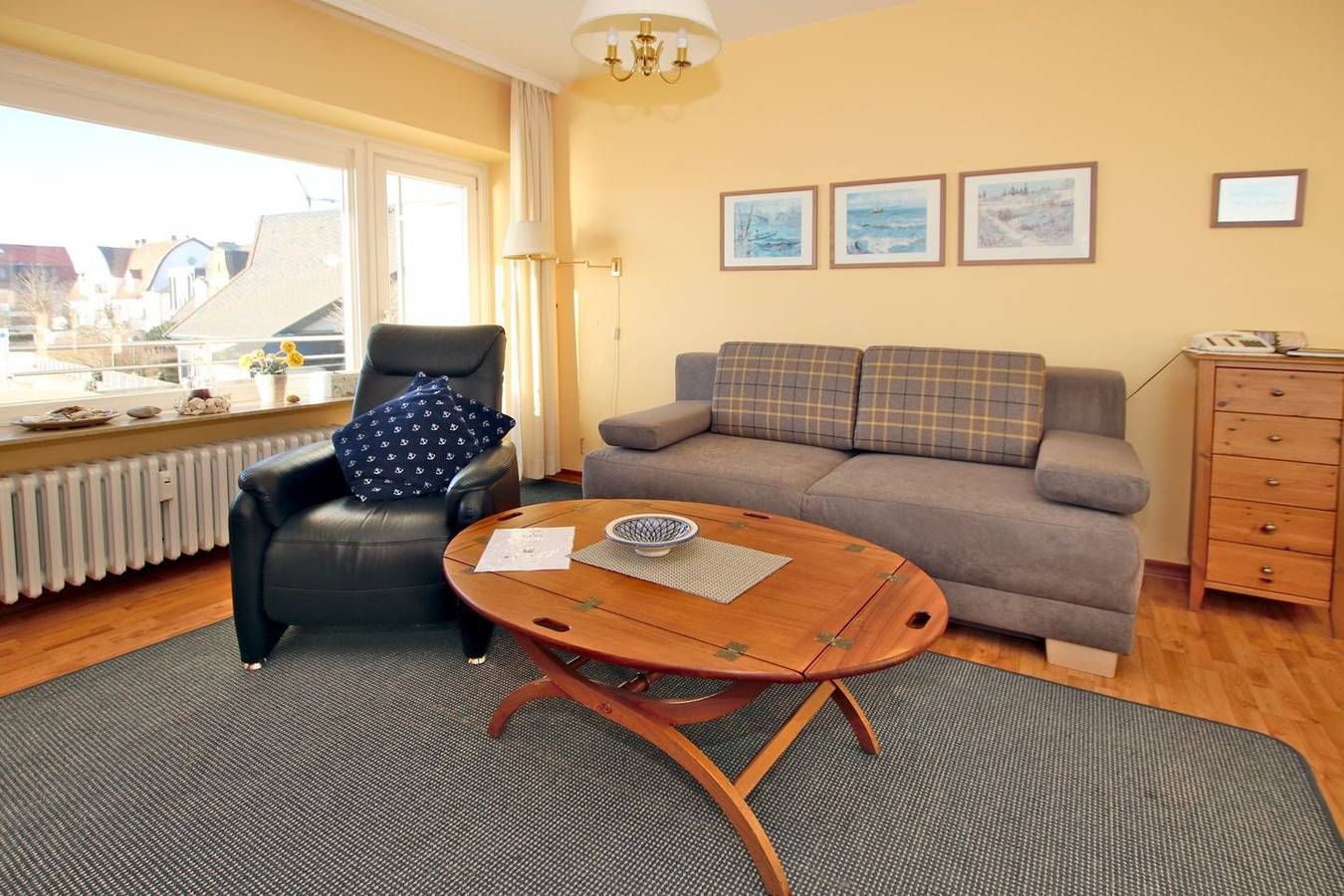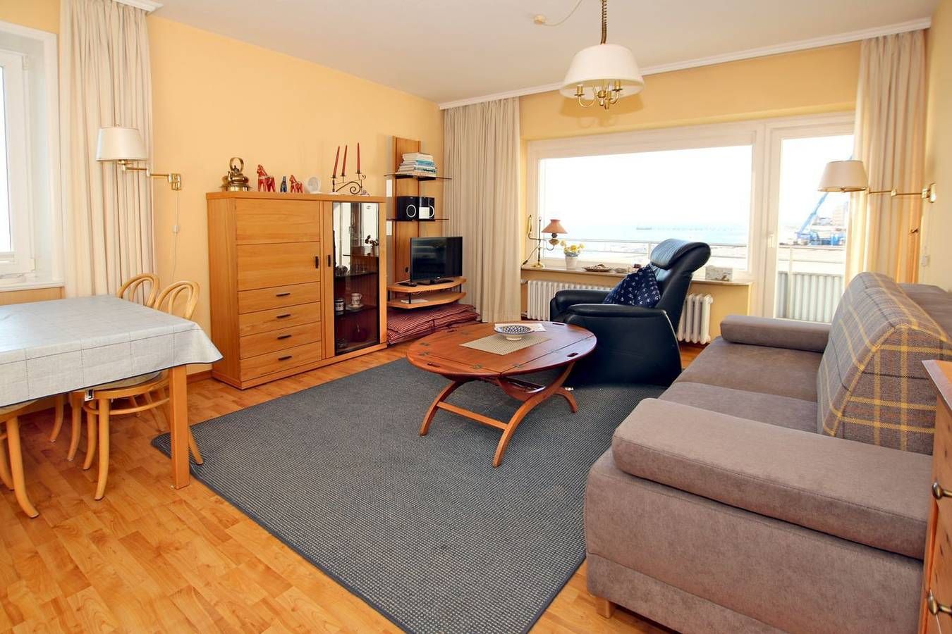 Ferienwohnung in Wyk auf Föhr, Königstraße 5, Wohnung 9, ca. 45 qm, 2-Zimmer-Nichtraucherwohnung in der 1. Etage mit herrlichem Meerblick aus 2 Zimmern. WOHNZIMMER: Doppelschlafcouch (1,60x2m) und 1 Sessel, Esstisch mit 4...
