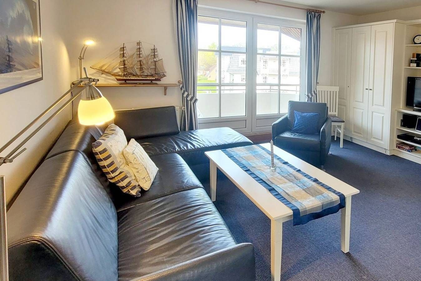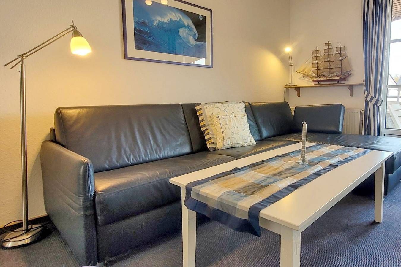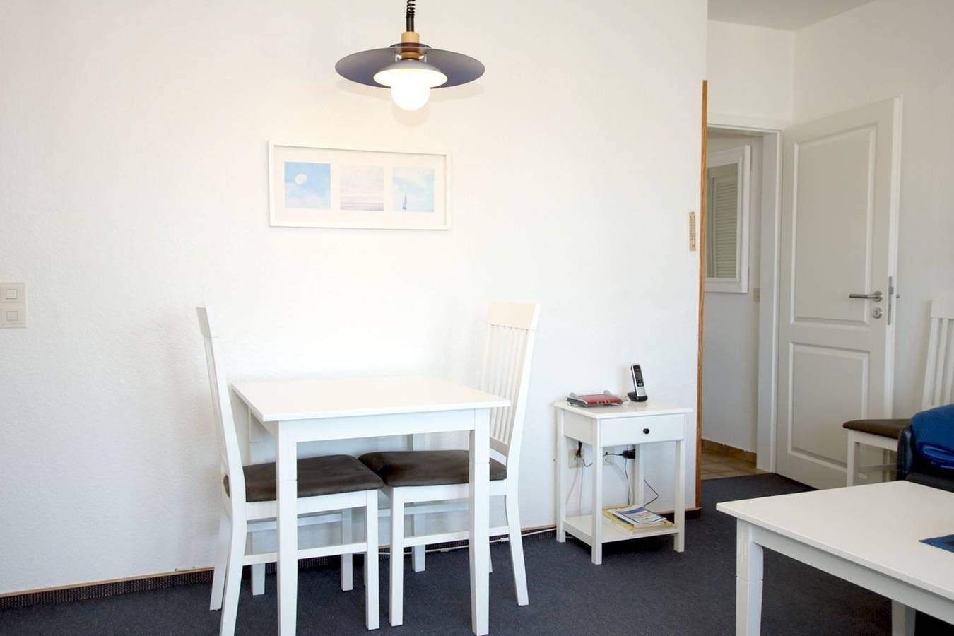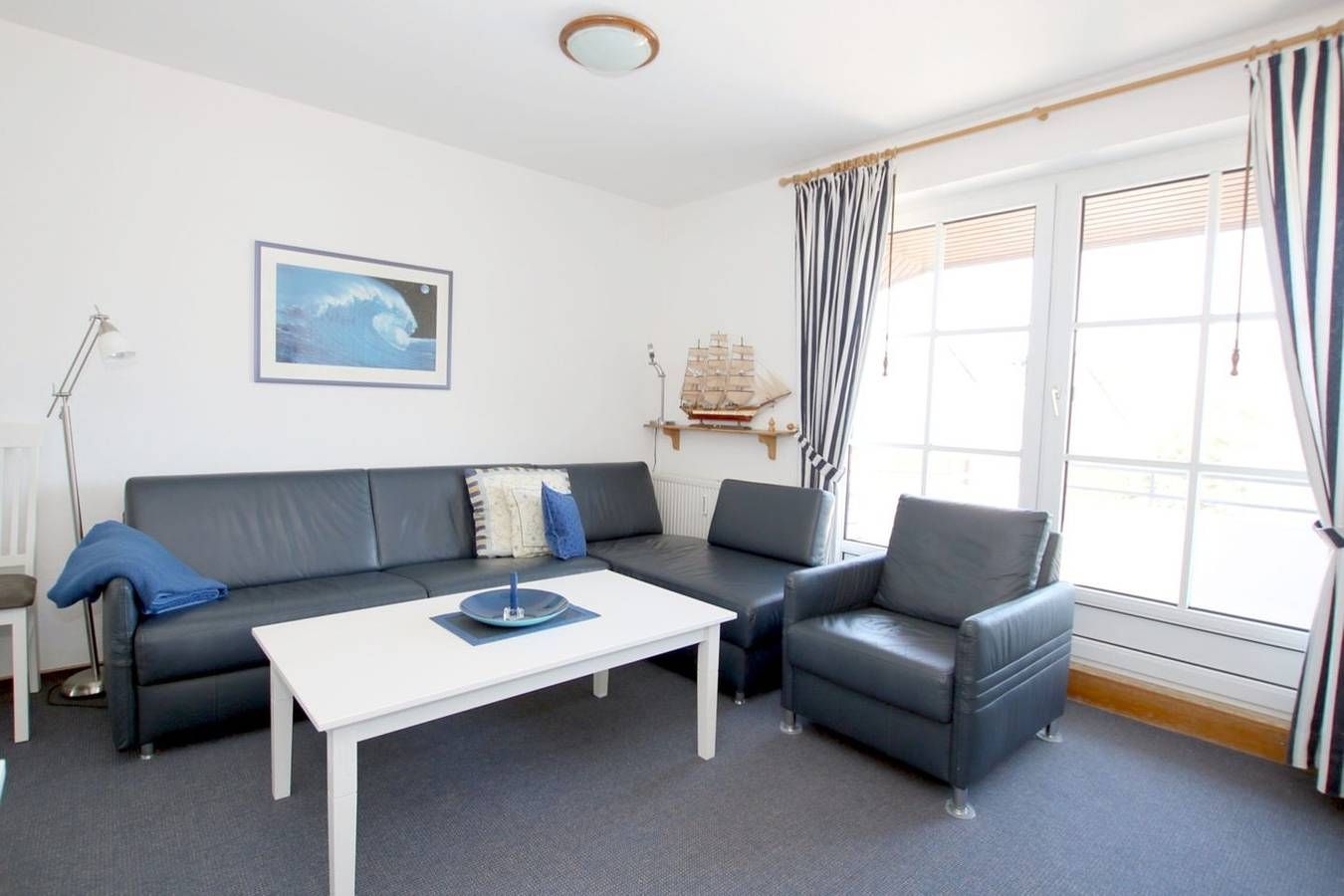 Ferienwohnung in Wyk auf Föhr, Gmelinstraße 12, "HAUS MEERESBRANDUNG", Baujahr 1985 Wohnung 18, ca. 45 qm: 2-ZIMMERWOHNUNG in der 2. Etage mit Westbalkon. WOHNZIMMER: Schafcouch + 1 Sessel , Esstisch mit 4 Stühlen und...