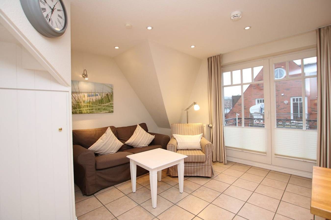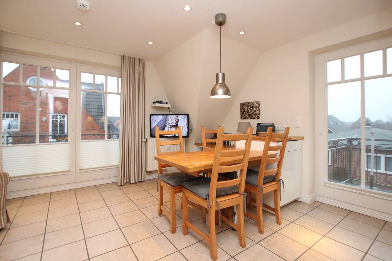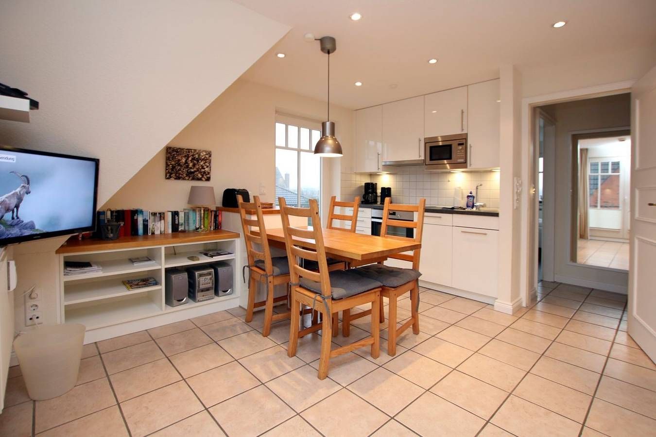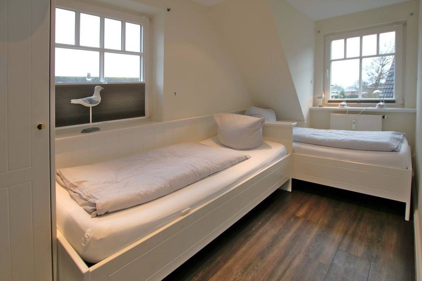 Ferienwohnung in Wyk auf Föhr, Rungholtstraße 6a, Wohnung Nr.3. 3-Zimmer-Nichtraucherwohnung (ca. 55 qm) in der 1.Etage mit 1 Südbalkon und 1 Westbalkon. WOHNZIMMER: Sitzecke (2er Sofa, 1 Sessel, Hocker) mit Couchtisch, Esstisch mit 4 Stühlen, Küchenzeile. BAD: Dusche/WC. SCHLAFZIMMER 1: 2 Einzelbetten und Kleiderschrank. Vom Flur führt eine Treppe ins Galerieschlafzimmer 2: Doppelbett und eingebauter Kleiderschrank. Die Wohnung ist mit allem Komfort neu eingerichtet. Einkaufsmöglichkeiten in der Nähe. Zum Zentrum sind es nur wenige Gehminuten, zum Hauptstrand ca. 300m und zum Kurmittelhaus und dem Erlebnisbad ca. 700m. Münzwaschmaschine und Trockner im Keller.