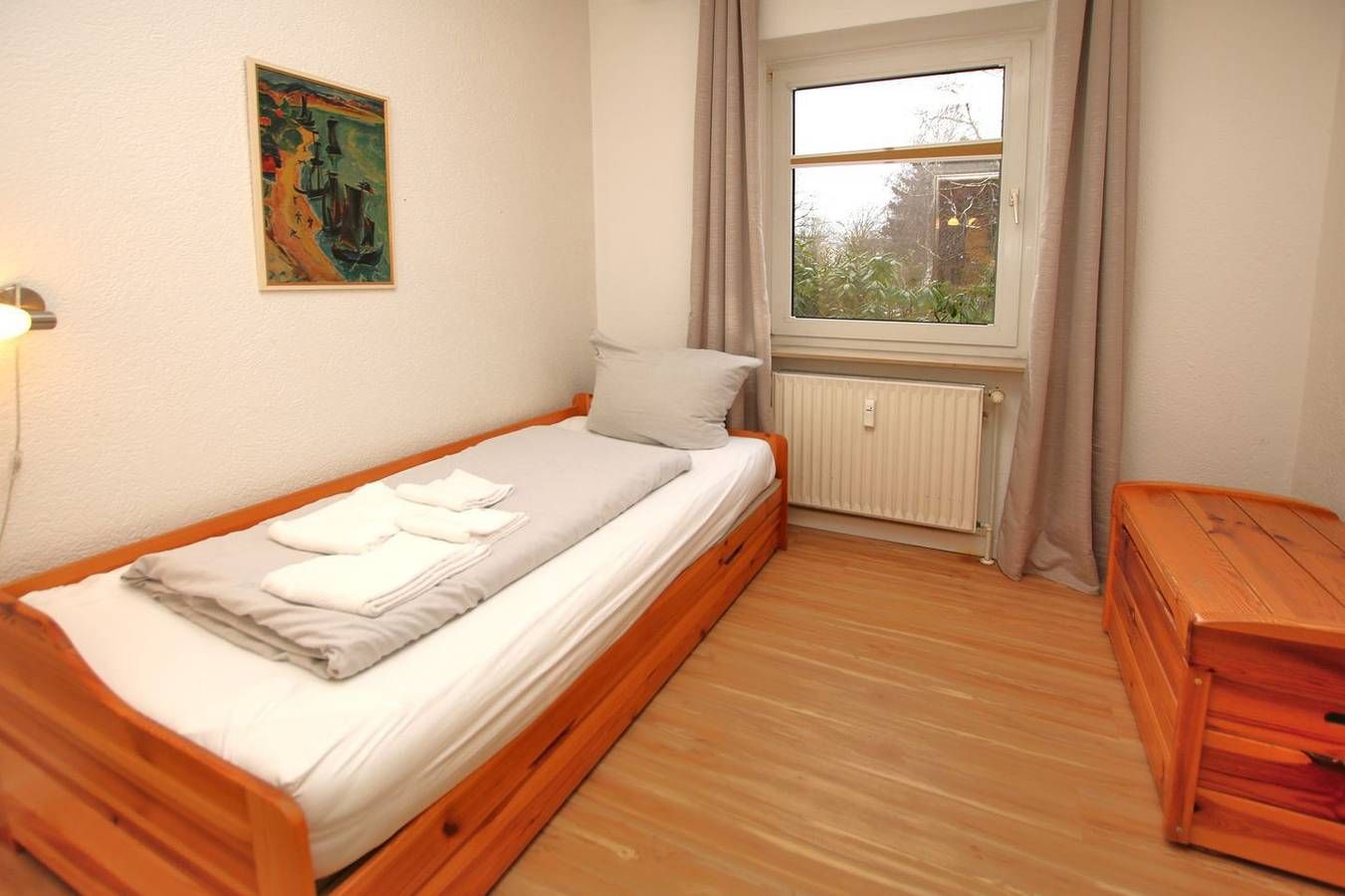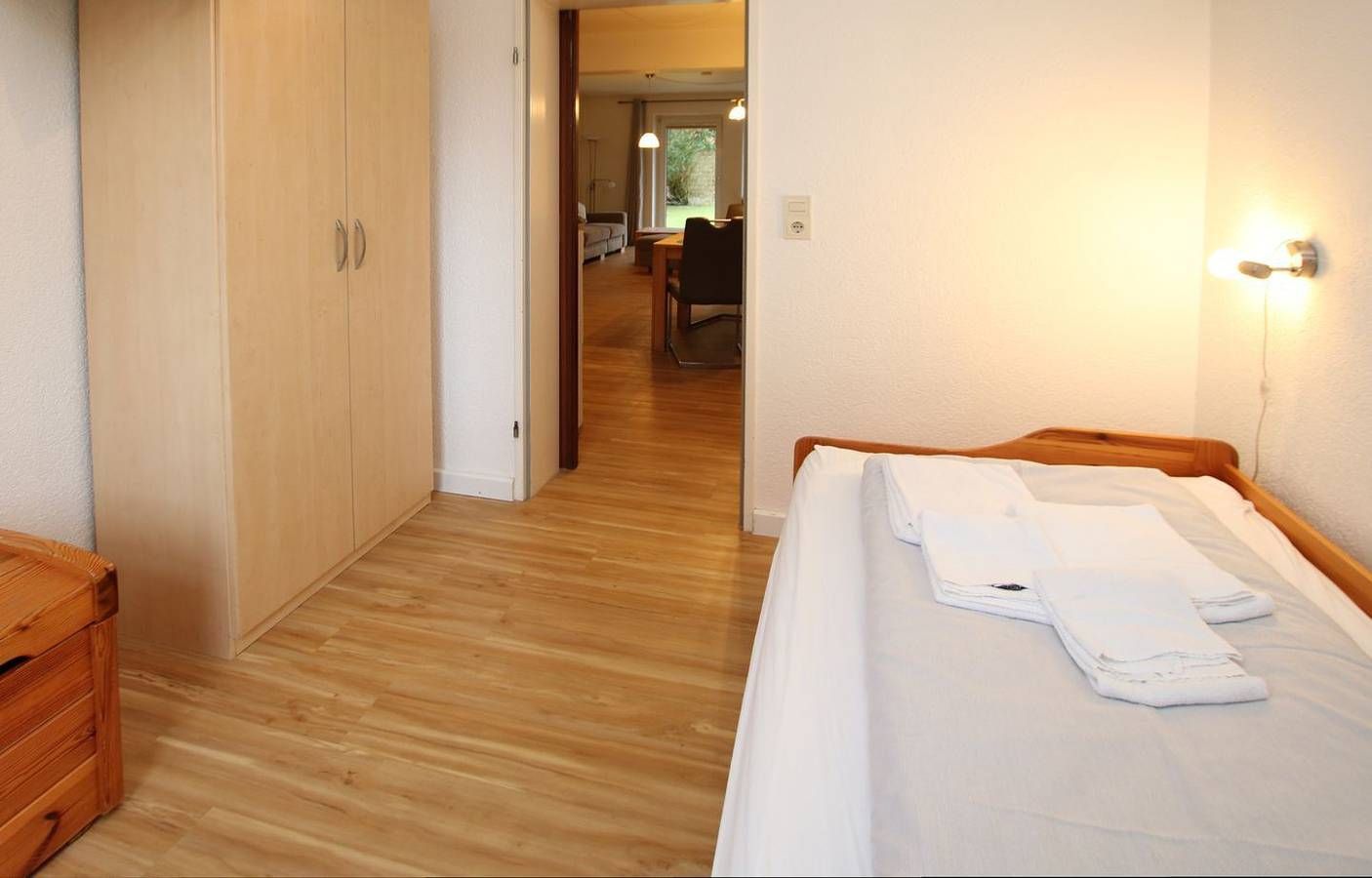 Ferienwohnung in Wyk auf Föhr, Flurstraße 10 , Wohnung Nr.1, ca. 60 qm, Südterrasse 3-Zimmer- Nichtraucherwohnung im Erdgeschoß eines Reihenhauses. WOHNZIMMER mit 2er Couch, 1 Sessel, Essplatz mit 4 Stühlen und KÜCHENZEILE. SCHLAFZIMMER 1 mit Doppelbett (1,80 m x 2 m) und Kleiderschrank. SCHLAFZIMMER 2: Einzelbett 0,90x2,00m und Kleiderschrank. BAD mit Dusche und WC. Im KELLER steht Ihnen eine Waschmaschine zur Verfügung. Zum Zentrum sind es ca. 5 - 10 Minuten Fußweg und zum Strand, Wellenbad und Kurmittelhaus ca. 10 - 15 Minuten Fußweg. Die Rasenfläche vor der Südterrasse (2 Liegen, Tisch und Stühle) darf mit genutzt werden.