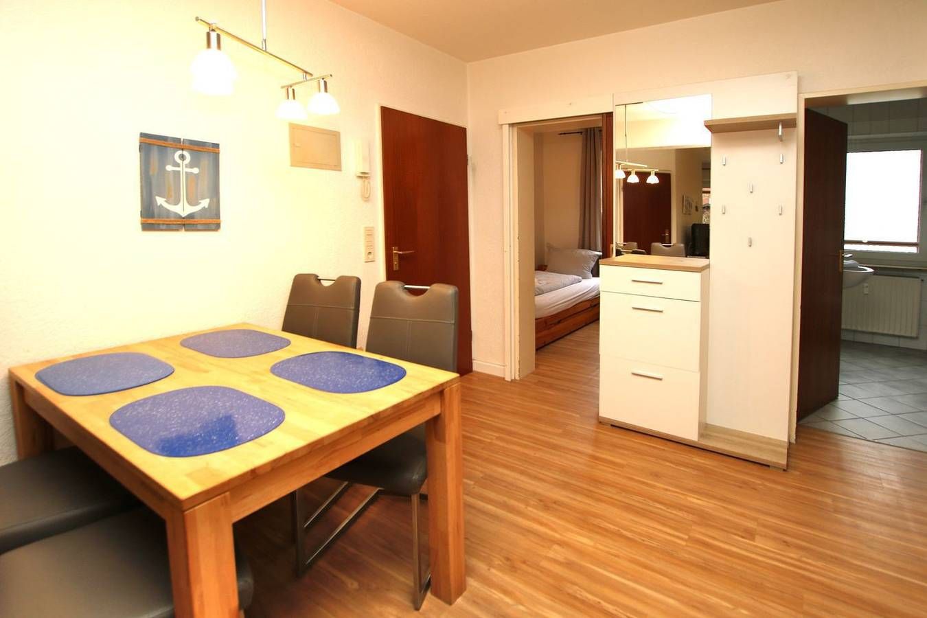 Ferienwohnung in Wyk auf Föhr, Flurstraße 10 , Wohnung Nr.1, ca. 60 qm, Südterrasse 3-Zimmer- Nichtraucherwohnung im Erdgeschoß eines Reihenhauses. WOHNZIMMER mit 2er Couch, 1 Sessel, Essplatz mit 4 Stühlen und KÜCHENZEILE....