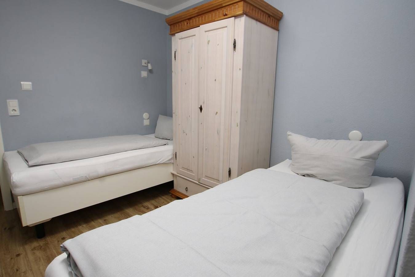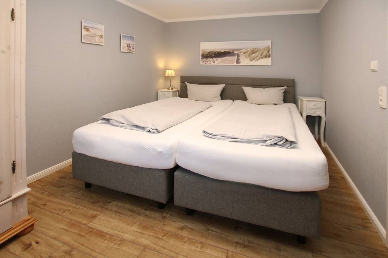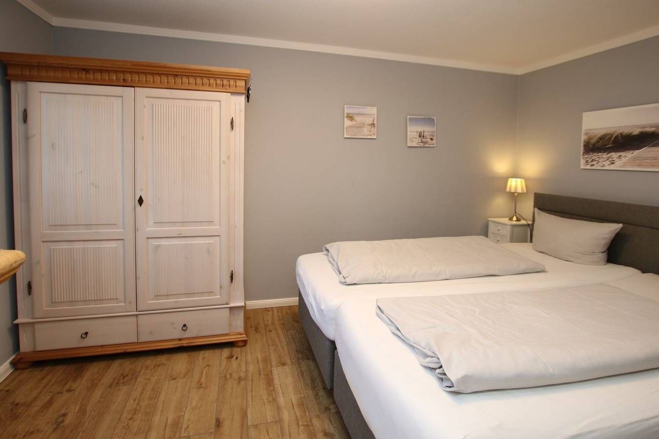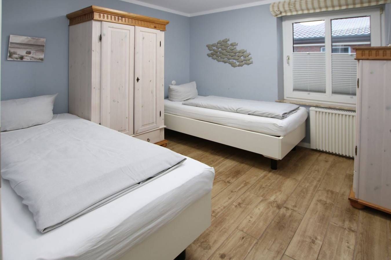 Ferienwohnung in Wyk auf Föhr, Lerchenweg 16, Wohnung Nr.2 3-Zimmer-Nichtraucherwohnung (ca. 58 qm) im Erdgeschoss mit Südterrasse und kleinem Garten. WOHNZIMMER: Ledercouch über Eck mit Couchtisch, Eßtisch mit Eckbank und 2 Stühlen. KÜCHENZEILE mit allem Komfort. SCHLAFZIMMER: Doppelbett 2 m x 2,20 m, Kleiderschrank und Kommode. SCHLAFZIMMER 2: 2 Einzelbetten, Kleiderschrank und Kommode. BAD: Dusche und WC. Die Wohnung ist komplett gefliest. Zum Südstrand ca. 400 m und zum Kurmittelhaus und Erlebnisbad und Innenstadt ca. 1200m. Münzwaschmaschine und Trockner im Keller. Gemeinschaftssauna (4 Parteien) im Keller. Komplett renovierte Wohnung in bester südstrandnaher und ruhiger Lage mit Garten. Vom DTV mit 4 Sternen klassifiziert.