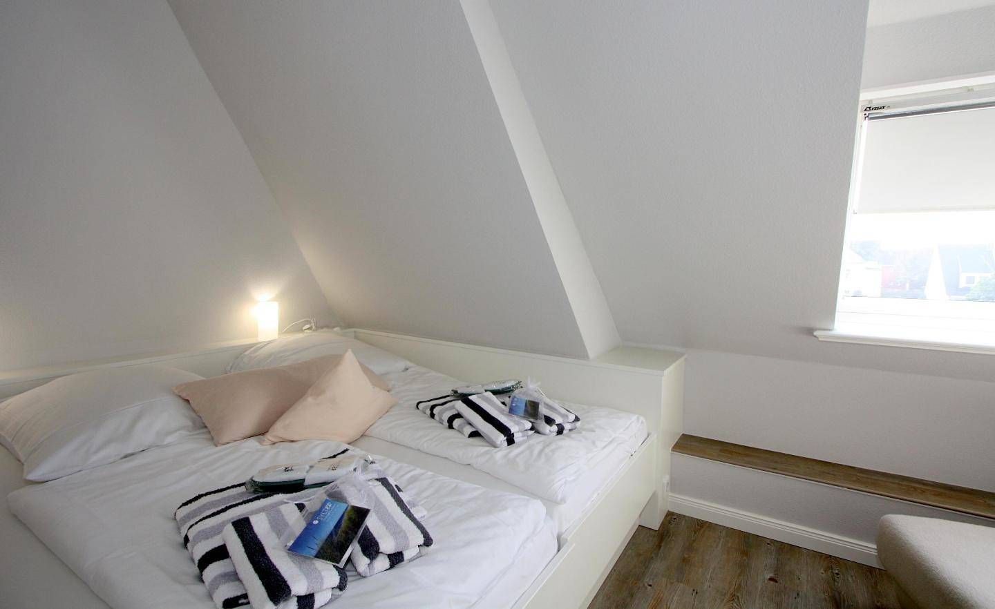 Ferienwohnung mit drei Zimmern und ca. 65 m² Wohnfläche. Für bis zu 4 Personen. Diese strandnahe Ferienwohnung im Maisonette-Stil befindet sich im Obergeschoss und verfügt über eine geschickt durchdachte Raumgestaltung. Koch-/Wohn-/Essbereich: Eine helle Landhausküche mit behaglichem Essbereich lädt Sie zum Verweilen ein. Der gemütliche Wohnbereich mit TV, führt Sie direkt auf den Süd-Balkon mit schönen Gartenmöbeln. Auf der gleichen Ebene befindet sich das Badezimmer: Modernes und geräumiges Duschbad mit WC und Fenster. Eine Treppe führt Sie in das 2. Obergeschoss: Schlafzimmer 1: Gemütliches Schlafzimmer mit Doppelbett, sowie Blick auf das Meer durchs Dachfenster. Schlafzimmer 2: Behagliches Schlafzimmer mit zwei Einzelbetten, großem Schrank und Dachfenster. Lage: Diese schöne Ferienwohnung liegt in unmittelbarer Strandnähe. Zu den zahlreichen Restaurants sind es nur wenige Gehminuten. Sie werden hier einen unvergesslichen Urlaub verbringen. Haustiere: Nein Parkplatz: Ja Nichtraucherwohnung