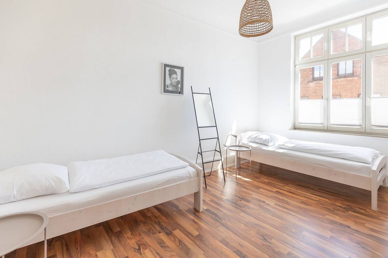 Monteure und Durchreisende aufgepasst: Entdecken Sie die charmante Altbauwohnung im Herzen von Husum mit drei Schlafzimmern! Die Lage Am Ende einer Fußgängerzone, gegenüber von der Einfahrt zu einem Husumer Einkaufszentrum befinden sich im 1. OG einer Stadtvilla eine 100 qm große Wohnung mit drei Doppelzimmern. Die nächsten Restaurants und Cafés und auch der Hafen sind nur ca. 200 m entfernt. Auch die Husumer Innenstadt und der Bahnhof sind bequem fußläufig zu erreichen. Die Ausstattung Die Wohnung verfügt über drei Schlafzimmer, jedes mit zwei Einzelbetten und einem Kleiderschrank. Die Küche ist mit Herd, Backofen, großem Kühlschrank, Geschirrspülmaschine und Sitzgelegenheit ausgestattet. Von hier aus haben Sie Zugang zum großen Balkon. In einem separaten Zimmer bieten wir einen großen Essbereich und einen TV für Ihre Unterhaltung an. Die Besonderheiten In unserem Nichtraucher-Zimmer stellen wir Ihnen W-LAN gerne kostenfrei zur Verfügung. Ihr Auto können Sie gegenüber in einem Parkhaus (gebührenpflichtig) abstellen. Eine Erstausstattung an Bettwäsche und Handtüchern wird bei dieser Unterkunft obligatorisch hinzugebucht und ist bereits im Endpreis enthalten. Zusätzliche Wäschepakete können in den optionalen Leistungen hinzugebucht werden. Wir möchten Sie darauf hinweisen, dass sich derzeit eine Baustelle direkt neben dem Gebäude befindet. Mit zeitweiliger Lärmbelästigung ist zu rechnen. Der Mietpreis ist während dieser Zeit reduziert.