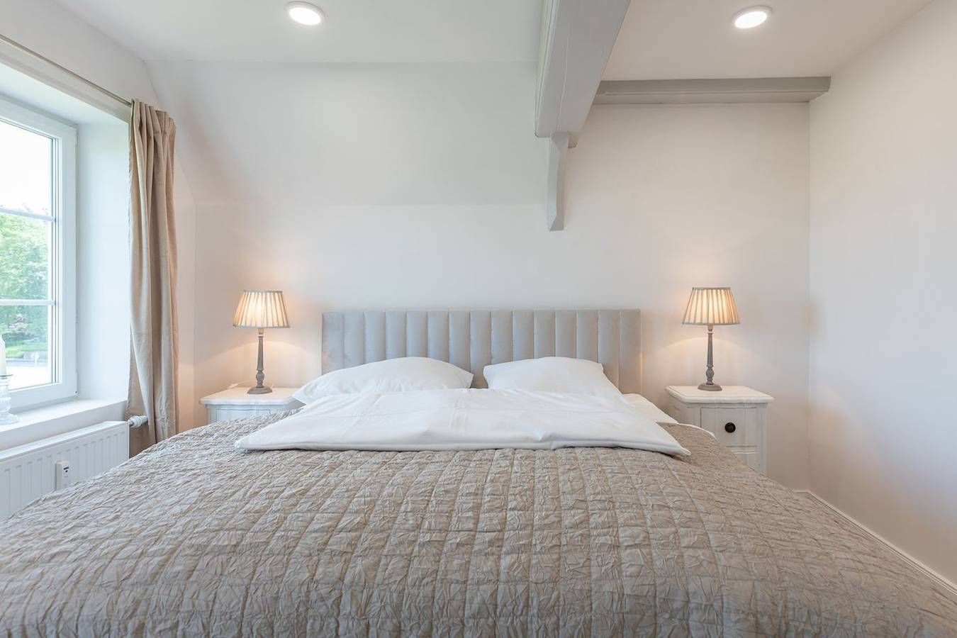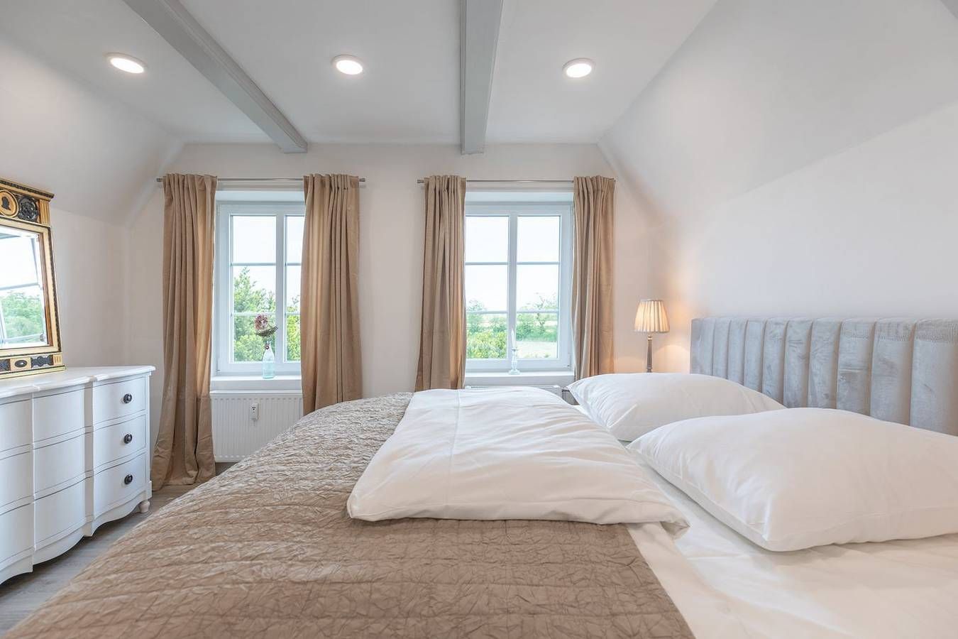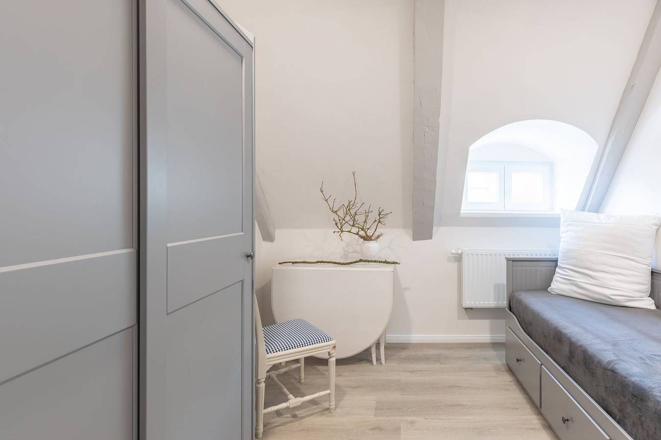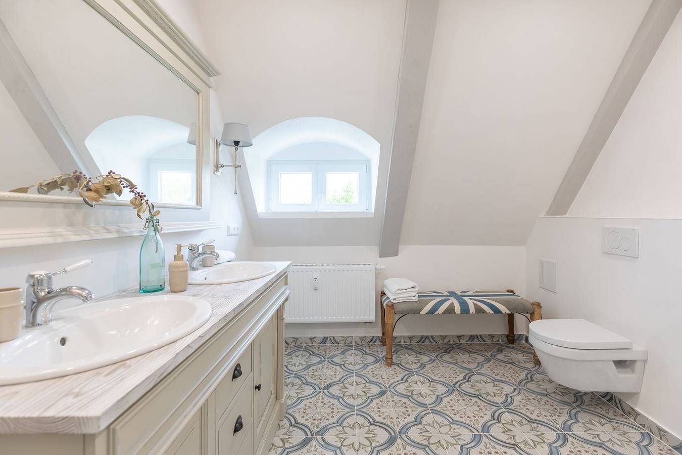 Modern und antik: Genießen Sie Ihren Urlaub in der stilvoll und wohnlich eingerichteten Ferienwohnung für bis zu sechs Personen. Die Lage Die Ferienwohnung "Nordisch noble Lebensart WE 3" liegt in zentraler Lage in Bargum. Sie befindet sich in einem ehemaligen Gasthof, der umfangreich renoviert wurde und in mehrere Wohnungen aufgeteilt wurde. Im Haupthaus befindet sich ein Antiquitätengeschäft. Das nächste Restaurant, ein Bahnhof und auch Einkaufsmöglichkeiten nur ca. 2000 m entfernt (Langenhorn). Die Ausstattung Die Ferienwohnung ist ca. 100 qm groß und befindet sich im 1. Obergeschoss (über eine offene Metallaußentreppe erreichbar) und erstreckt sich über zwei Etagen. Die offene Küche ist mit Geschirrspüler, Backofen, Cerankochfeld mit 4 Herdplatten, Kühlschrank mit Gefrierfach, Filterkaffeemaschine (Filtergröße 4), Wasserkocher und Toaster eingerichtet. Das offene Wohnzimmer lädt mit einem Flachbild-TV zum Verweilen ein. Die Wohnung verfügt über insgesamt drei Schlafzimmer, wovon zwei mit einem bequemen Boxspring-Bett ausgestattet sind, eines mit einem ausziehbaren Kojenbett (160 x 200) . Das gemütliche Schlafzimmer im Obergeschoss ist in einer Art Galerie (Spitzboden) und Sie erreichen es über eine Holztreppe. Allen Schlafräume sind mit Fenster-Verdunkelungen ausgestattet. Die Wohnung bietet Ihnen ein sehr großes Badezimmer mit ebenerdiger Dusche und Fußbodenheizung. Auf der Dachterrasse können Sie den Tag gemütlich auf Gartenmöbeln ausklingen lassen. Die Besonderheiten Die Wohnung ist ein Nichtraucher-Domizil. W-LAN stellen wir Ihnen gerne kostenfrei zur Verfügung. Ihr Auto können Sie bequem in einem Carport abstellen. Auch ein abschließbarer Fahrradschuppen steht Ihnen hier zur Verfügung. Ihre beiden bis kniehohen Hunde sind in dieser Wohnung willkommen. In einem Gemeinschaftsraum stehen für Sie Waschmaschine und Trockner gegen Gebühr bereit. Die Wohnung ist mit einem kabellosen Staubsauger ausgestattet. Eine Erstausstattung an Bettwäsche und Handtüchern stellen wir Ihnen bei dieser Unterkunft kostenlos zur Verfügung. Zusätzliche Wäsche kann unter optionale Leistungen hinzugebucht werden.