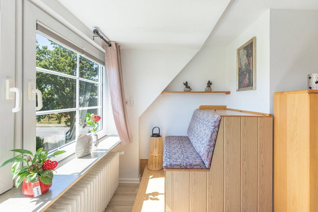Die Ferienwohnung mit direktem Blick auf die Nordsee bietet Platz für bis zu vier Personen und ist ideal für erholsame Tage an der Küste. Die Lage Die Ferienwohnung liegt im 1. Obergeschoss eines Landhauses und befindet sich in ruhiger Lage im Husumer Stadtteil Schobüll, direkt an der Nordsee. Schobüll ist bekannt für seine grüne Umgebung, das gesunde Reizklima und den einzigartigen Zugang zum Meer ohne Deich. Von der Unterkunft aus sind es nur wenige Gehminuten bis zur Badestelle sowie zum Schobüller Wald. Einkaufsmöglichkeiten, ein Café und 2 Restaurants sind im Ort vorhanden. Die Husumer Innenstadt mit Hafen, Marktplatz und vielfältigen Einkaufsmöglichkeiten erreichen Sie in rund 10 Minuten mit dem Auto. Die Ausstattung Die ca. 75 Quadratmeter große 2-Zimmerwohnung, die über eine Treppe zu erreichen ist, verfügt über ein Schlafzimmer mit einem Doppelbett (180 x 200 cm) und einem Einzelbett (90 x 190 cm). Im Wohnzimmer stehen ein komfortables Schlafsofa, ein Fernseher und ein bequemer TV-Sessel zur Verfügung. Von hier aus genießen Sie den freien Blick auf die Nordsee. Die separate Küche ist gut ausgestattet, mit Induktionsherd und Backofen, Mikrowelle, Kühl- und Gefrierschrank, Kaffeemaschine sowie Geschirr. Ein Esstisch bietet Platz für gemeinsame Mahlzeiten. Das kompakte Duschbad mit WC rundet das Bild ab. Von hier aus gelangen Sie auf den möblierten Balkon mit Strandkorb, Bistrotisch und Stühlen. Die Besonderheiten Die Nichtraucher-Ferienwohnung überzeugt durch die freie Sicht auf die Nordsee. Gerne stellen wir Ihnen kostenfreies WLAN zur Verfügung. Ein Parkplatz befindet sich direkt an der Unterkunft. Fahrräder können im angrenzenden Schuppen untergestellt werden. Eine Erstausstattung an Bettwäsche und Handtüchern ist im Endpreis enthalten. Zudem steht Ihnen eine Waschmaschine zur alleinigen Nutzung zur Verfügung.