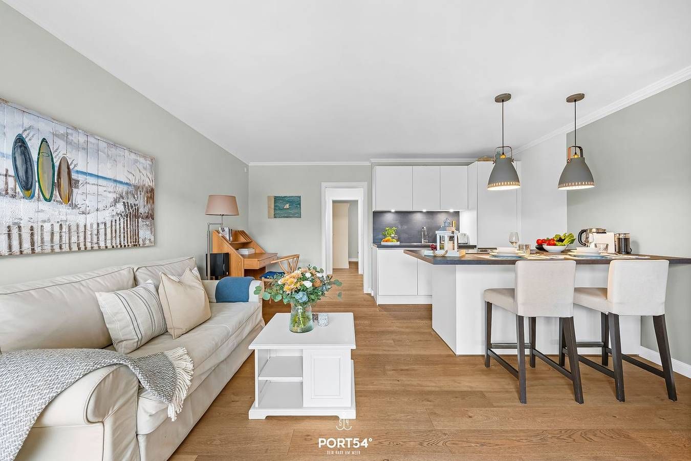 Ferienwohnung Reet & Meer – Modernes Wohnen in Strandnähe von Büsumer Deichhausen Die Ferienwohnung Reet & Meer im Hus op de Wurth vereint modernen Wohnkomfort mit einer erstklassigen Lage an der Nordseeküste. Auf 42 m² erwartet Sie eine stilvoll eingerichtete Unterkunft in Büsumer Deichhausen, nur ca. 200 Meter vom Meer und Strand entfernt. Die Wohnung befindet sich im Parterre eines gepflegten Hauses und ist von einem privaten Gartenbereich umgeben – ideal für entspannte Stunden im Freien. Auf der geschützten Terrasse mit Gartenblick stehen Ihnen Gartenmöbel, Sonnenschirm und ein Strandkorb zur Verfügung. Ein Sichtschutz an allen Fenstern sorgt für zusätzliche Privatsphäre und ungestörte Erholung. Wohnen & Schlafen Das helle Apartment verfügt über ein separates Schlafzimmer mit Parkettboden und bietet insgesamt zwei Schlafplätze – perfekt für Paare oder Alleinreisende. Der offen gestaltete Wohnbereich ist freundlich und hochwertig eingerichtet mit Sofa, Sessel, Essplatz und Schreibtisch. Für Unterhaltung sorgen ein digitaler TV sowie kostenfreies WLAN. Küche & Essbereich Die moderne, offene Küche ist vollständig ausgestattet und lässt keine Wünsche offen. Hochwertige Miele-Geräte wie ein Induktionskochfeld mit Bora-Abzug, Backofen, Kühlschrank mit Gefrierfach und Geschirrspüler stehen ebenso zur Verfügung wie eine Nespresso-Espressomaschine, klassische Kaffeemaschine, Wasserkocher, Toaster sowie umfangreiches Koch- und Essgeschirr. An der Kücheninsel mit Essplatz genießen Sie Ihre Mahlzeiten in gemütlicher Atmosphäre. Bad Das moderne Badezimmer ist mit einer bodengleichen Dusche, Waschbecken, WC, Spiegel und Haartrockner ausgestattet. Weitere Ausstattung & Hinweise Nichtraucherwohnung Haustiere erlaubt (max. 1 Hund) Kostenfreier Privatparkplatz direkt am Haus Lage & Umgebung Büsumer Deichhausen bietet vielfältige Freizeitmöglichkeiten: Radfahren, Wandern, Nordic Walking entlang der Küste sowie Angeln, Surfen, Reiten und Golf (ca. 2,5 km). Restaurants erreichen Sie in etwa 100 Metern, Einkaufsmöglichkeiten in ca. 1.000 Metern. Auch kulturelle Angebote wie Museen, Kino, Kirchen und Bibliothek befinden sich in der näheren Umgebung. Fazit Die Ferienwohnung Reet & Meer ist ideal für Gäste, die eine ruhige, naturnahe Lage, moderne Ausstattung und die Nähe zum Meer schätzen. Der private Garten, die geschützte Terrasse und der persönliche Charakter der Wohnung schaffen beste Voraussetzungen für erholsame Tage an der Nordseeküste. Sichern Sie sich jetzt Ihren Aufenthalt und genießen Sie entspannte Urlaubsmomente in Büsumer Deichhausen.