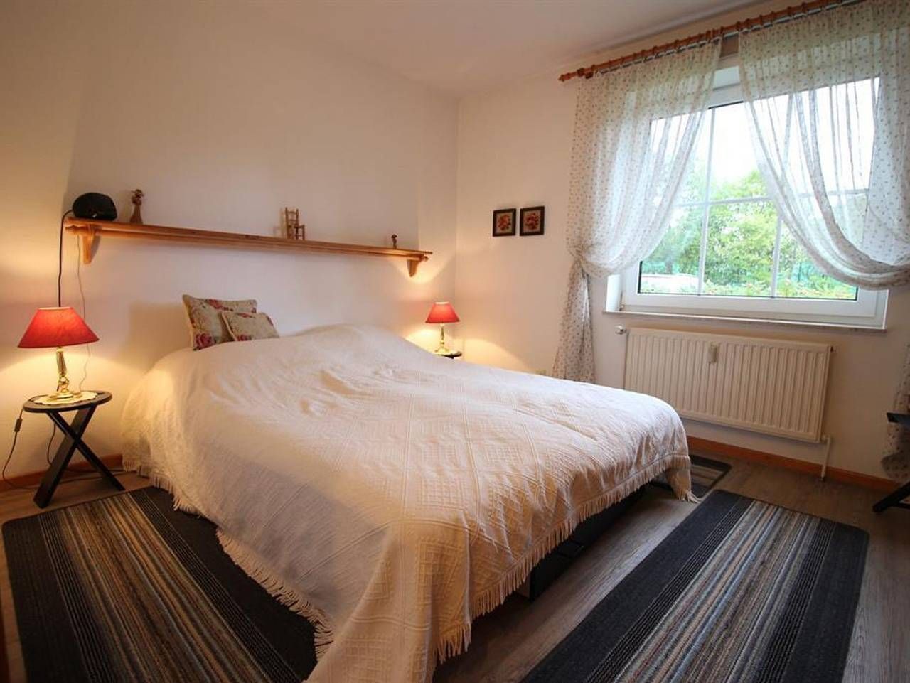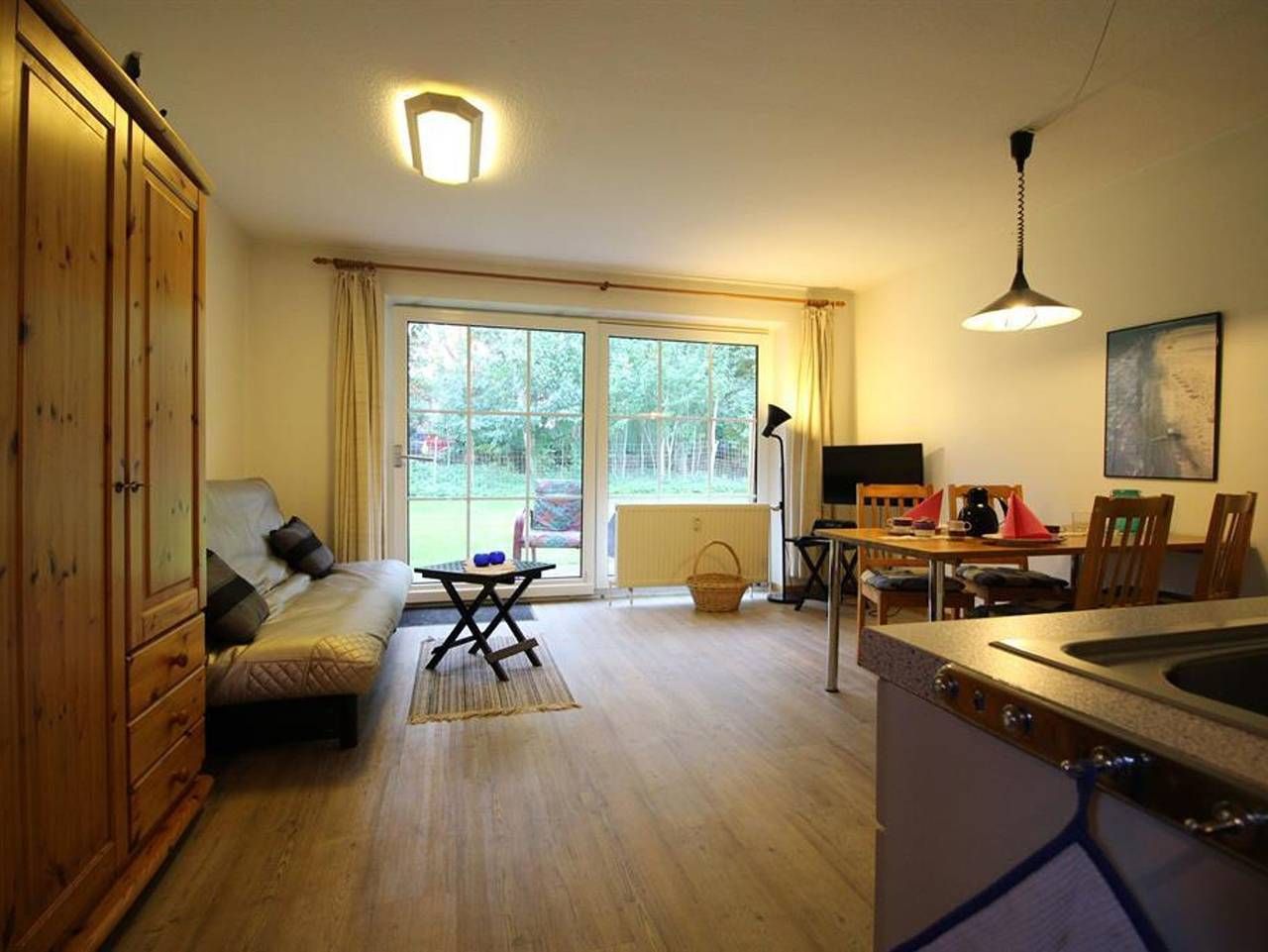 Herzlich Willkommen in der Hahneburg. Die Ferienwohnung befindet sich in einer ruhigen Lage am Ortsrand von Garding und ist mit einem altem Baumbestand umgeben. Treten Sie vor die Tür und erholen sich ein auf der eigenen Terrasse mit Gartenmöbeln und einem großen Garten. Ein Pkw-Stellplatz ist für Sie vorhanden. Der Tennisplatz befindet in unmittelbarer Nähe. Die kleine Stadtkern mit Marktplatz und Kirche ist in wenigen Gehminuten zu erreichen. Am Dienstag findet dort der traditionelle Wochenmarkt statt. In der Nähe der Unterkunft befindet sich ein Reiher- und Krähenhorst. In der Ferienwohnung Remuß erwarten Sie auf 45 qm Platz für 1-3 Personen. Sie ist ausgestattet mit einem Wohnraum mit integrierter Küchenzeile, einem Sofa das auch als Schlafsofa genutzt werden kann und einem Essplatz. Von der großen Panoramafront haben Sie einen freien Blick ins Grüne. Das Schlafzimmer ist mit einem Doppelbett, viel Stauraum und einem Verdunklungsrollo ausgestattet. Duschbad mit WC ist vorhanden.